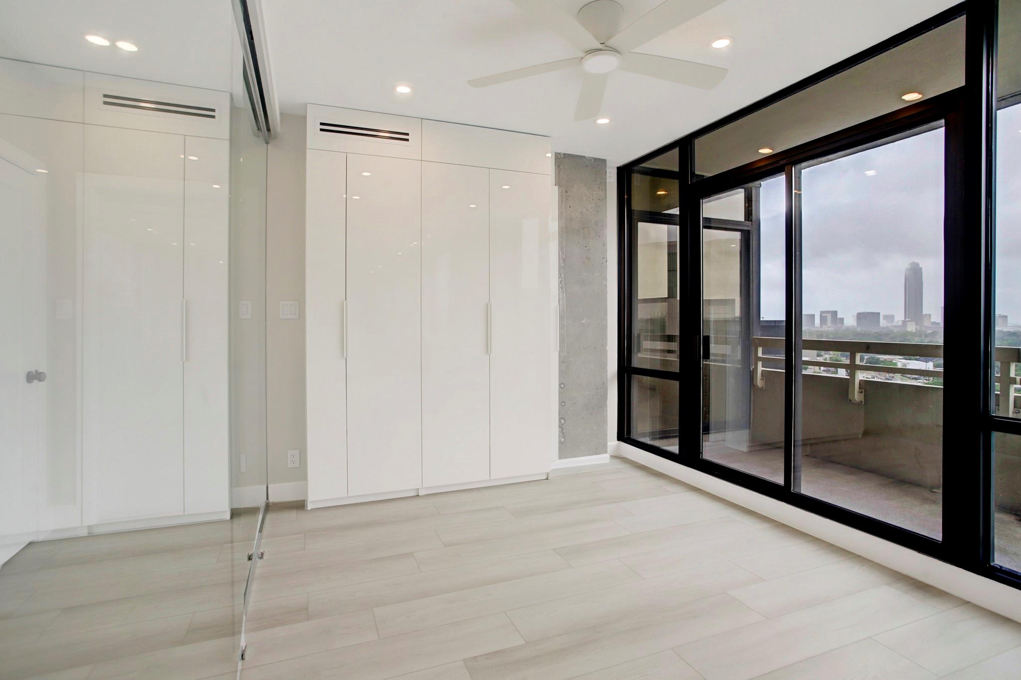 Incredible transformation of this move-in ready high-rise unit at the popular Greenway community showcases the latest features in design and contemporary living. Smart appliances highlight the fabulous kitchen which features high gloss cabinets, soft-close doors and sparkling waterfall edge countertops. Sleek Italian tile is used in both full bathrooms with TOTO toilets and Hans-Grohe fixtures. A glass wall flex room with closet creates a secondary guest room or office with stunning Galleria and sunset views. Enjoy all of the superb Greenway service and a walkable neighborhood right in the heart of Houston.