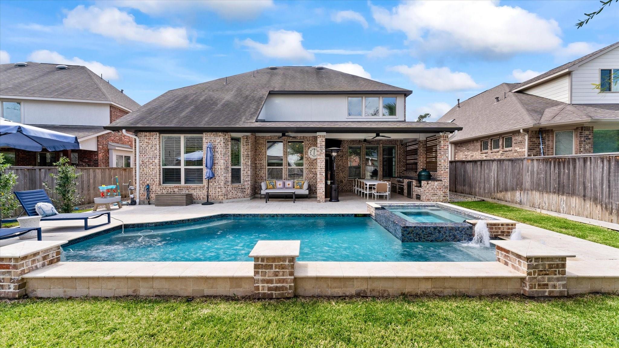 /monthThis Beautiful property is located in the sought after community of Creekside Park West. Featuring 4 bedrooms & 3 and a half bathrooms. Open floor plan with remodeled kitchen with quartz countertop, hardwood floors on main floor, private study, formal dining room and added butlers pantry. Primary bedroom with great backyard view, en suite bathroom and custom closet system. Three secondary bedrooms , game room plus media room (currently used as a nursery). Backyard equipped with an outdoor kitchen , pool & spa and travertine floors. 3 car garage with epoxy floors. Expanded driveway. Plenty of storage spaces through out. EXCEPTIONAL LOCATION! Walking distance to restaurants, coffee shops, shopping , movie theater and more!