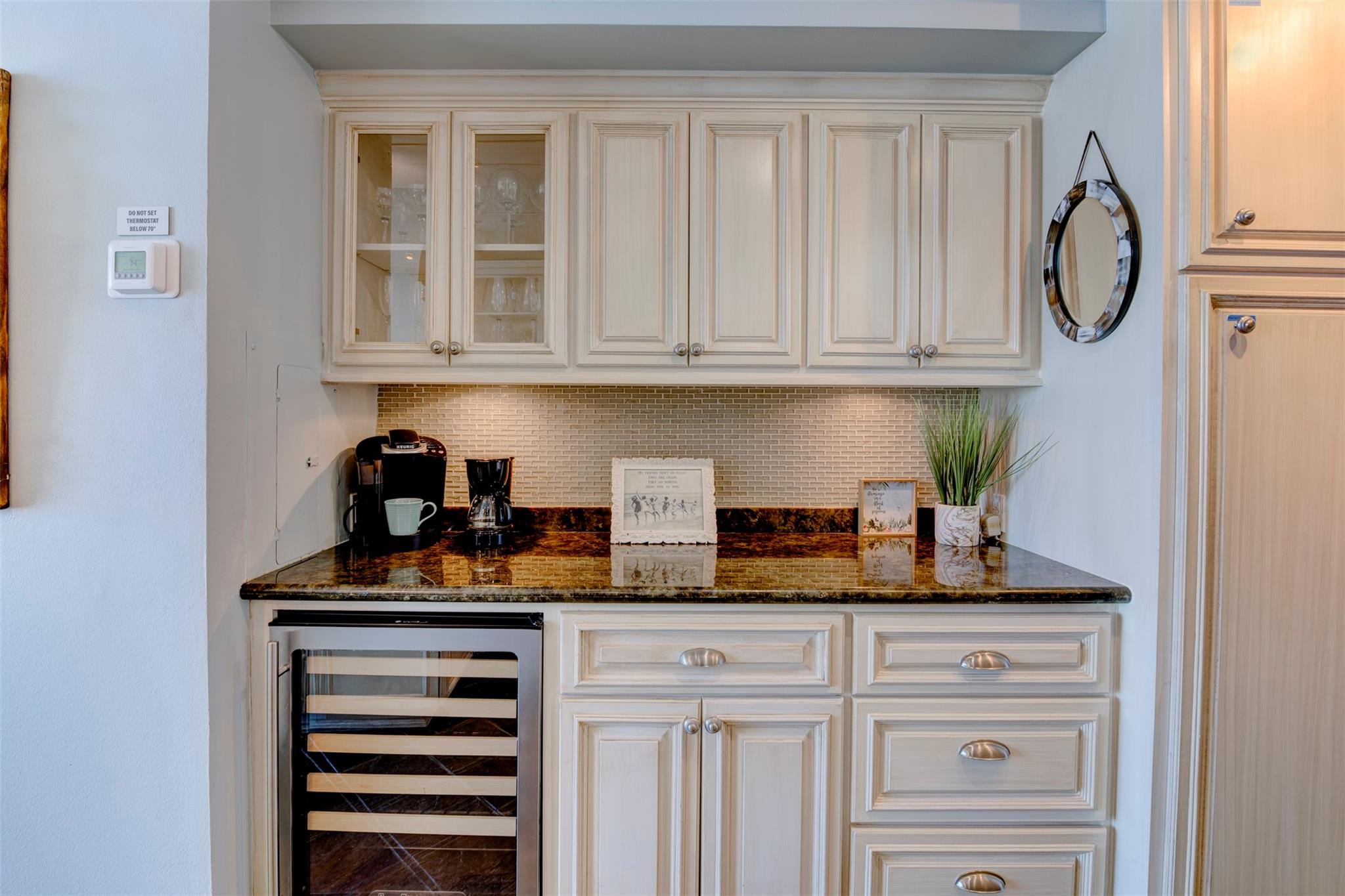 InteriorFloors:Slate,Tile,WoodCountertop:GraniteBathroom Description:Primary Bath: Shower OnlyBedroom Desc:All Bedrooms DownKitchen Desc:Breakfast Bar,Kitchen open to Family RoomRoom Description:1 Living Area,Living/Dining ComboHeating:Central ElectricCooling:Central ElectricWasher/Dryer Conn:NoDishwasher:YesDisposal:YesCompactor:NoMicrowave:YesRange:Freestanding RangeOven:Electric OvenAppliances:RefrigeratorEnergy Feature:Ceiling Fans,Digital Program ThermostatInterior:Crown Molding