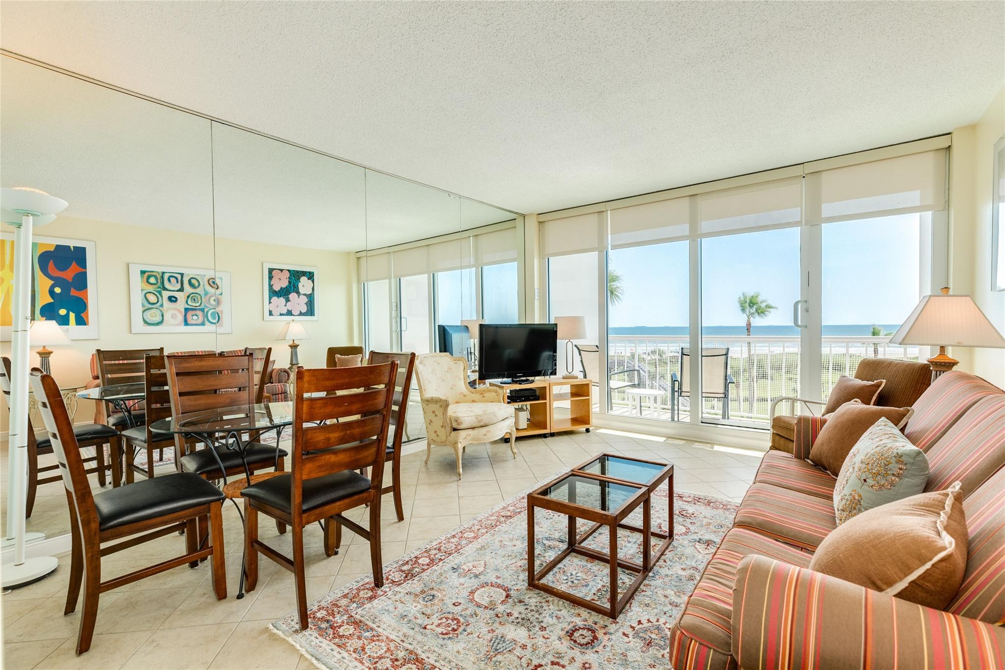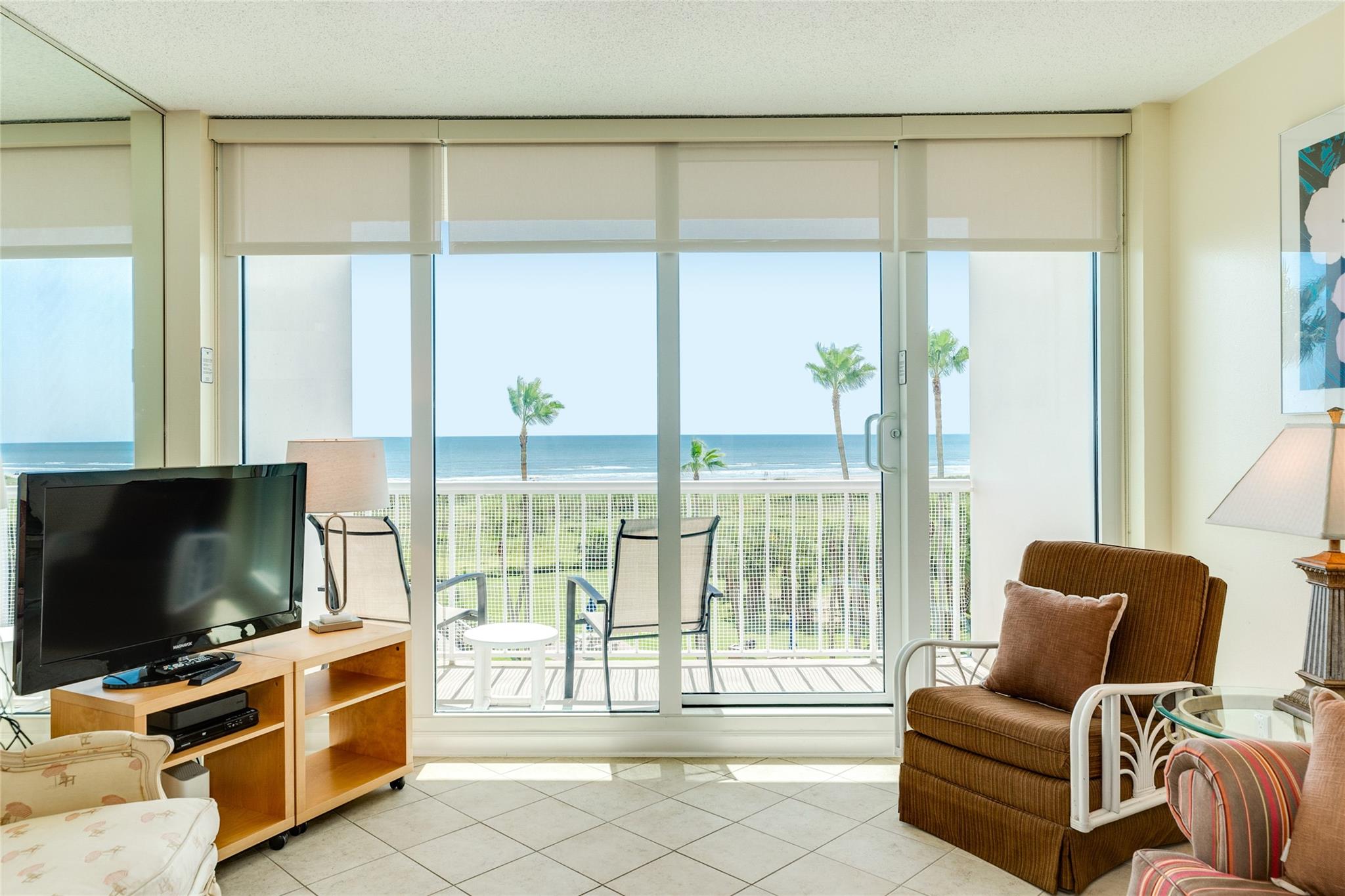Experience coastal living at The Galvestonian in Unit 209. This beautifully positioned beachfront residence offers breathtaking Gulf views and seamless indoor to outdoor living. Floor to ceiling windows invite natural light while showcasing the water from your private balcony. The thoughtfully designed layout features an open living and dining area, spacious bedroom, and a well appointed kitchen ideal for entertaining or relaxing after a day on the beach. Located on the East End of Galveston Island near the ship channel jetties, this stretch of shoreline is known for naturally wider beaches as coastal currents build and maintain sand along the coast. The Galvestonian offers premier amenities including a beachfront pool, tennis courts, fitness center, concierge service, and controlled access. Whether seeking a full time residence, weekend retreat, or investment opportunity, Unit 209 delivers elevated island living.