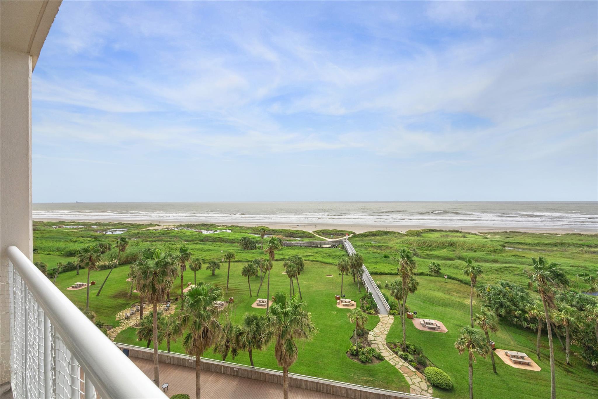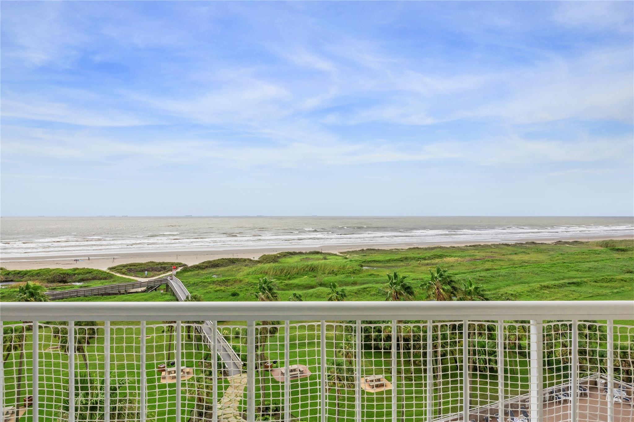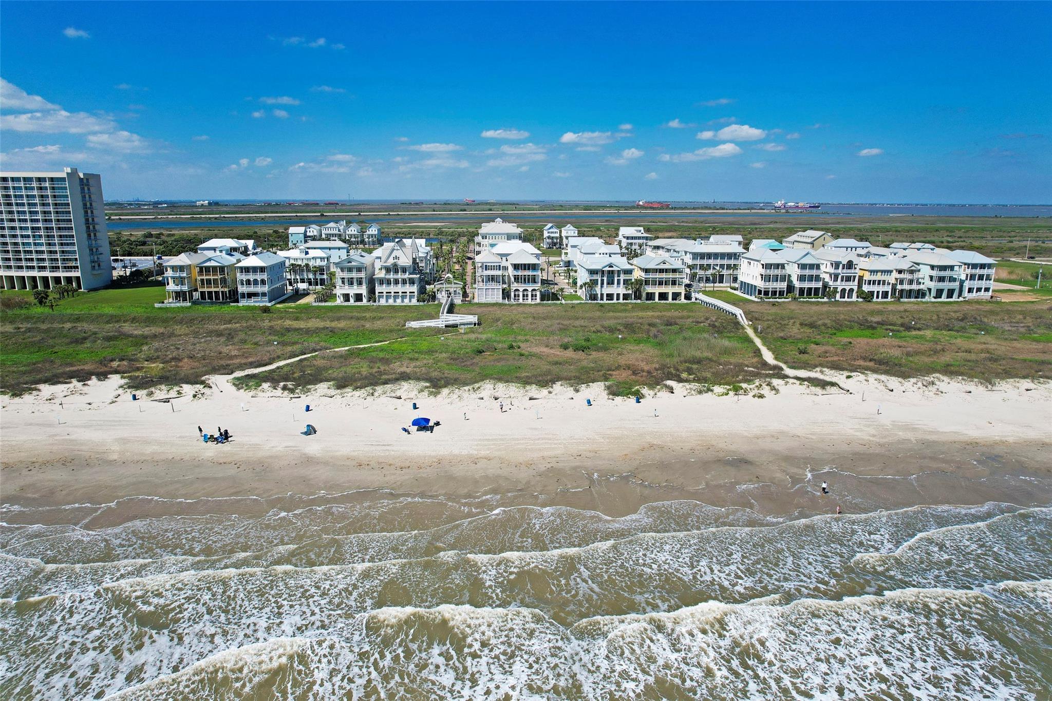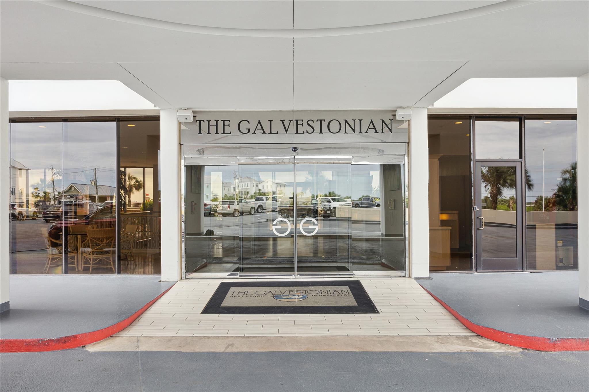 Excellent opportunity to own a stellar condo in the coveted beachfront Galvestonian. Expansive terrace of this distinctive island residence boasts glorious vistas of the azure blue ocean, the bay & majestic cruise & cargo ships. Stunning “hardwoods look” wide plank laminate flooring, a breathtaking “wall of glass” opening to the terrace, designer upgrades & exquisite finishes are prominent thruout. Fab open plan-ideal for coastal entertaining! Divine living room distinguished by exceptional mirrored wall, outstanding queen-size sofa bed & inviting Gulf-side terrace. The terrace is ideal venue to admire spectacular island sunrises while you sip a delicious cappuccino. Superb chef’s kitchen appointed w/high-caliber appliances (inc. a 5-burner glass top Frigidaire range & new Samsung French door refrigerator), gorgeous quartz counters, gleaming subway glass tile backsplashes & a breakfast bar. Marvelous primary bedrm. Luxurious hall bath. Excellent short term rental income poten
