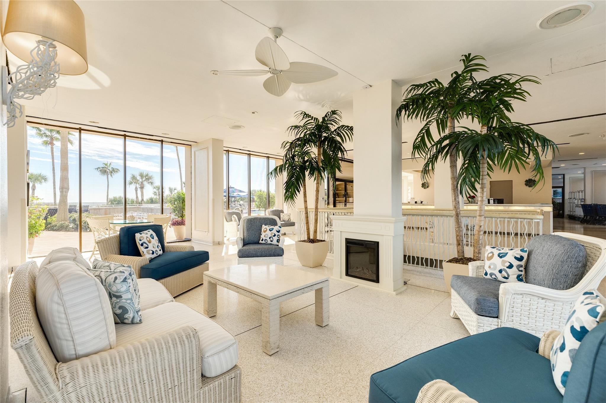 Beachfront condominium at The Galvestonian in Galveston, Texas, offering direct Gulf views and immediate beach access. Located at 1401 E Beach Drive, Unit 814, this 2-bedroom, 2-bath condo features a private balcony overlooking the Gulf and an open living and dining area designed to maximize natural light and water views. Kitchen includes stainless-steel appliances, a breakfast bar, and ample cabinet space. Tile flooring throughout provides durability and easy maintenance for coastal living. The primary bedroom offers an en-suite bath and Gulf views, while the secondary bedroom also has an en-suite full bath, allowing flexible use for guests or a home office. The Galvestonian is a full-service beachfront condominium community with resort-style amenities including a beachfront pool, fitness center, tennis courts, controlled access, on-site management, and 24-hour concierge services. Conveniently located near The Strand, Pleasure Pier, and central Galveston attractions.