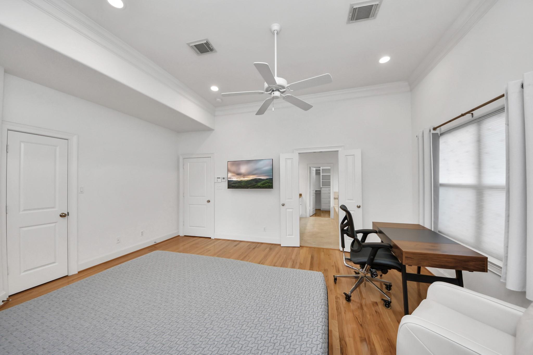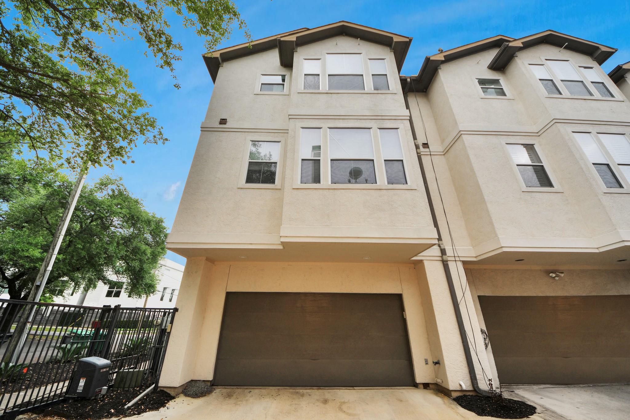 Modern 3-bedroom townhome in a boutique 5-unit community, ideally located near the Texas Medical Center. One block from MetroRail gives easy access to Downtown and TMC. This corner unit offers abundant natural light and a flexible layout, including a first-floor bedroom or study with a full bath. No carpet throughout. The open-concept main living area features hardwood floors, built-ins, a gas fireplace, and a spacious kitchen with granite countertops, stainless steel appliances, ample cabinetry, and a breakfast area with workspace. Enjoy the treetop views from either private balcony, including one off the primary bedroom. The third floor includes two bedrooms, including a spacious primary suite with high ceilings, two walk-in closets, and a well-appointed bath. In-unit washer/dryer. Gated front green space and rear driveway access add convenience. No monthly HOA fee!