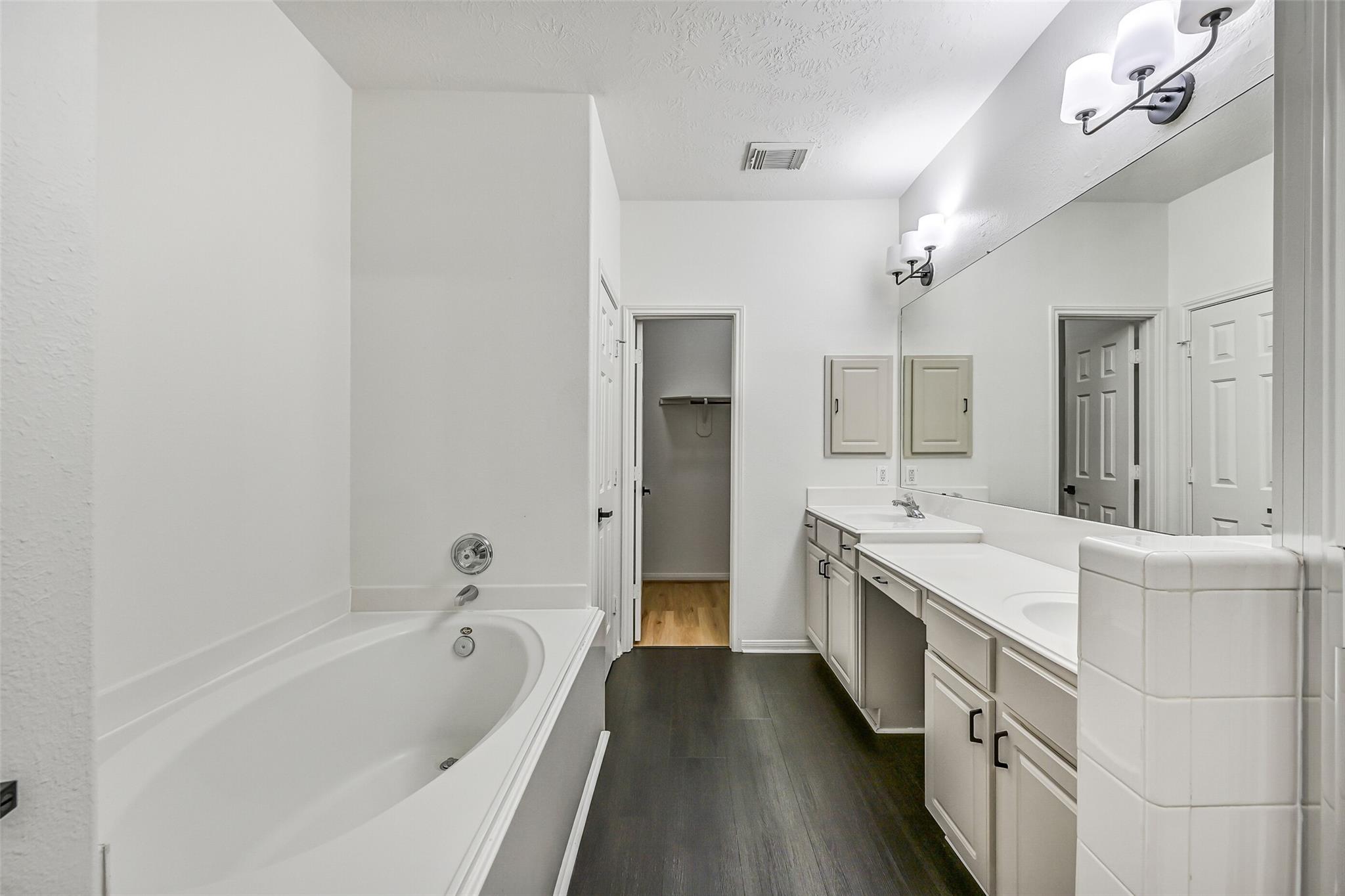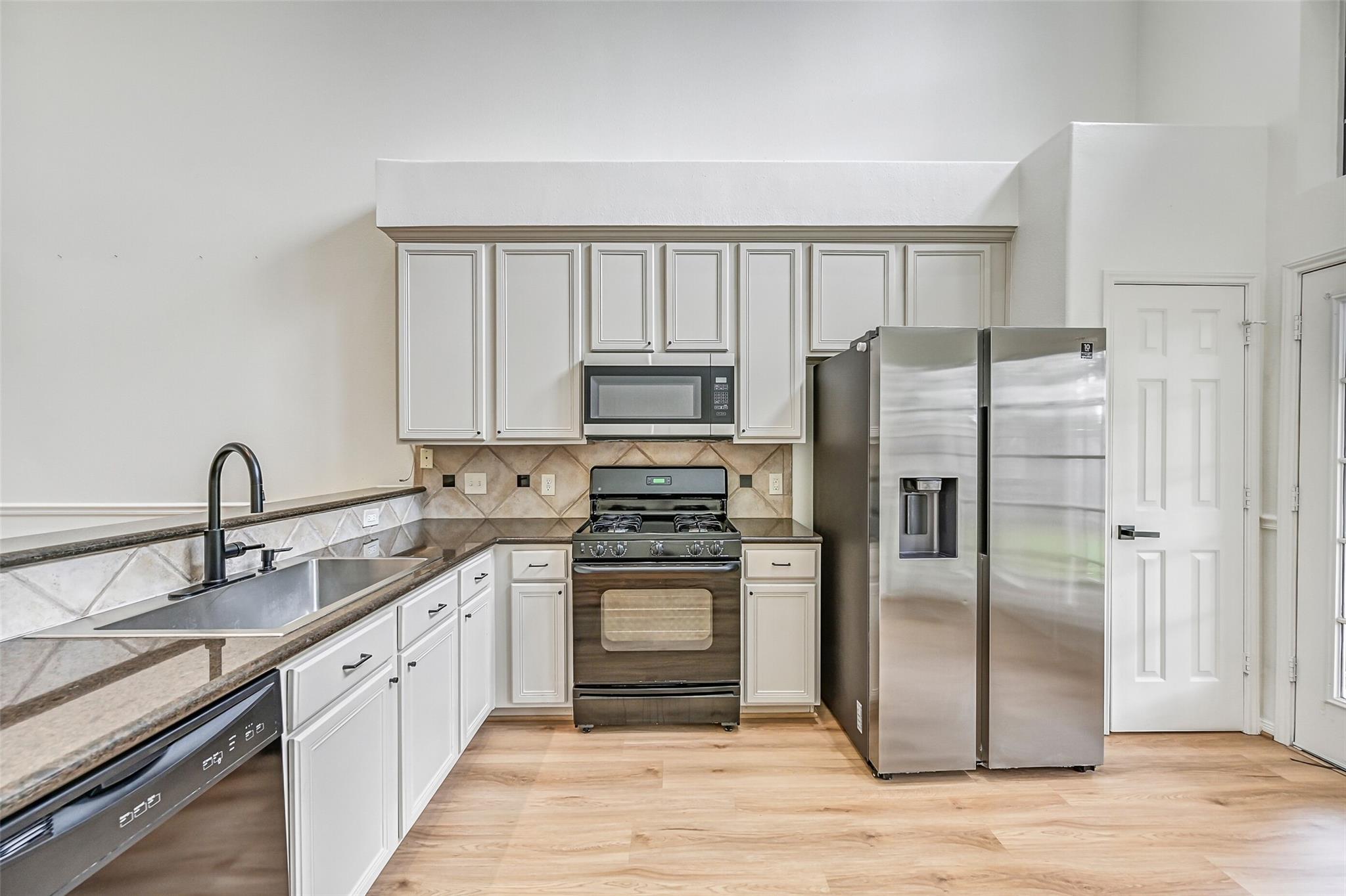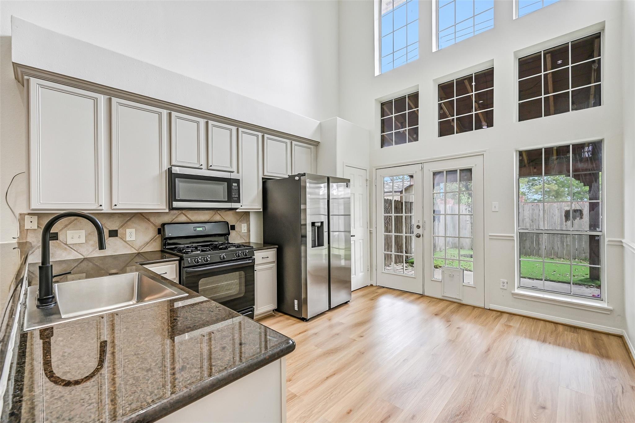 Beautifully updated townhome in a gated Friendswood community! This 3 bed, 2.5 bath home offers open-concept living with soaring ceilings & abundant natural light throughout. Recent updates include LVP flooring, fresh neutral interior paint, updated fixtures & cabinet/door hardware, artificial turf in the backyard & a new furnace. The 1st floor primary suite features its own cozy fireplace & a spacious en-suite bath with dual sinks, a soaking tub, separate shower & walk-in closet. Upstairs, you’ll find a large flex room/gameroom with a second fireplace, and the secondary bedrooms. Enjoy a private, fenced backyard with a covered patio and low-maintenance artificial turf. Located in a small, gated community with a pool, zoned to sought-after Friendswood ISD, and just minutes from shopping, dining & more. Don't miss this one!