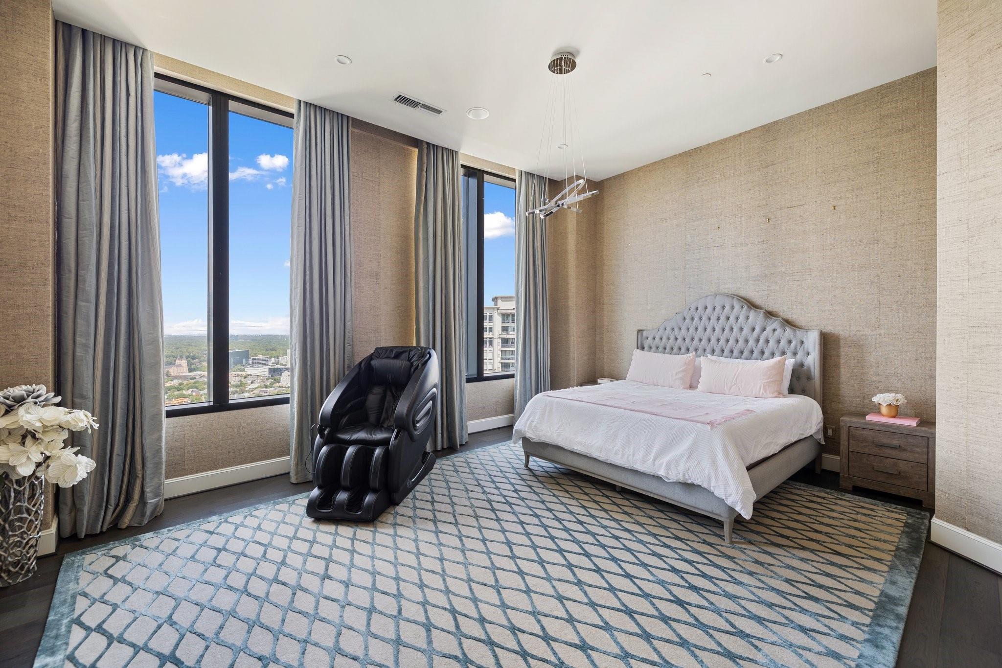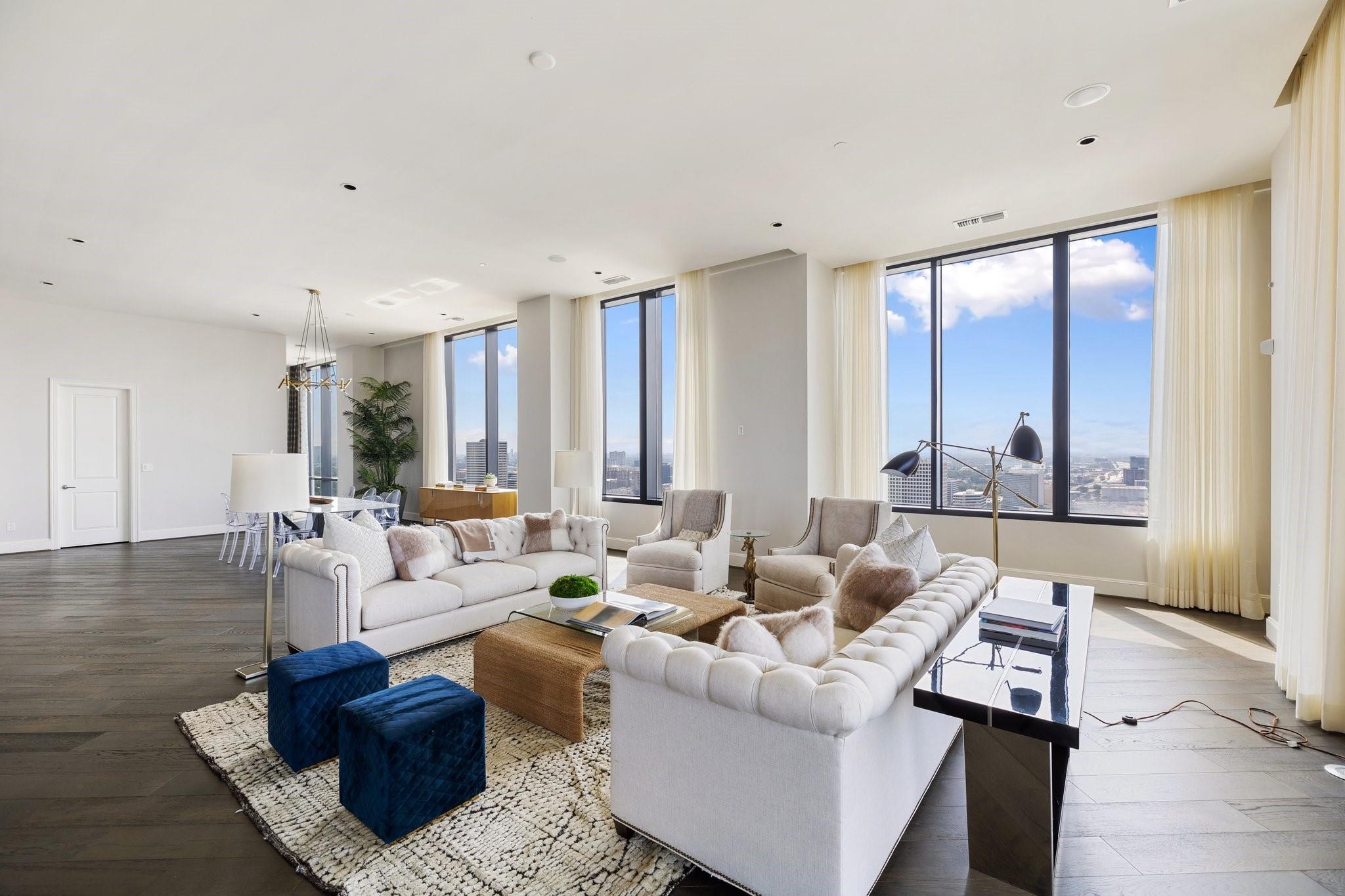 Welcome to the Astoria, an elegant high rise in centrally located Uptown Houston. With only 74 units, this 29-story community offers a quiet retreat just steps from an abundance of the best shopping and dining in the city. Located on the 27th floor, this penthouse offers stunning views and an overflow of natural light. The open concept living space features floor-to-ceiling windows from wall to wall. The kitchen is fully equipped with a Miele appliance package, Eggersmann kitchen cabinets, and opens to the living room for easy entertaining. The unit features a primary suite with dual walk-in closets and gorgeous spa bath. Unit includes 3 enclosed parking spaces with electric charging station, plus two additional spaces (5 total). Head to the 8th floor to enjoy a state of the art fitness facility, entertaining spaces and an infinity pool overlooking the city. The building features 24/7 concierge, valet, guest lounge and business center.