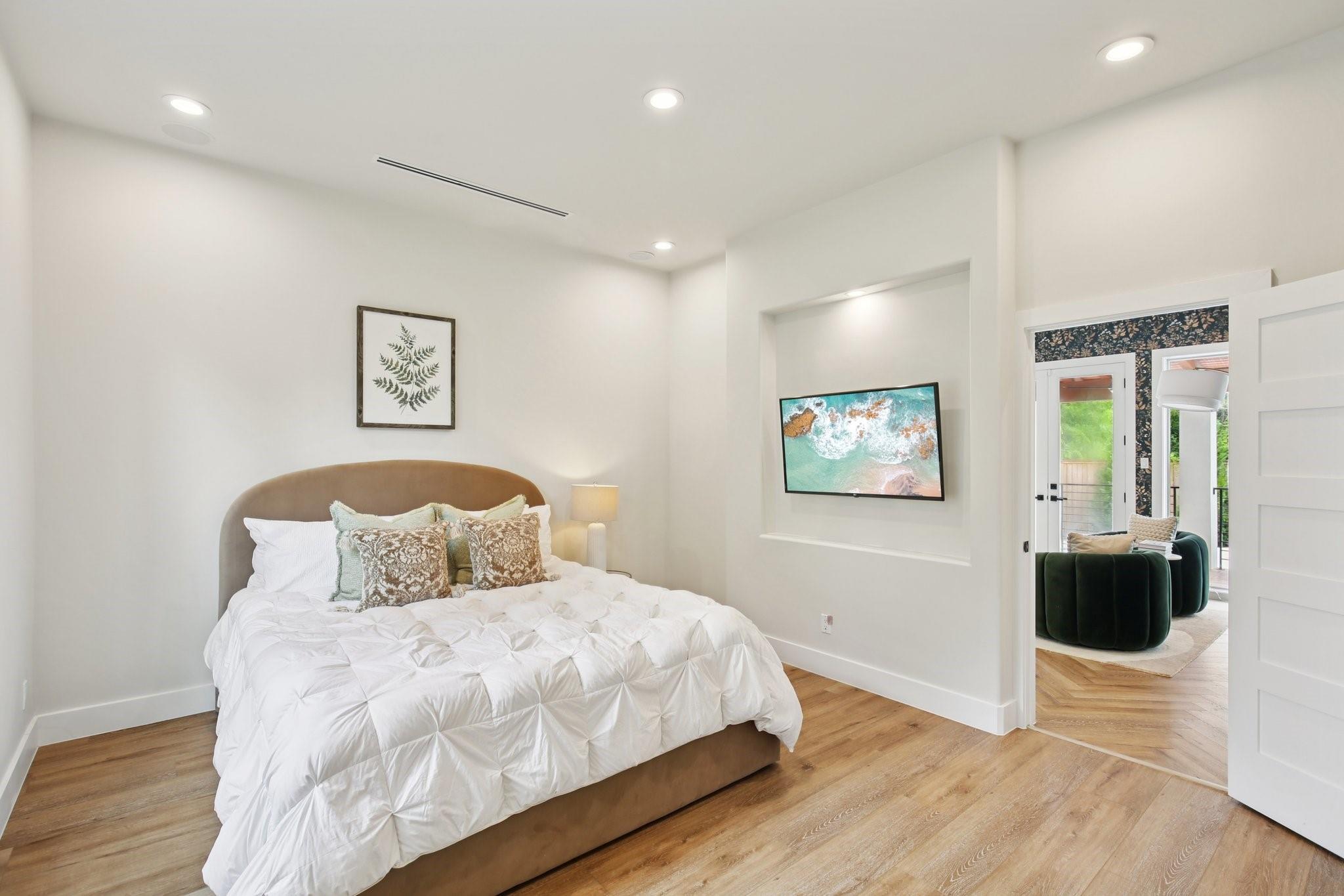 Stunning residence nestled on a quiet cul-de-sac in Memorial, featuring high-end finishes throughout. The open-concept layout showcases soaring ceilings, herringbone wood floors, and abundant natural light. The gourmet kitchen is equipped with custom cabinetry, stainless steel appliances, and a spacious island—ideal for gatherings. The luxurious primary suite offers a spa-like bath and an oversized fashionista closet. A secondary bedroom with full bath is located downstairs, perfect for guests. Step outside to your private outdoor oasis with a covered kitchen, heated pool, and multiple lounge areas—ideal for effortless entertaining. Notable upgrades include automatic blinds, an in-home water purifier, new ACs, new pool equipment and a full sprinkler system. Prime location just minutes from I-10, Beltway 8, and Westpark Tollway, with close proximity to CityCentre, Memorial City Mall, and premier dining and shopping.