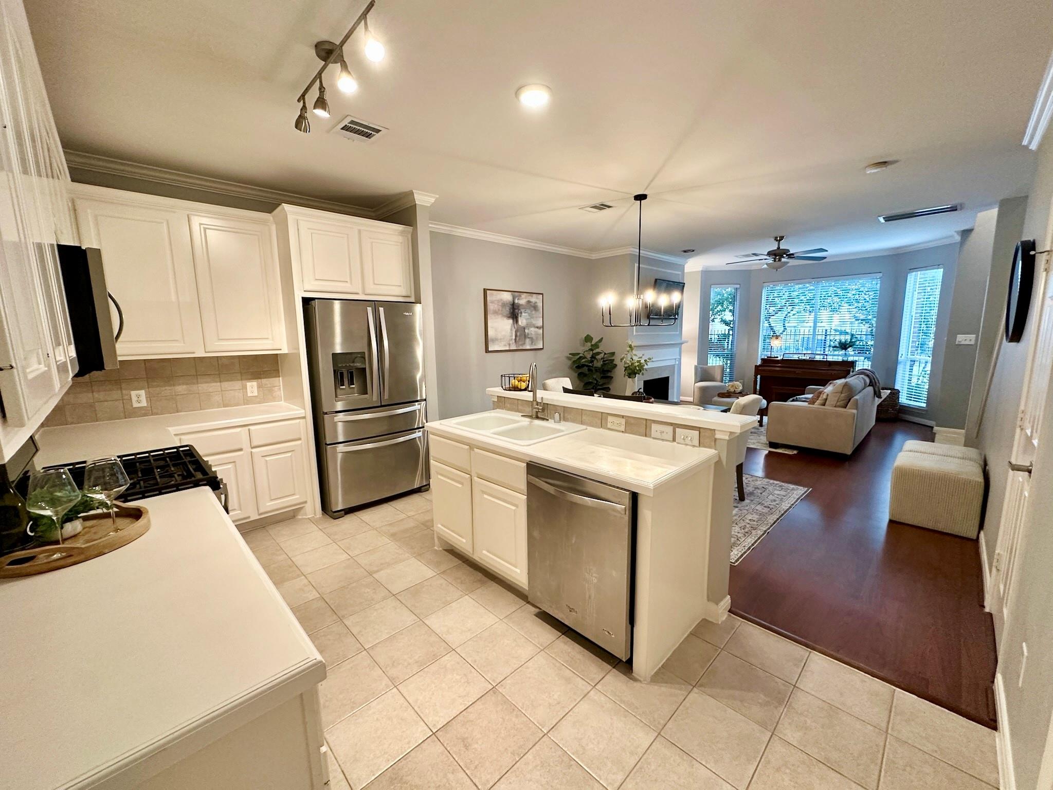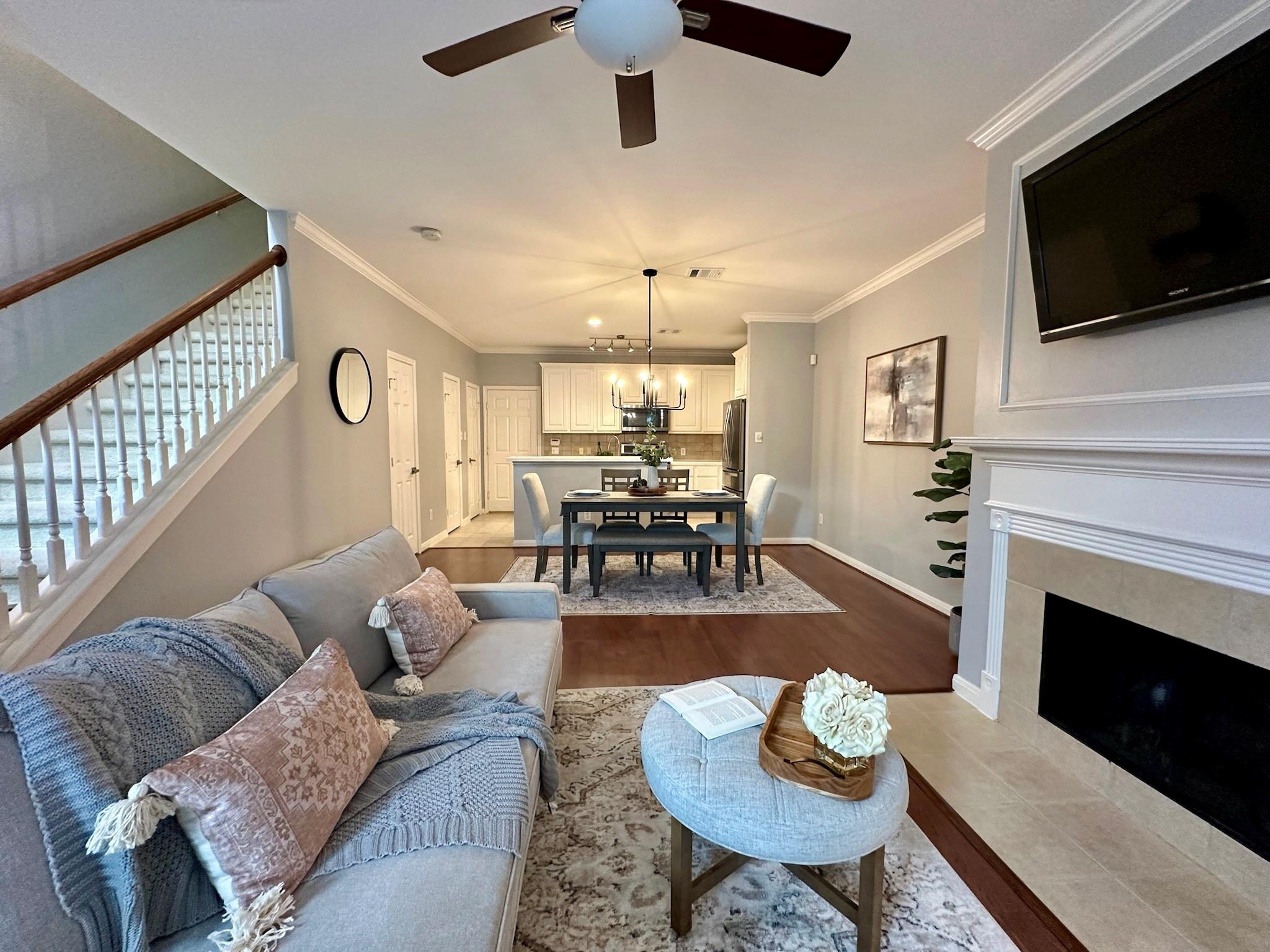 InteriorFireplace:1/Gas Connections,Gaslog FireplaceFloors:Carpet,TileBathroom Description:Half Bath,Primary Bath: Tub/Shower Combo,Secondary Bath(s): Tub/Shower ComboBedroom Desc:2 Primary Bedrooms,All Bedrooms Up,En-Suite Bath,Walk-In ClosetKitchen Desc:Breakfast Bar,Kitchen open to Family Room,PantryRoom Description:Living Area - 1st Floor,Living/Dining ComboHeating:Central GasCooling:Central ElectricWasher/Dryer Conn:YesDishwasher:YesDisposal:YesCompactor:NoMicrowave:YesRange:Gas RangeOven:Electric OvenAppliances:Dryer Included,Electric Dryer Connection,Full Size,Gas Dryer Connections,Refrigerator,Washer IncludedEnergy Feature:Attic Fan,Attic Vents,Ceiling Fans,Digital Program Thermostat,Energy Star Appliances,Energy Star/CFL/LED Lights,High-Efficiency HVAC,HVAC>13 SEER,Insulation - Blown Fiberglass,Radiant Attic BarrierInterior:Alarm System - Owned,Brick Walls,Central Laundry,Crown Molding,Fire/Smoke Alarm,High Ceiling,Prewired for Alarm System,Refrigerator Included,Spa/Hot Tub