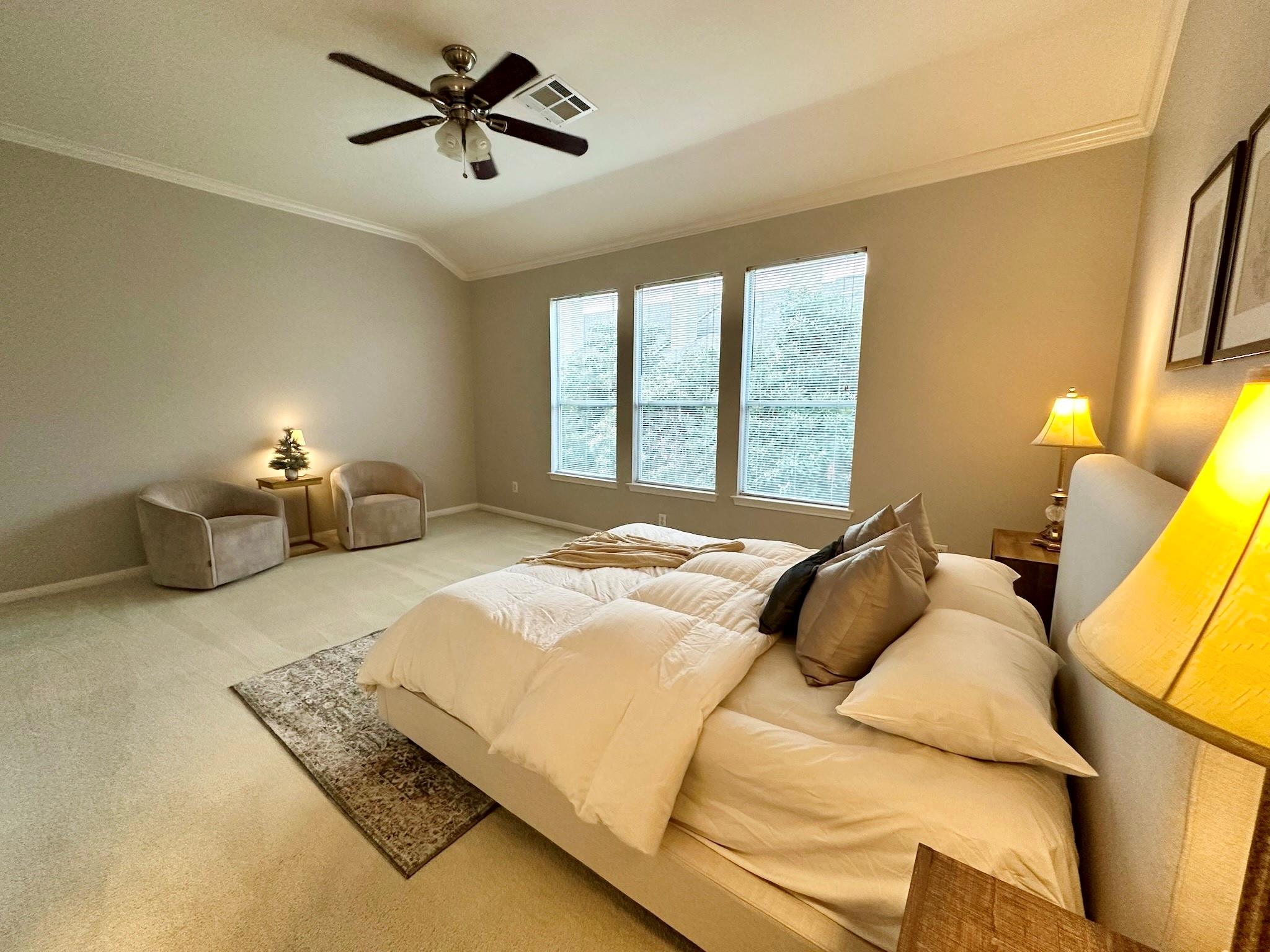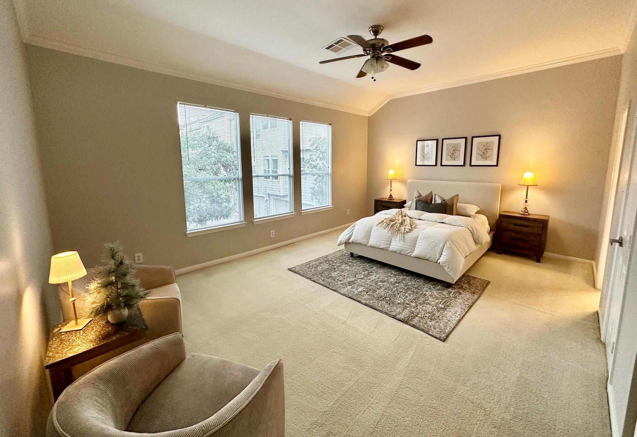 Meticulously maintained and charming 2 bedroom, 2.5 bath Perry Homes townhome in Midtown! Huge bedrooms with ensuite sun-lit bathrooms and walk-in closets. Dual master bedroom floorplan has an abundance of natural light throughout and is perfect for a roommate living. Located within a gated community with remote-security access gates, common shared space, and HOA-maintained landscaping and sprinkler system. Additional features include stainless steel appliances, designer paint, new water heater (2025) and new A/C (2020). Within minutes from downtown, Houston museum district, Medical Center, Toyota Center, Shell Energy stadium, Daikin Park, and tons of acclaimed restaurants and night-life! Also just steps from the historic Baldwin Park, known for its beautiful oak trees with a jogging trail, picnic area and playground. Come see this gem and don't miss an opportunity to live in a perfectly central location!