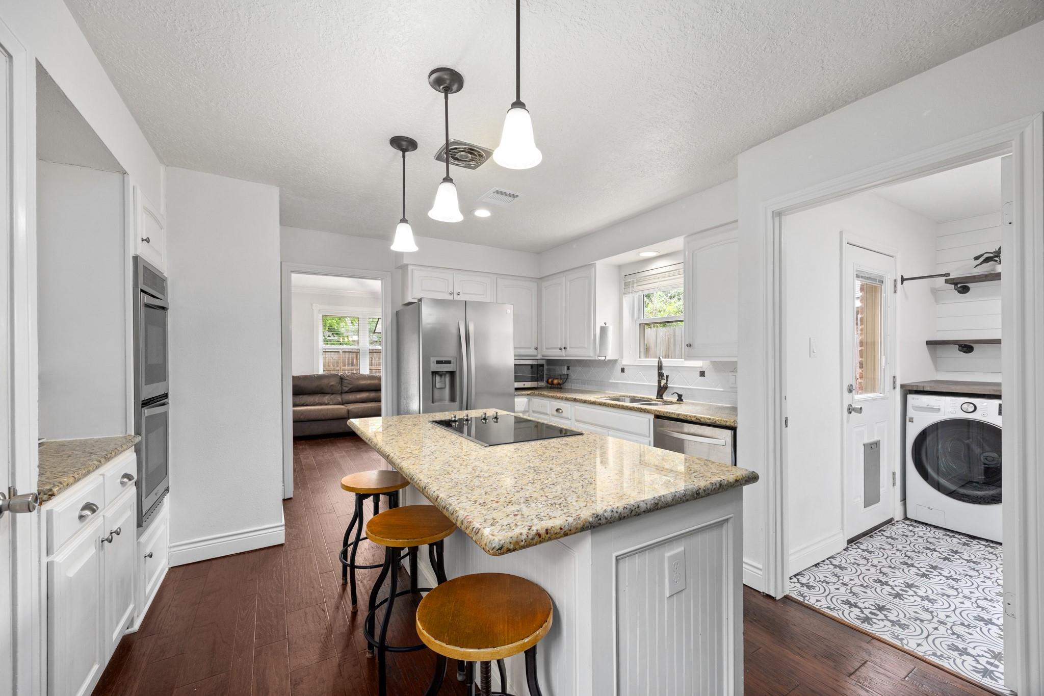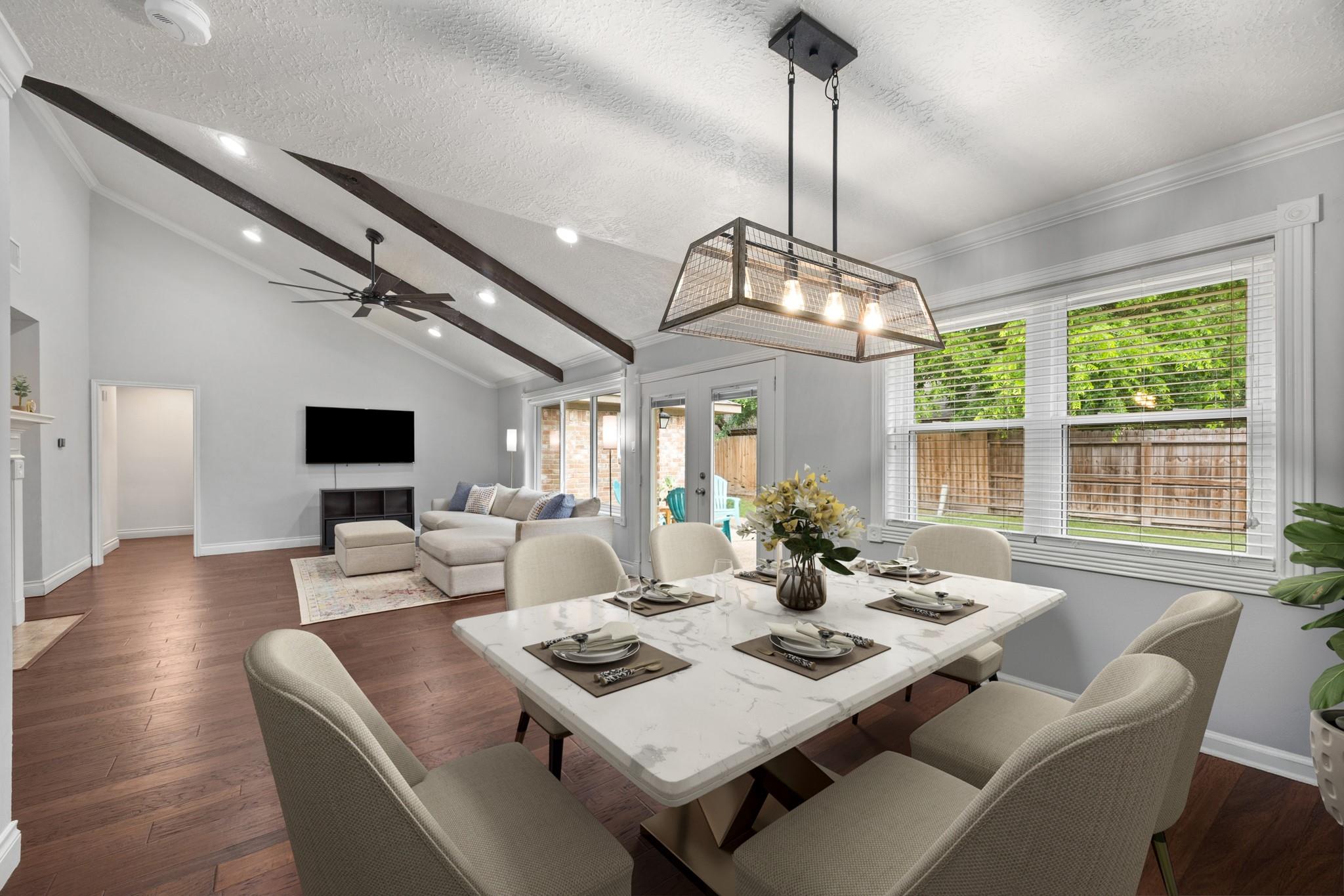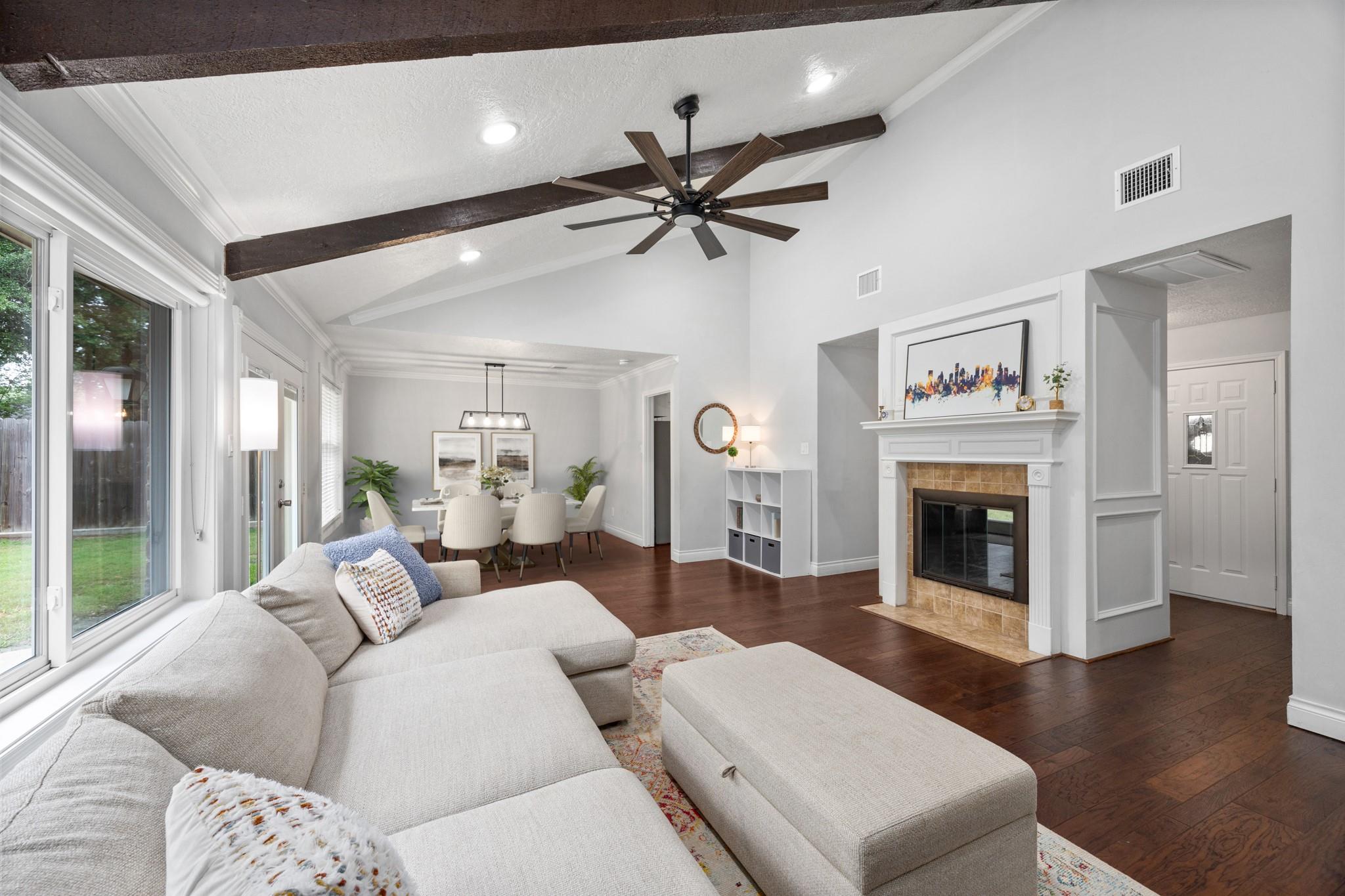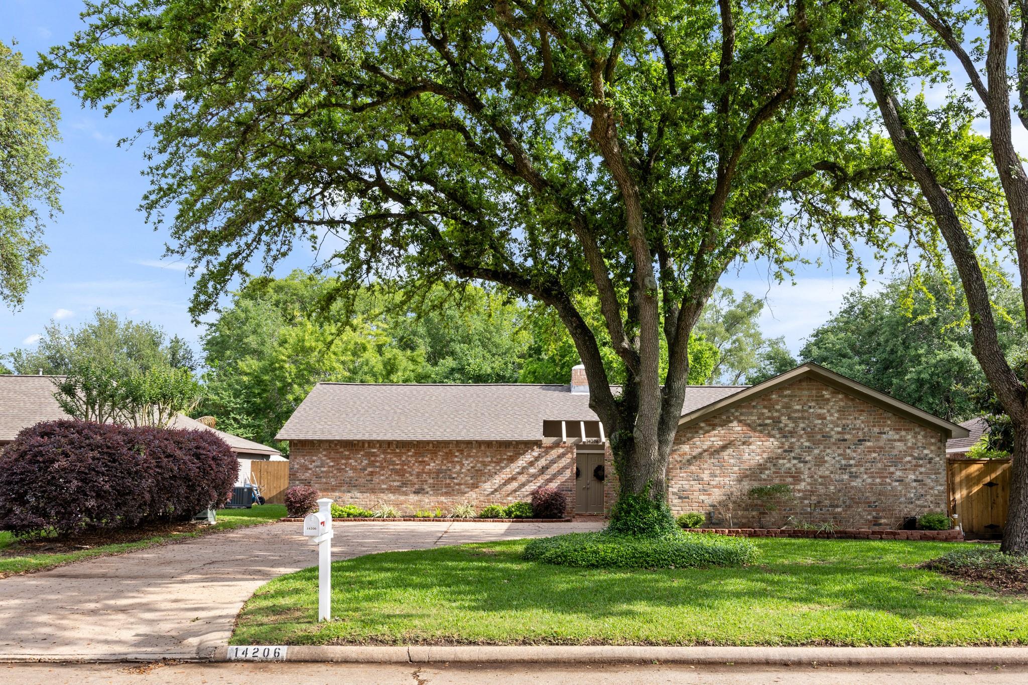 Welcome to 14206 Locke Lane, a beautifully updated one-story home nestled beneath gorgeous, mature oak trees. This 3-bedroom, 2-bath home features a charming double-door entry off a cozy front porch and showcases stunning wooden beams across the living room ceiling, complemented by a warm fireplace. Real hardwood floors flow through the main living areas, while plush carpet adds comfort to the bedrooms. Both bathrooms have been thoughtfully remodeled, along with numerous mechanical upgrades throughout the home. The updated laundry room adds convenience and functionality. Enjoy the spacious backyard complete with a dog run and pet-friendly doggie door. Ideally located between I-10 and Westpark Tollway for easy commuting and zoned to Westside High School, a Magnet for Integrated Technology. Move-in ready and full of charm—schedule your showing today!