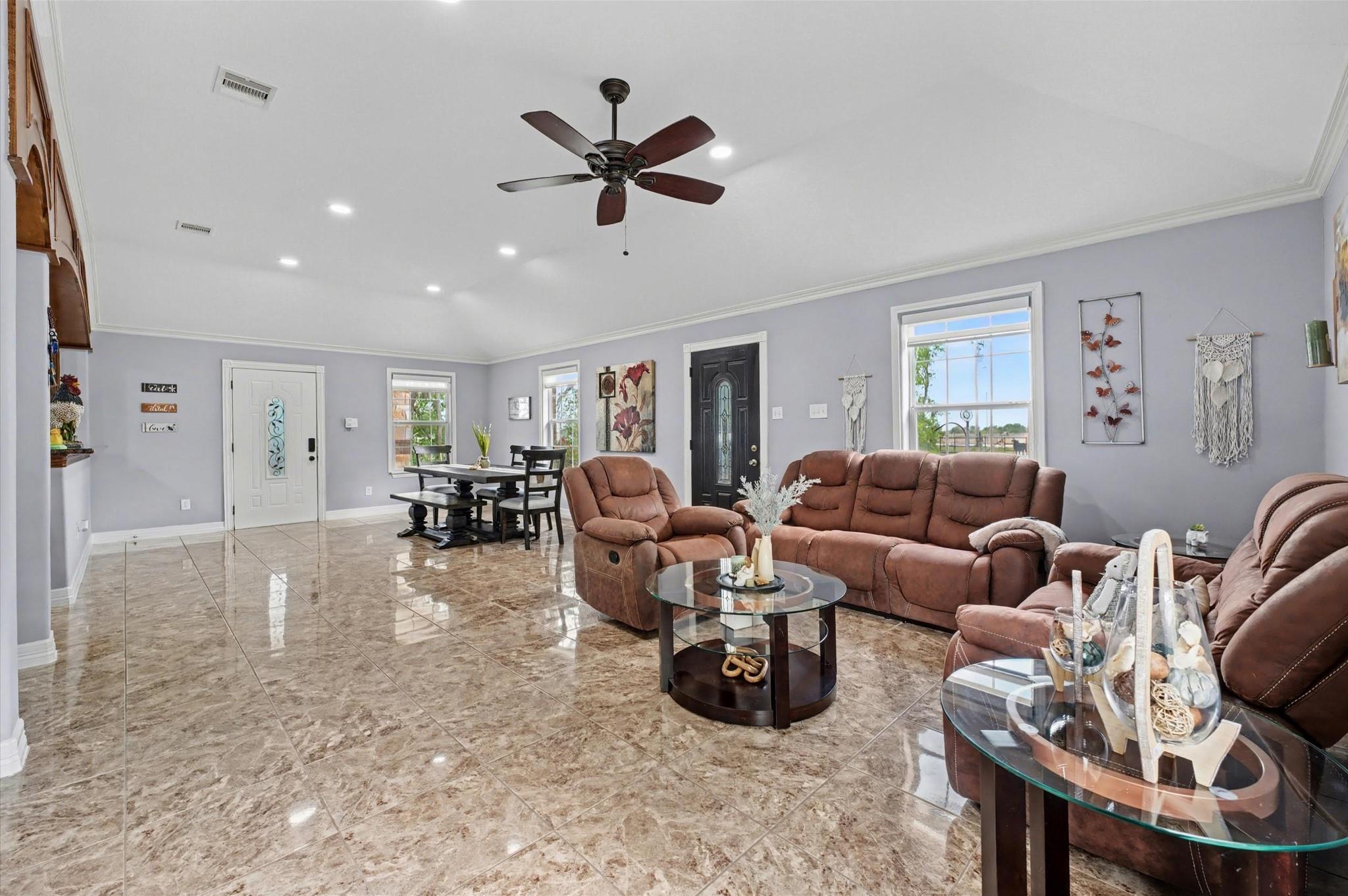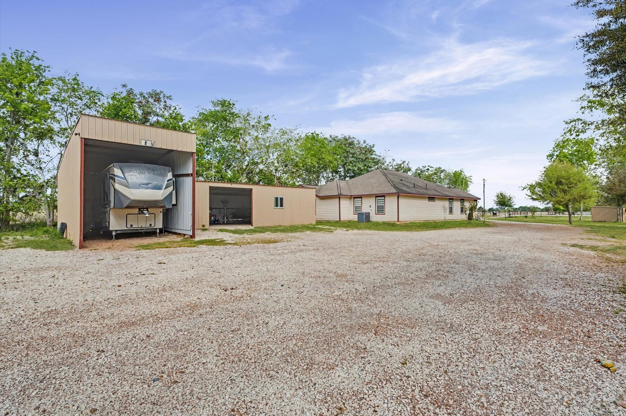 Amazing country home situated on 1.5 unrestricted acres offers elegance and spacious comfortable living. 4 bedrooms, 2 full bathrooms, an office, laundry room, huge kitchen with an open concept to the living room. Master bedroom gives you all the space you need with a walking closet and a large walk-in shower. The outside kitchen and patio are great for hosting family and friends. There is a 1200 SQFT workshop with an electric and water setup for a potential apartment or bathroom. Whole house water filtration system. There is a 675 SQFT of enclosed Barn ideal for RV parking. Enjoy country living in Waller County. Do not miss this opportunity.