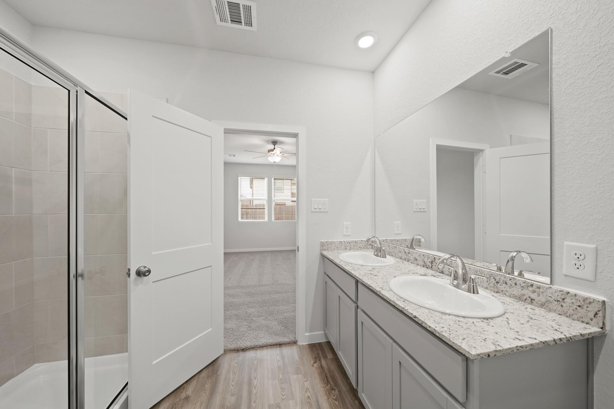 The Davis - Designed with your comfort and convenience in mind, the single-story Davis plan offers the perfect combination of living and private space. Anchored by an inviting open-concept living area, this home features a spacious great room that flows into a well-appointed kitchen—boasting a center island and walk-in corner pantry—which overlooks a casual dining area. Toward the front of the home, two generous secondary bathrooms flank a full bath. On the other side of the home, a secluded primary suite includes a private bath and roomy walk-in closet. Additional main-floor highlights include a laundry room, a valet entrance and a formal dining room.