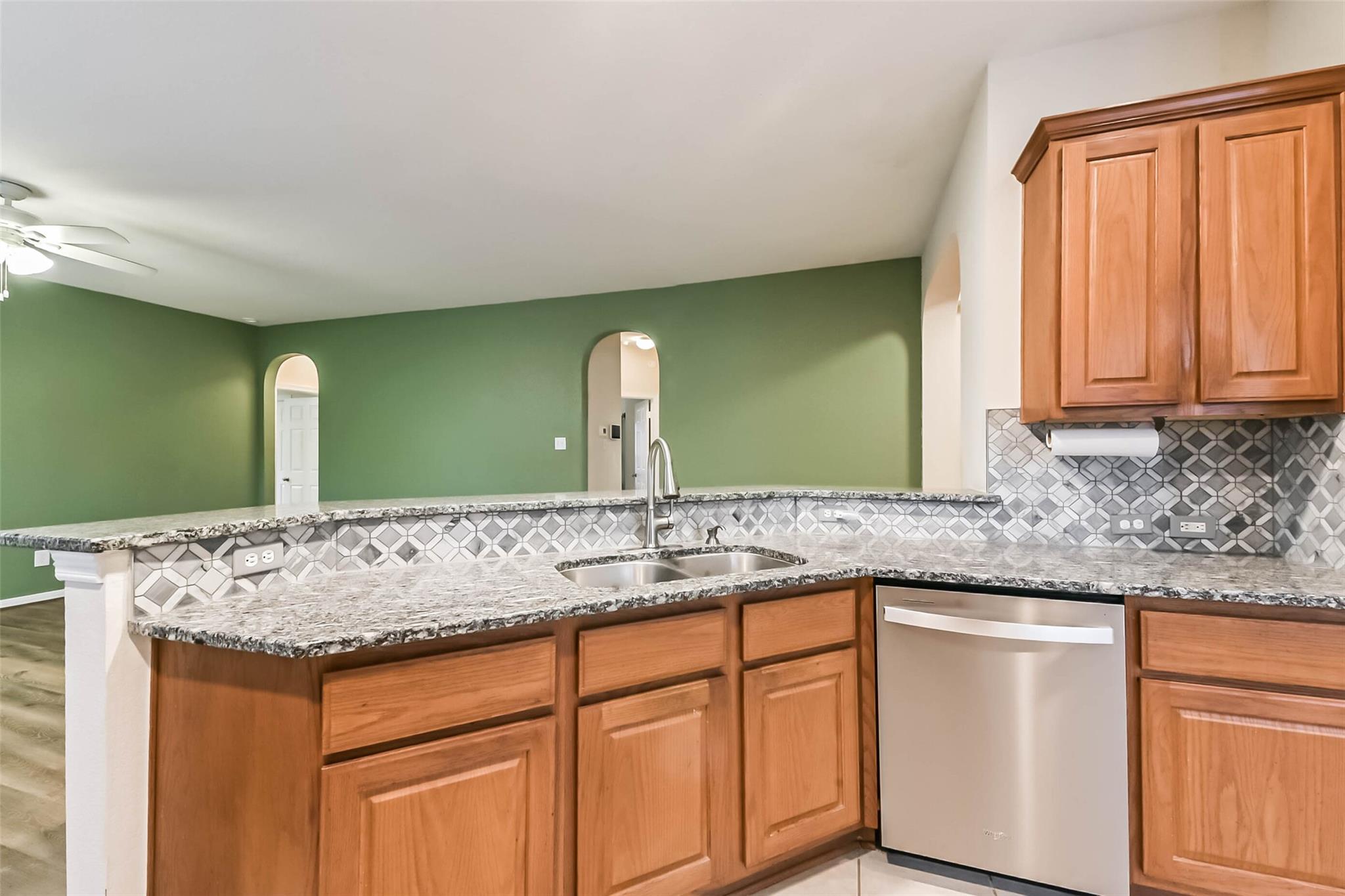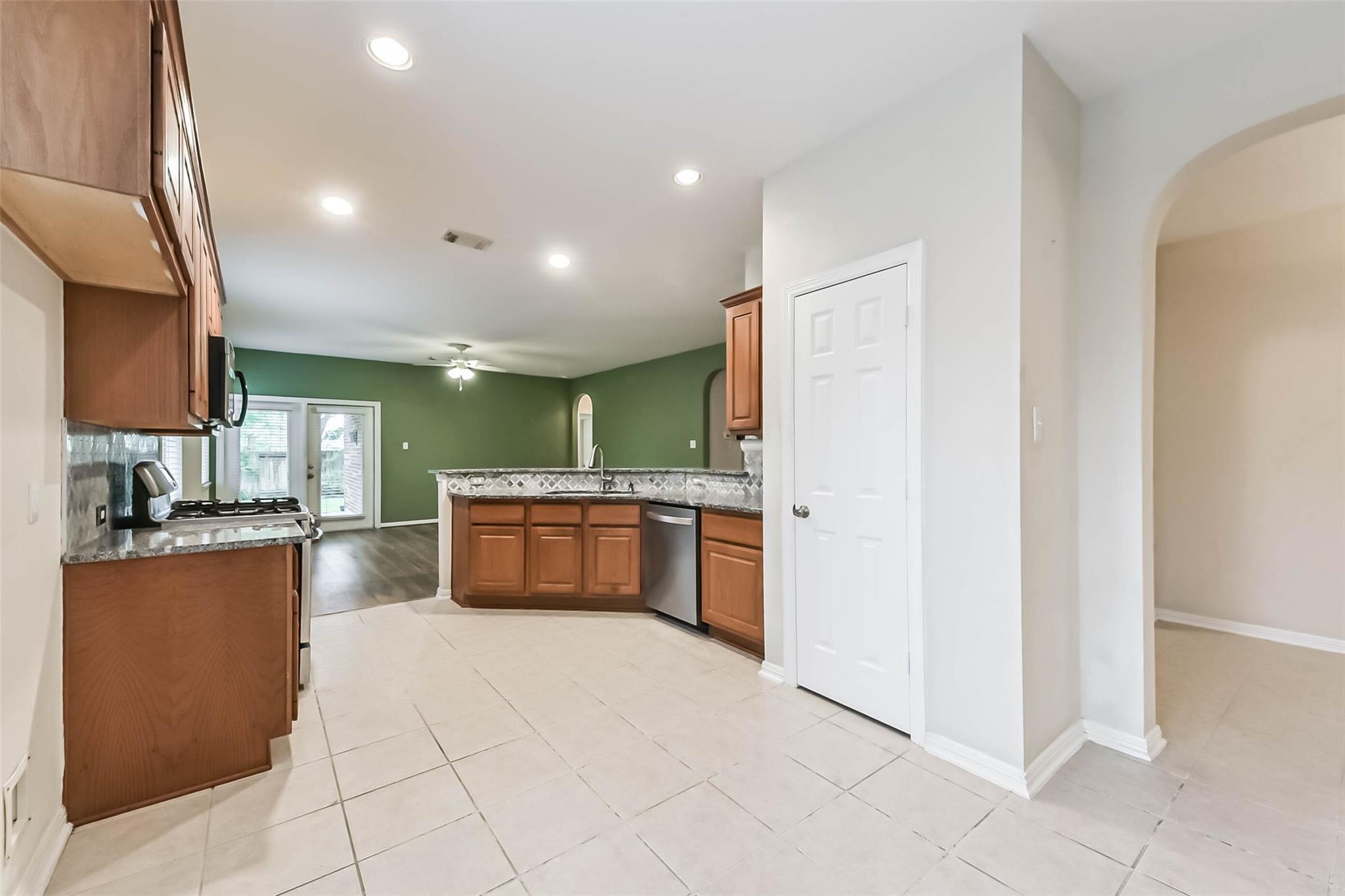 Beautifully maintained single-story home, featuring three spacious bedrooms and two fully renovated bathrooms. The living area is spacious and flows seamlessly into the kitchen. The kitchen has a gas cooktop, granite countertops, and is complemented by a separate breakfast nook. A private dining room is situated at the front of the home, perfect for entertaining. The backyard offers a generous green space with a patio and ample privacy, ideal for outdoor gatherings. Included with the home is a portable gas generator with cord, easily connected to an outlet at the electrical panel for convenience. Storm protection is ready with wood coverings and clips stored in the garage. Located on a desirable corner lot within the sought-after Summerwood master-planned community, this home offers easy access to Beltway 8, I-59, and IAH airport. Lovingly cared for by the original owners, this property truly reflects pride of ownership.
