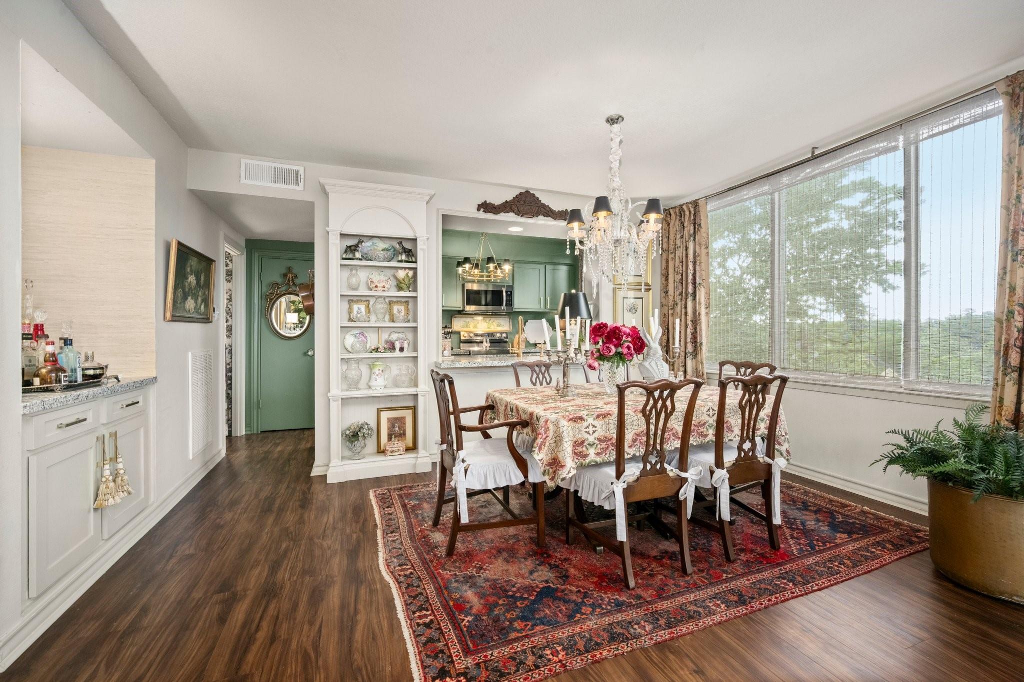 Welcome to this professionally designed and decorated condo in Timber Top! Timber Top high-rise is ideally located in Champion Forest conveniently located to shopping, dining and much more. This 3 bedroom, 3 full bathroom unit is located on the 5th floor, has two balconies with spectacular views and is one of kind. There are two bedrooms with private en-suites and the third bedroom shares a hallway bathroom. Granite counters are in the kitchen and bathrooms and luxury laminate is throughout the home. The amenities include a pool, tennis courts and a full fitness center. There is also 24-hour concierge, keyed access and night-time security for safety. The seller is excluding the kitchen and dining room chandeliers, all draperies, (2)mirrors in Primary bathroom and the pot rack on wall before the kitchen.