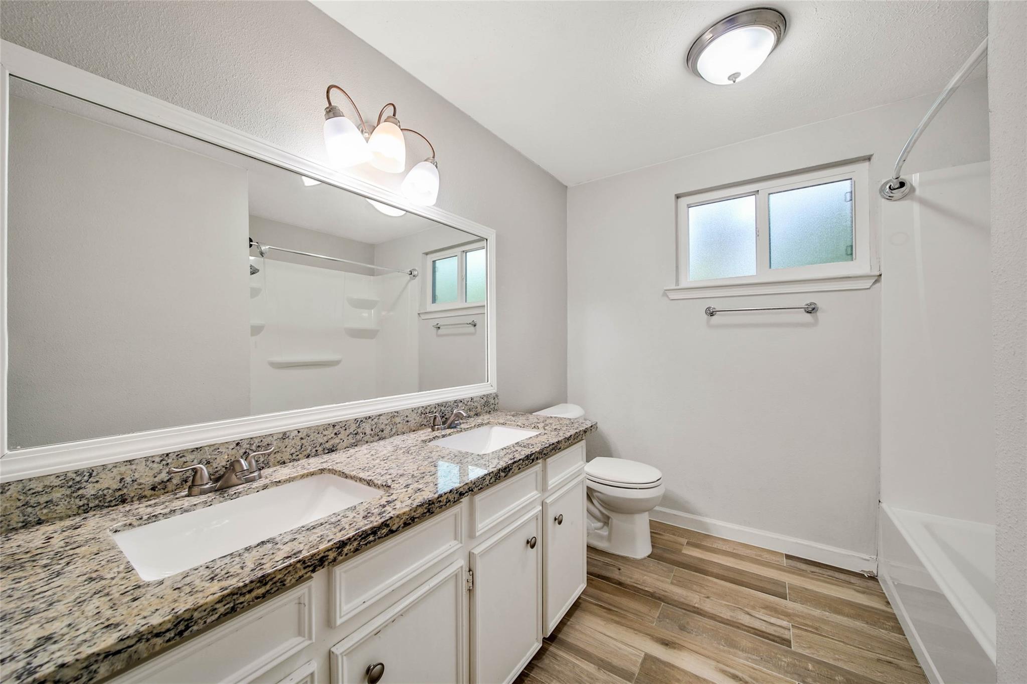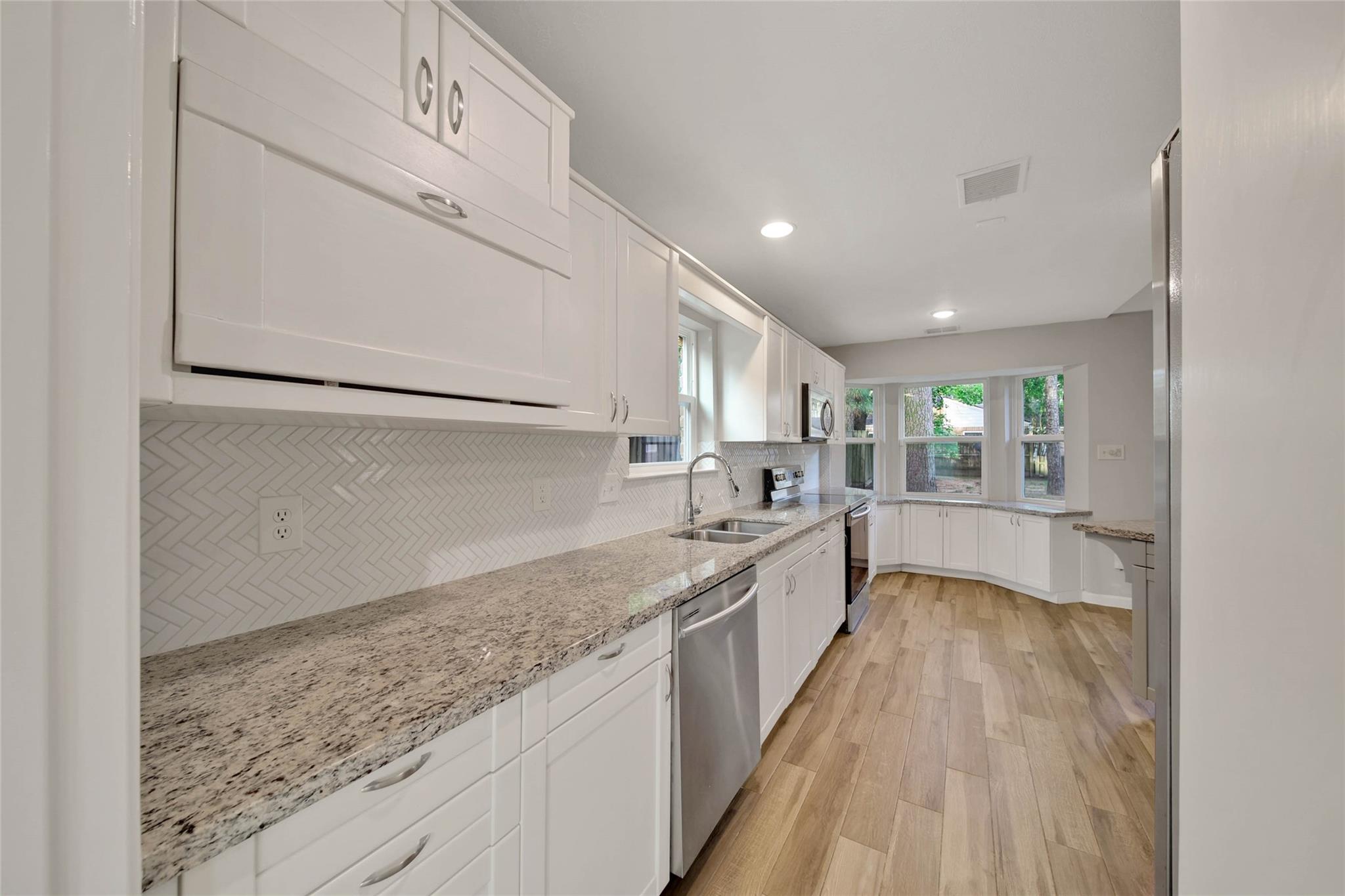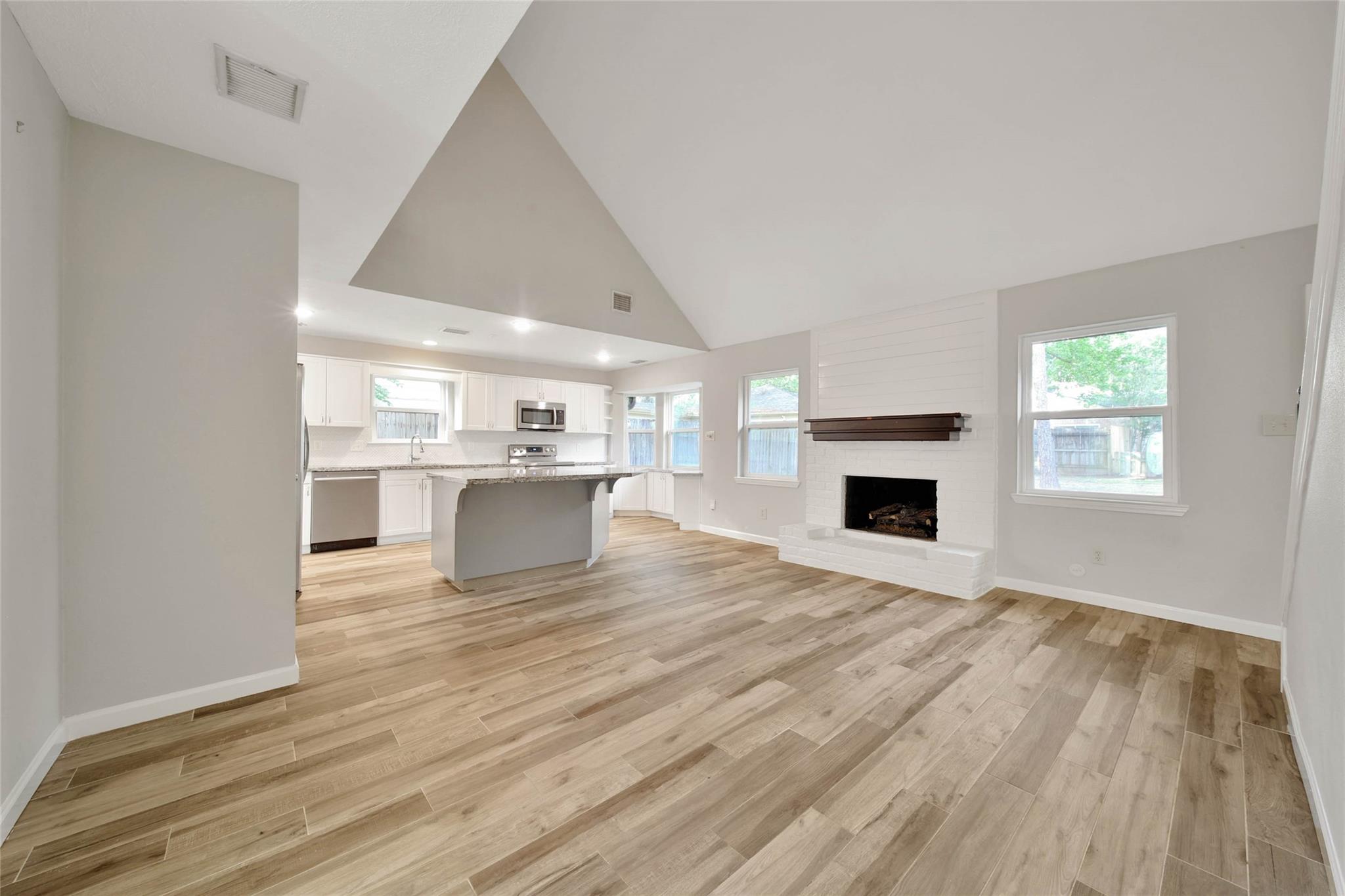 Charming two-story home nestled among mature trees in established Heatherwood Village, offering privacy and timeless curb appeal. This spacious 4-bedroom home features soaring ceilings, abundant natural light, and a bright, open-concept layout. The fully updated kitchen boasts granite countertops, stainless steel appliances, and an oversized island that flows seamlessly into the main living area—perfect for entertaining. Enjoy a cozy wood-burning fireplace, expansive living spaces, and a versatile floor plan with both formal and casual dining areas. The primary suite is conveniently located on the first floor, with generously sized secondary bedrooms upstairs. Situated on a desirable corner lot with a fenced backyard, just minutes from Hwy 249, Beltway 8, shopping, dining, and top-rated Cy-Fair ISD schools.
