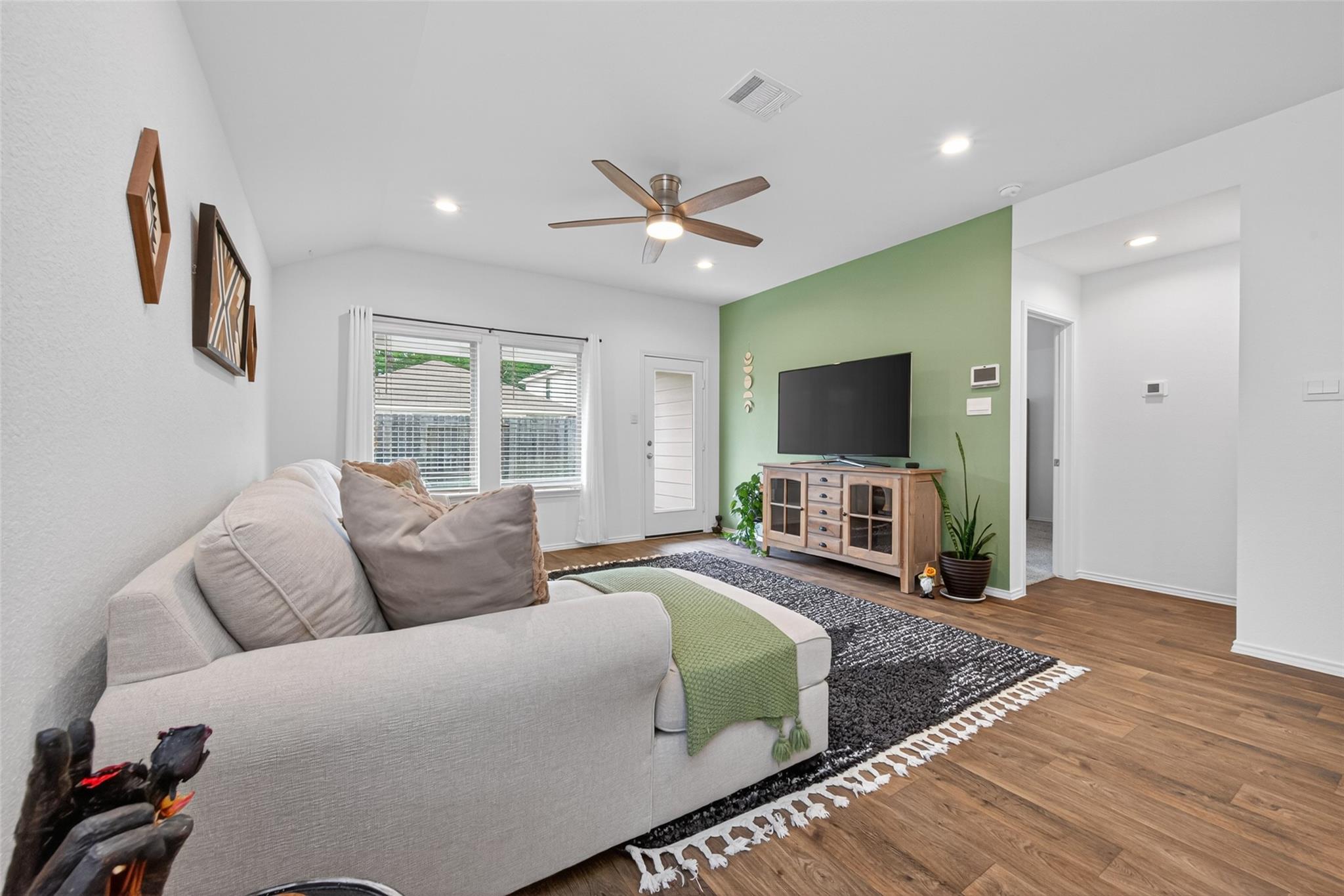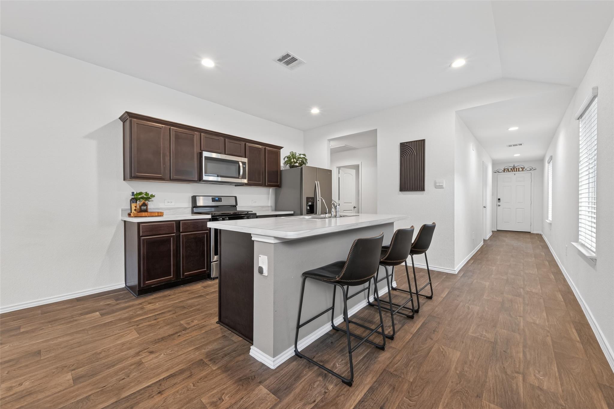 Nestled in the piney woods and built in 2022 by Express Homes by D.R. Horton. This 3-bedroom, 2-bath home is has been gently lived in, well maintained, and still has that new house smell. Vinyl flooring run throughout the open concept layout. Kitchen features island with overhang and barstool seating, stainless steel appliances and a gas range. Washer and dryer are included making this home a true turnkey option. Zoned to Splendora ISD, with an on-site elementary school the kids can walk to for added peace of mind and convenience. Harrington Trails offers community amenities including an open air pavilion, pool and splash pad, playground, and walking paths. Not to mention a calendar of events like a food truck series, trail walks, community wide garage sales and more. The community is off of 242 with access to 59 and 45 making access to shopping centers, dining areas, and major work centers fast and convenient. Here, there's something for everyone.