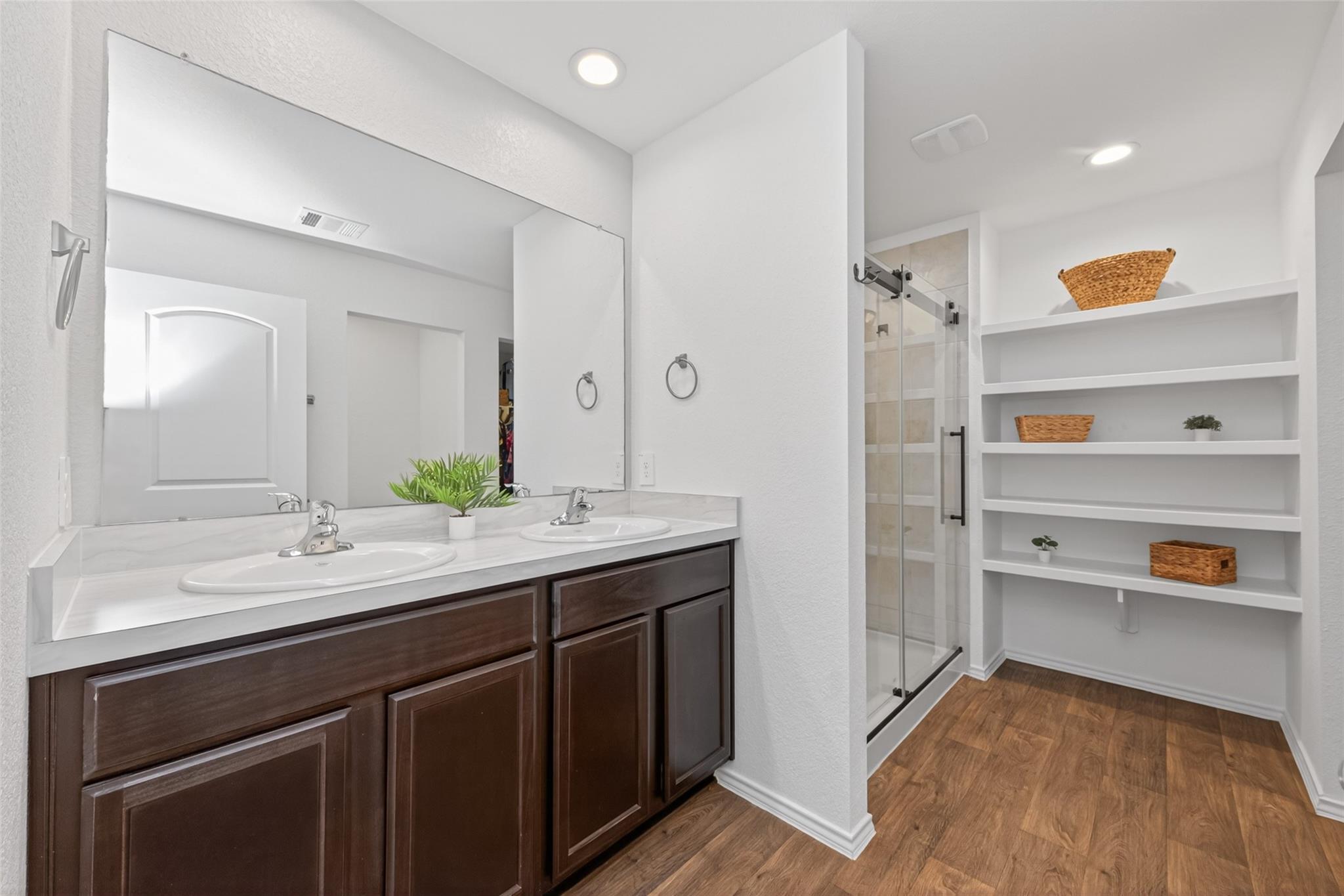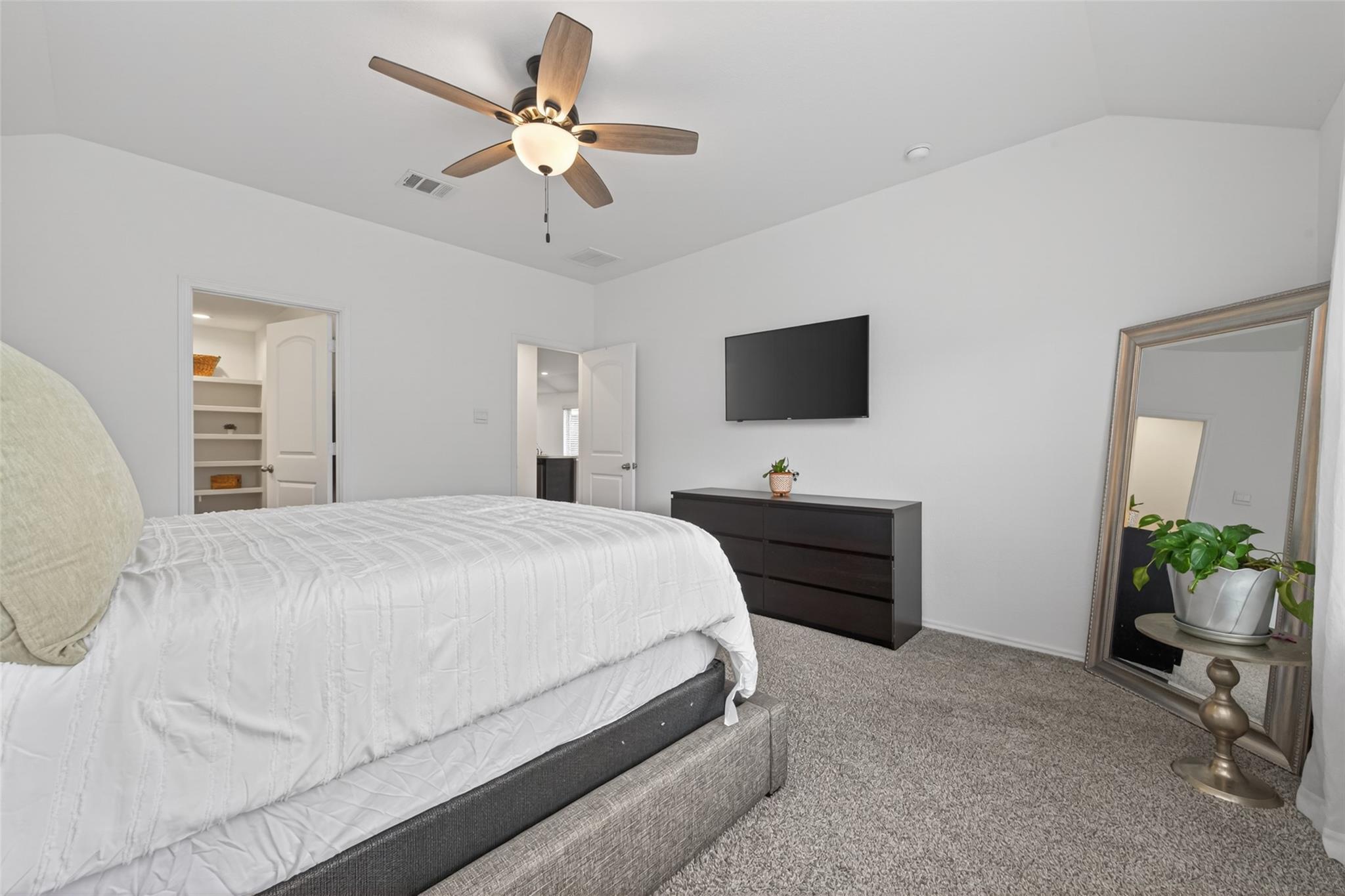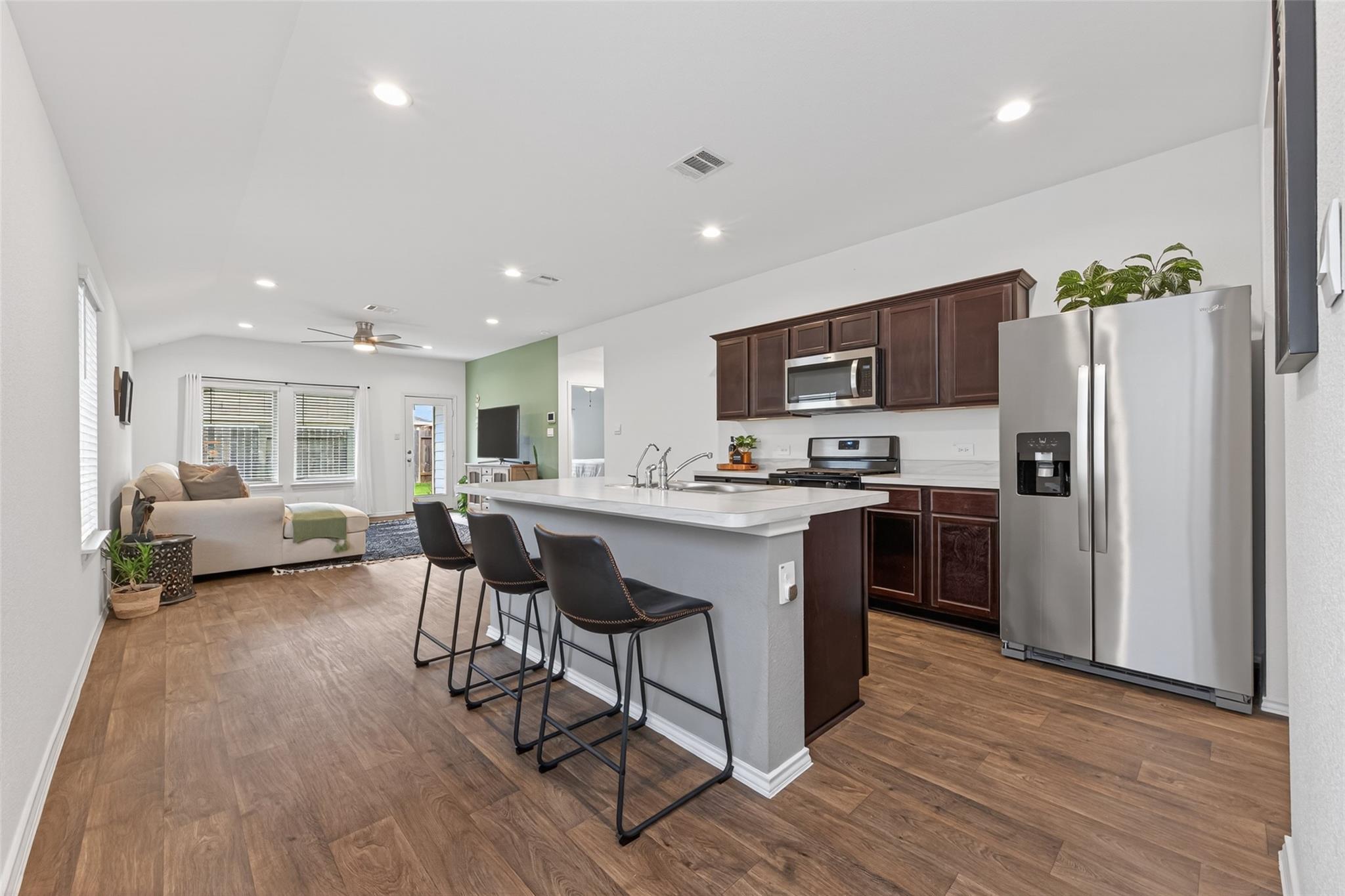 InteriorFloors:Carpet,Vinyl PlankBathroom Description:Primary Bath: Double Sinks,Primary Bath: Shower Only,Secondary Bath(s): Tub/Shower ComboBedroom Desc:All Bedrooms Down,En-Suite Bath,Primary Bed - 1st FloorKitchen Desc:Island w/o Cooktop,Kitchen open to Family Room,PantryRoom Description:1 Living Area,Kitchen/Dining Combo,Living Area - 1st Floor,Living/Dining Combo,Utility Room in HouseHeating:Central GasCooling:Central ElectricConnections:Washer ConnectionsDishwasher:YesDisposal:YesCompactor:NoMicrowave:YesRange:Gas RangeOven:Gas OvenIce Maker:NoEnergy Feature:Ceiling Fans,Digital Program Thermostat,High-Efficiency HVAC,Insulated/Low-E windowsInterior:Alarm System - Leased,Dryer Included,Fire/Smoke Alarm,Refrigerator Included,Washer Included