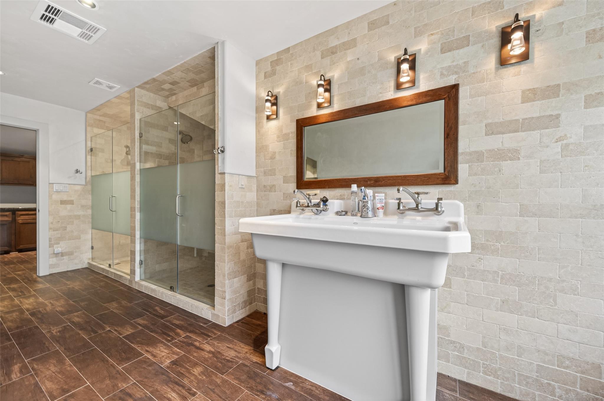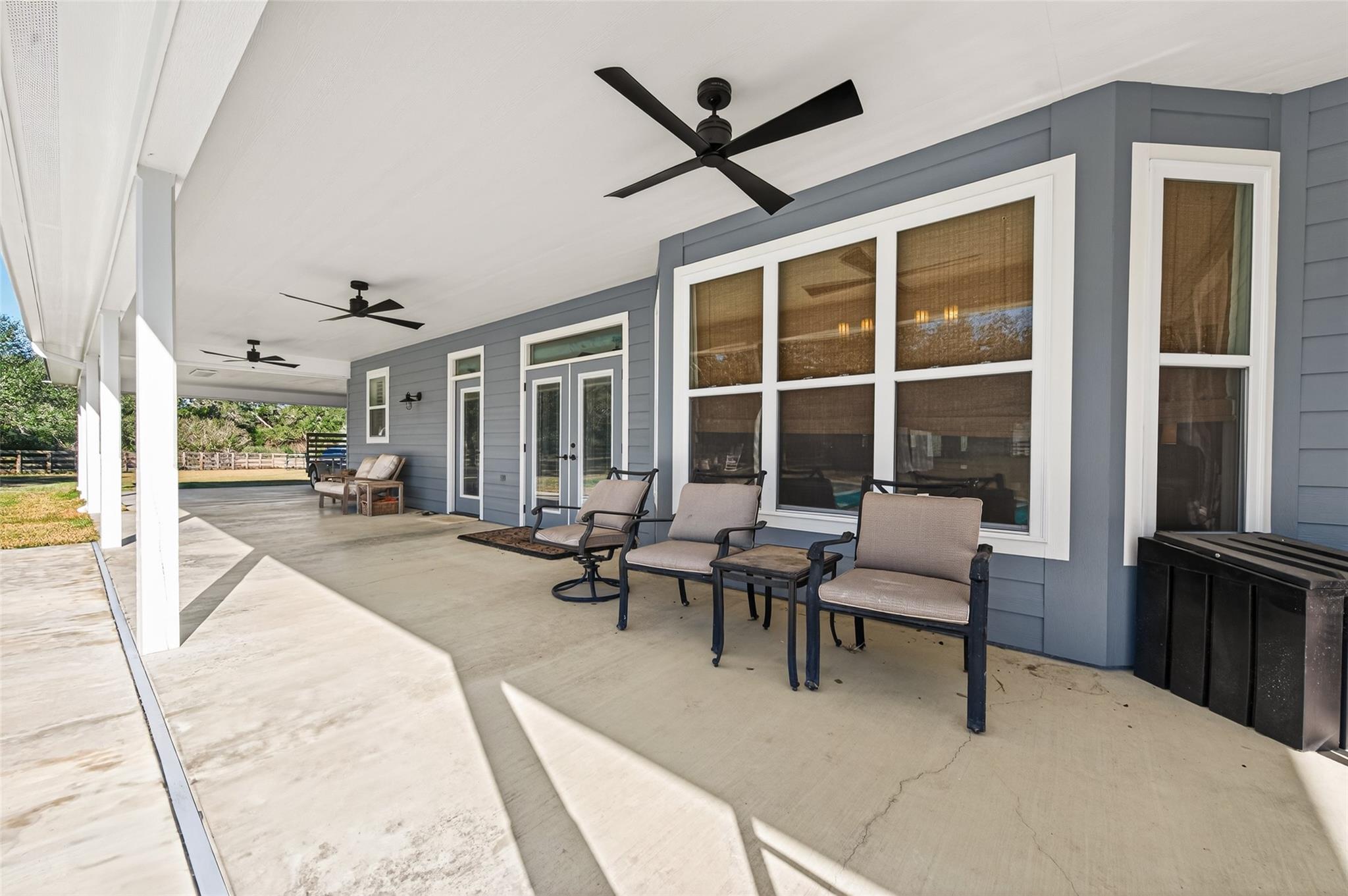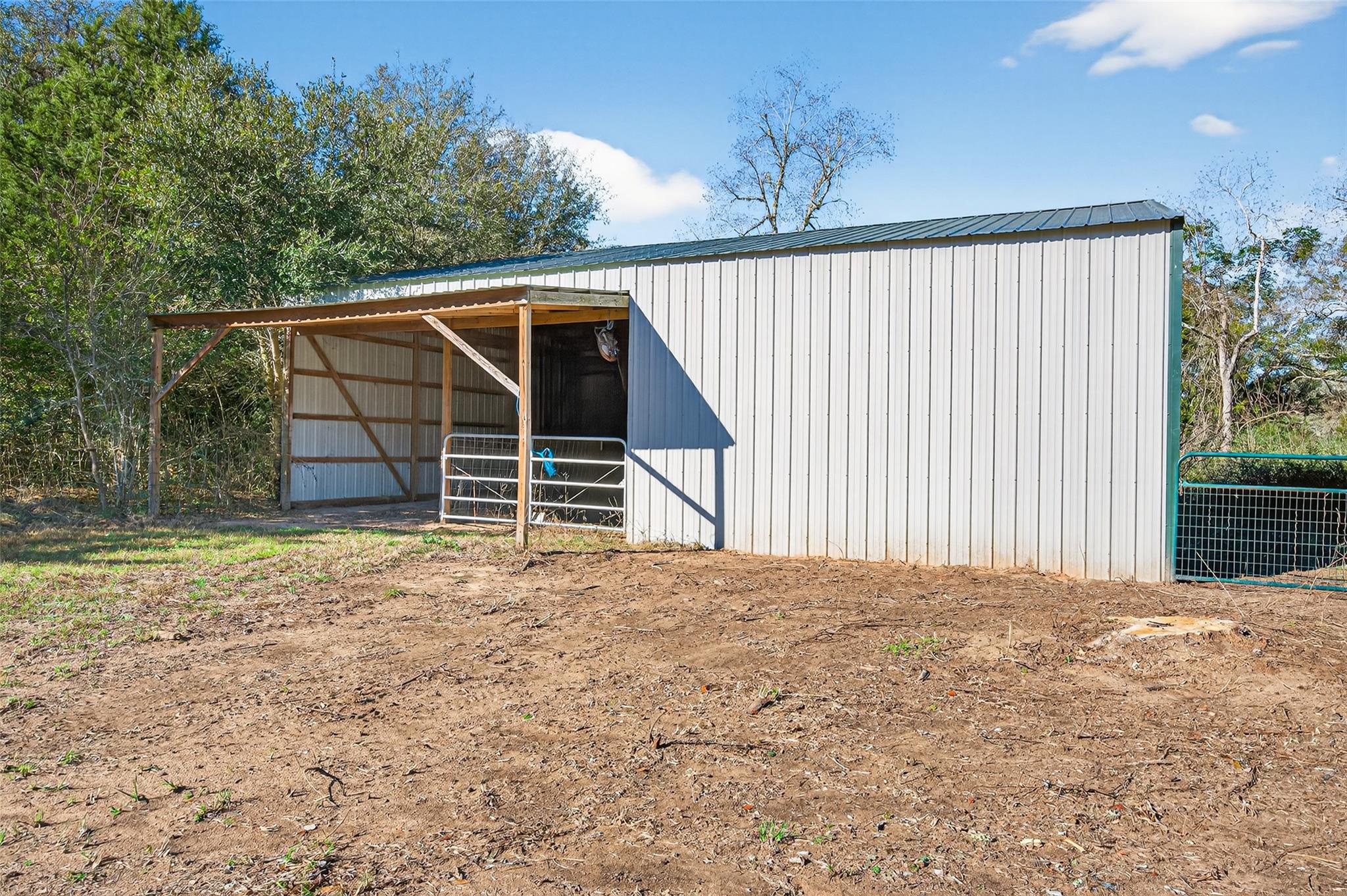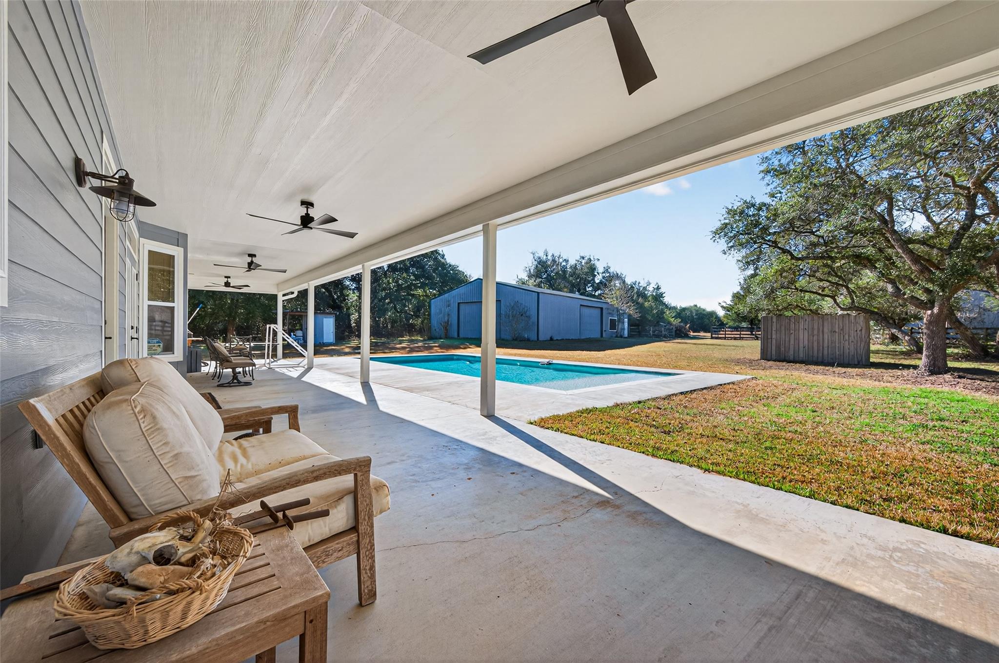 23.6 unrestricted acres in Cat Spring featuring a 3,549 SF farmhouse with private in-ground pool, barn, 2 horse stalls, cross fencing, workshop, PLUS barndominium-style full guest quarters, in addition to listed sq ft! Built in 2009, this home offers open-concept living, breakfast bar, 3 bedrooms downstairs including primary suite with double sinks, separate shower, vanity area, and walk-in closets. Upstairs is built to impress with 8 built-in bunk beds, full bath including 2 showers, urinals, second kitchenette, and second laundry room (with bonus secret room!) —ideal for large gatherings or multi-use living. Attached 2-car carport, gated driveway, 2 water wells, septic, central electric HVAC, ag exemption in place. Horses allowed. Cleared pasture and wooded acreage. No restrictions.