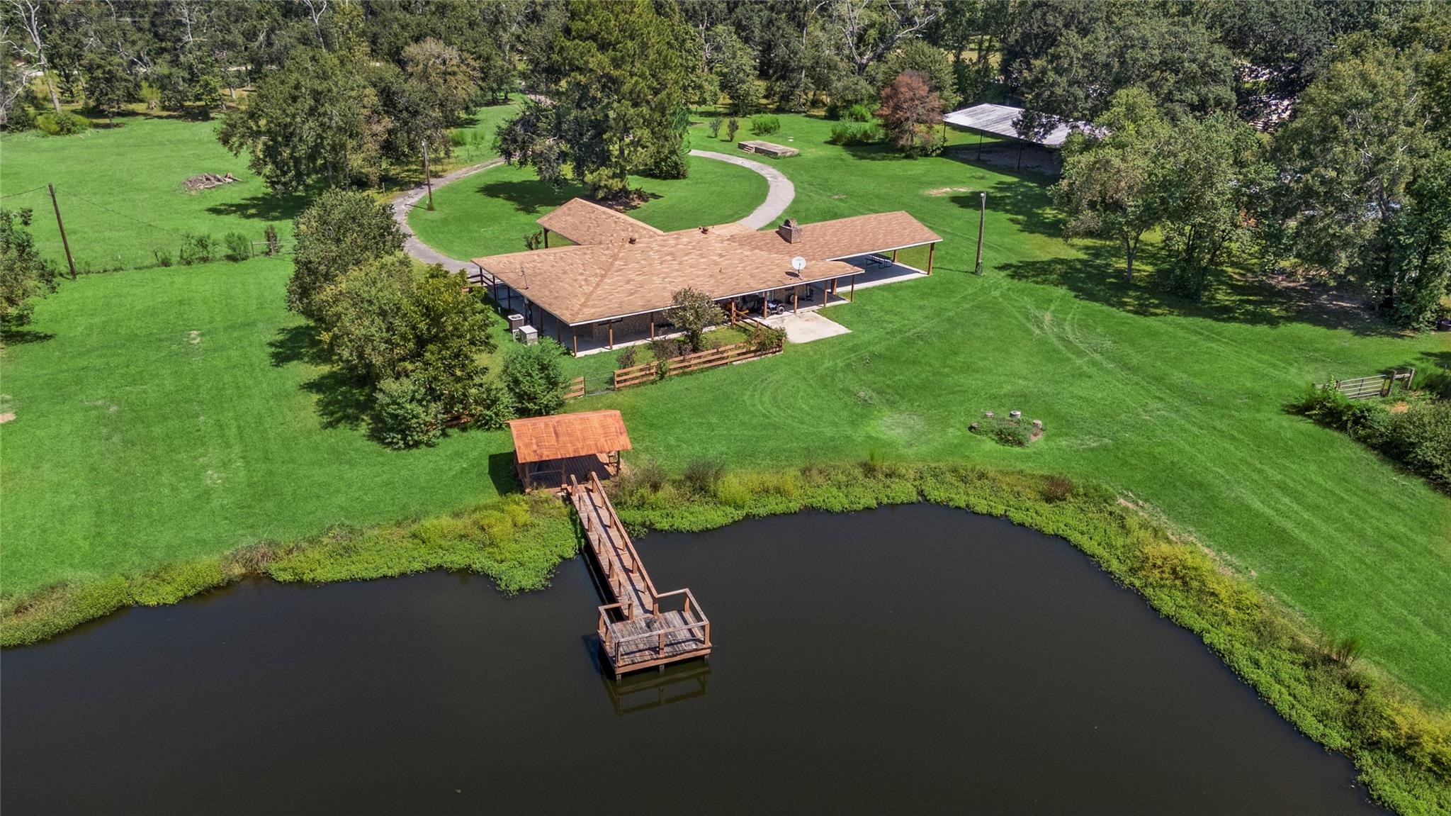 Enjoy the peace and quiet of country living on this 10 acre property. Beautifully remodeled 3/2 home. Big kitchen opens up to living area w/ Austin Stone fireplace.French doors open to the back patio that look out to the pond and back pasture.Covered veranda all the way around.Home generator. Open and breezy 28X30 sq ft carport attached with composite roof is great for parties,parking or can be enclosed for a garage.The 1200 sq ft shop has been divided in half to create a man-cave in the back. Partially built-out but materials are there. 8 stall barn with extra large stalls and pole barn for storing RVs, tractors, mowers and ATVs. 2 more stalls on property too. Cross fenced for horses. 1 acres pond with pier and covered deck. Water and septic on 3 other areas for multi-generational families. No Flooding! 15 minutes to all amenities of The Woodlands. This unrestricted property is a true gem! Come out,walk the property and understand what a treasure this place is!