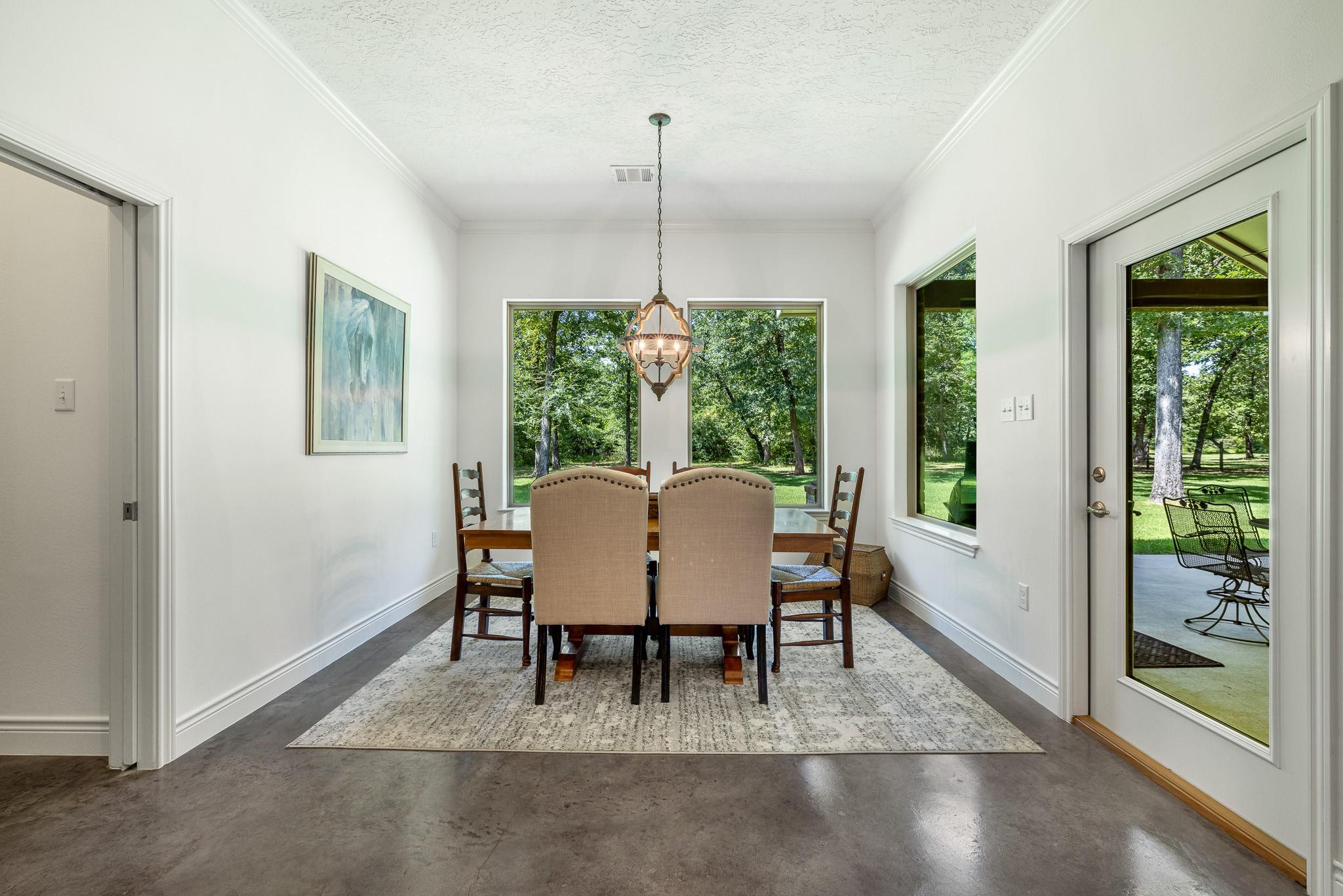 Nestled on 60 thoughtfully cleared acres in Leon County, this beautifully maintained property offers the perfect blend of peace, functionality, and convenience—just minutes from I-45. At the heart of the property sits a stunning 3,200 sq ft custom-built home that seamlessly blends modern updates with timeless charm. The home offers spacious living areas and quality finishes including large windows, granite countertops, vaulted ceilings, wide doorways, butler's pantry, and more. A 40x60 barn with water, electricity, and insulated storage provides ample space for equipment, tools, and livestock needs. Inside the barn is a 1 bedroom, 1 bath barndominium featuring a full kitchen and bath. The property has established trails throughout, with an ideal mix of open areas and mature tree coverage. The property also has two large ponds, interior horse fencing and equipment barn. Whether you're looking for a weekend escape, a working ranch, or a forever home, this property has it all.