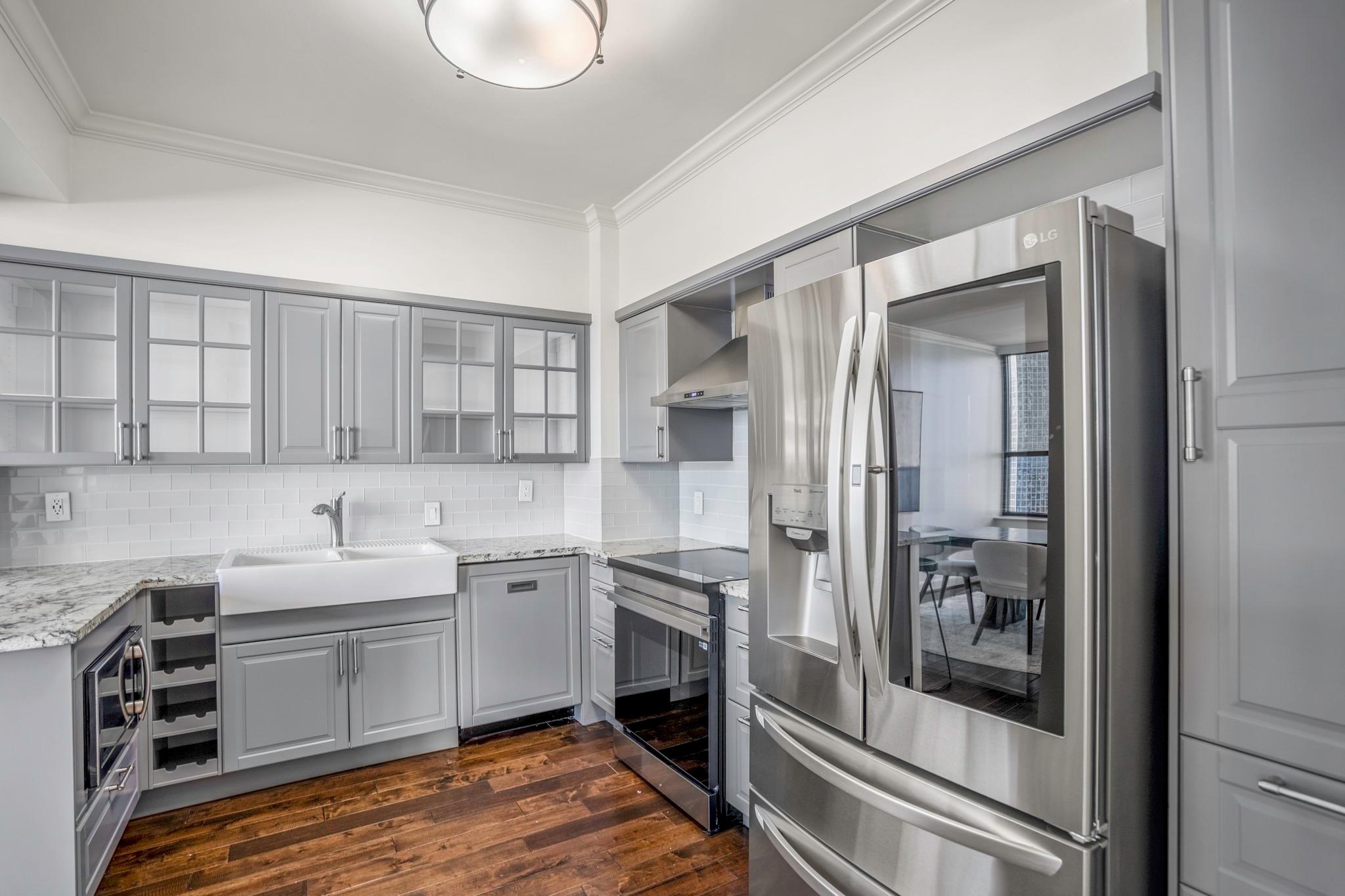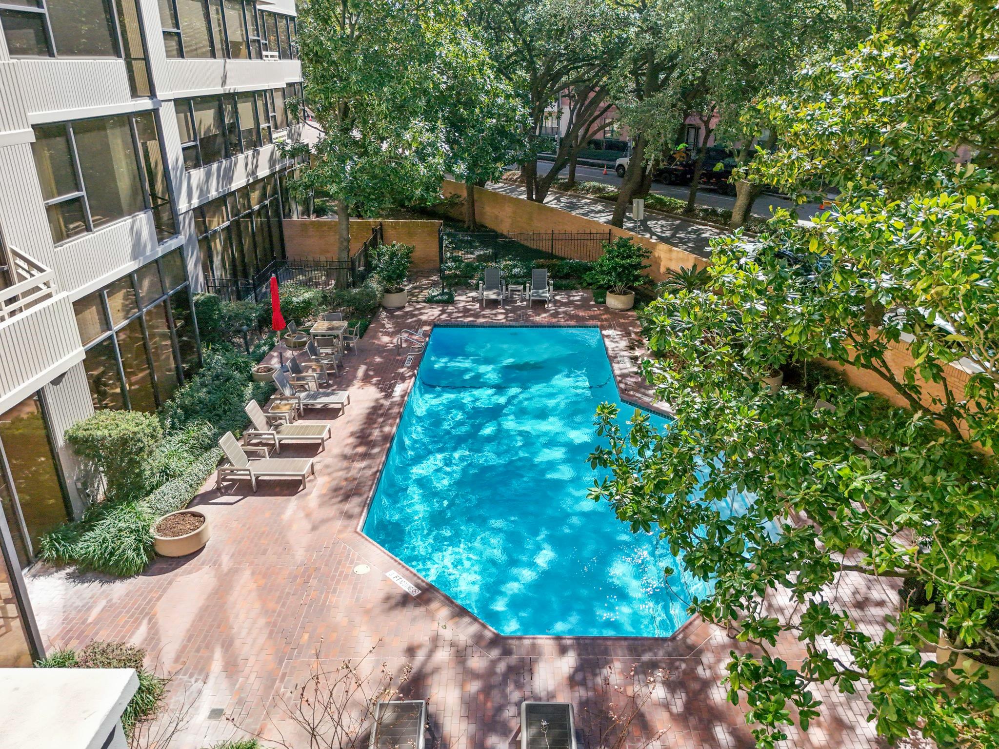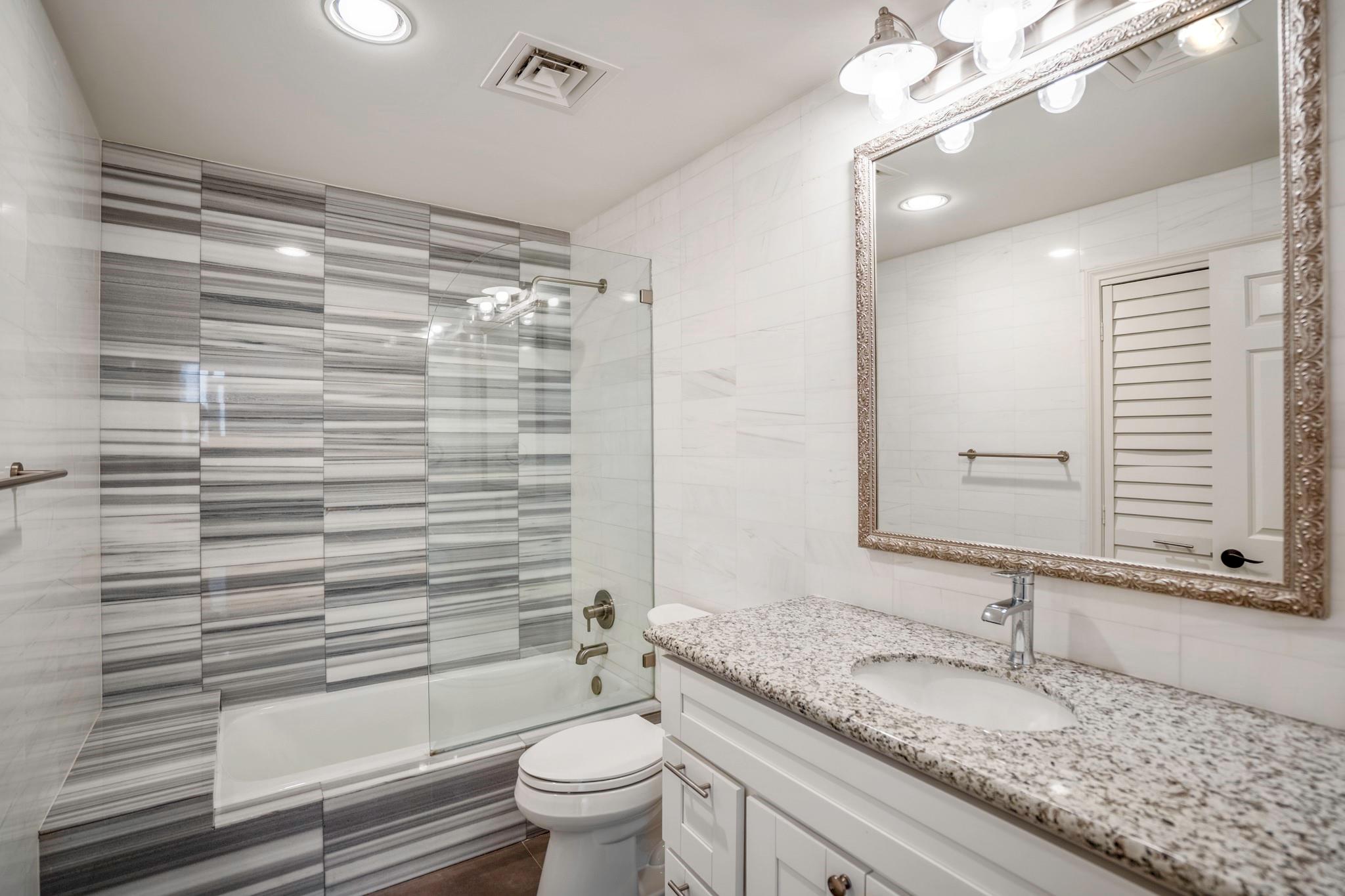 Elevated 12th-floor fully upgraded 2 Bedroom/2 Bath unit in the heart of the city. Offering open-concept living with abundant natural light and a private balcony showcasing skyline views. The kitchen features upgraded granite countertops, stainless appliances & gray cabinetry. Engineered hardwood floors, neutral color palette, smooth ceilings & custom solar shades enhance the refined interior. Breakfast bar and area with plenty of storage. The spacious primary suite includes an updated bath with oversized seamless glass shower, granite counters & modern fixtures, plus a custom designed walk in closet. Full-service high-rise living with 24-hour security, valet, porter service & beautiful pools. Prime location moments from River Oaks District, The Galleria, West U, Downtown & the Medical Center.