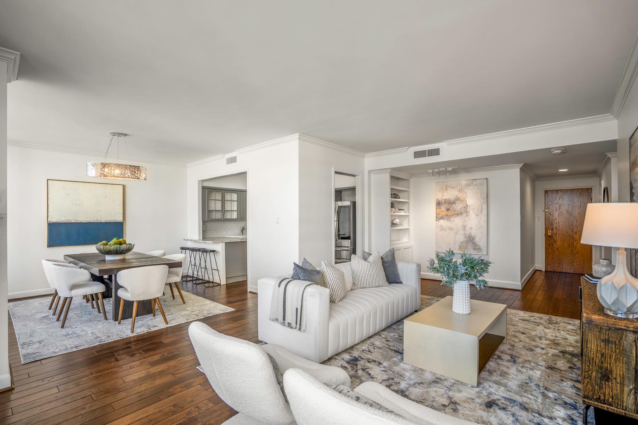 Elevated 12th-floor fully upgraded 2 Bedroom/2 Bath unit in the heart of the city. Offering open-concept living with abundant natural light and a private balcony showcasing skyline views. The kitchen features upgraded granite countertops, stainless appliances & gray cabinetry. Engineered hardwood floors, neutral color palette, smooth ceilings & custom solar shades enhance the refined interior. Breakfast bar and area with plenty of storage. The spacious primary suite includes an updated bath with oversized seamless glass shower, granite counters & modern fixtures, plus a custom designed walk in closet. Full-service high-rise living with 24-hour security, valet, porter service & beautiful pools. Prime location moments from River Oaks District, The Galleria, West U, Downtown & the Medical Center.
