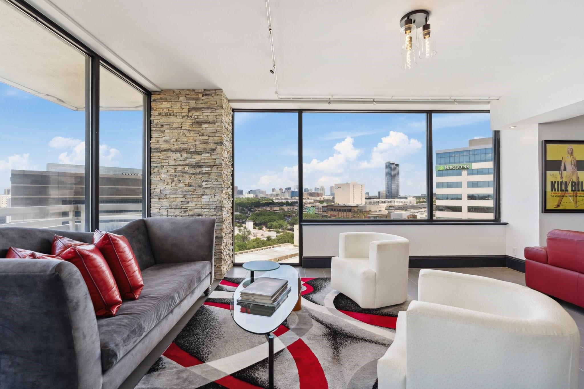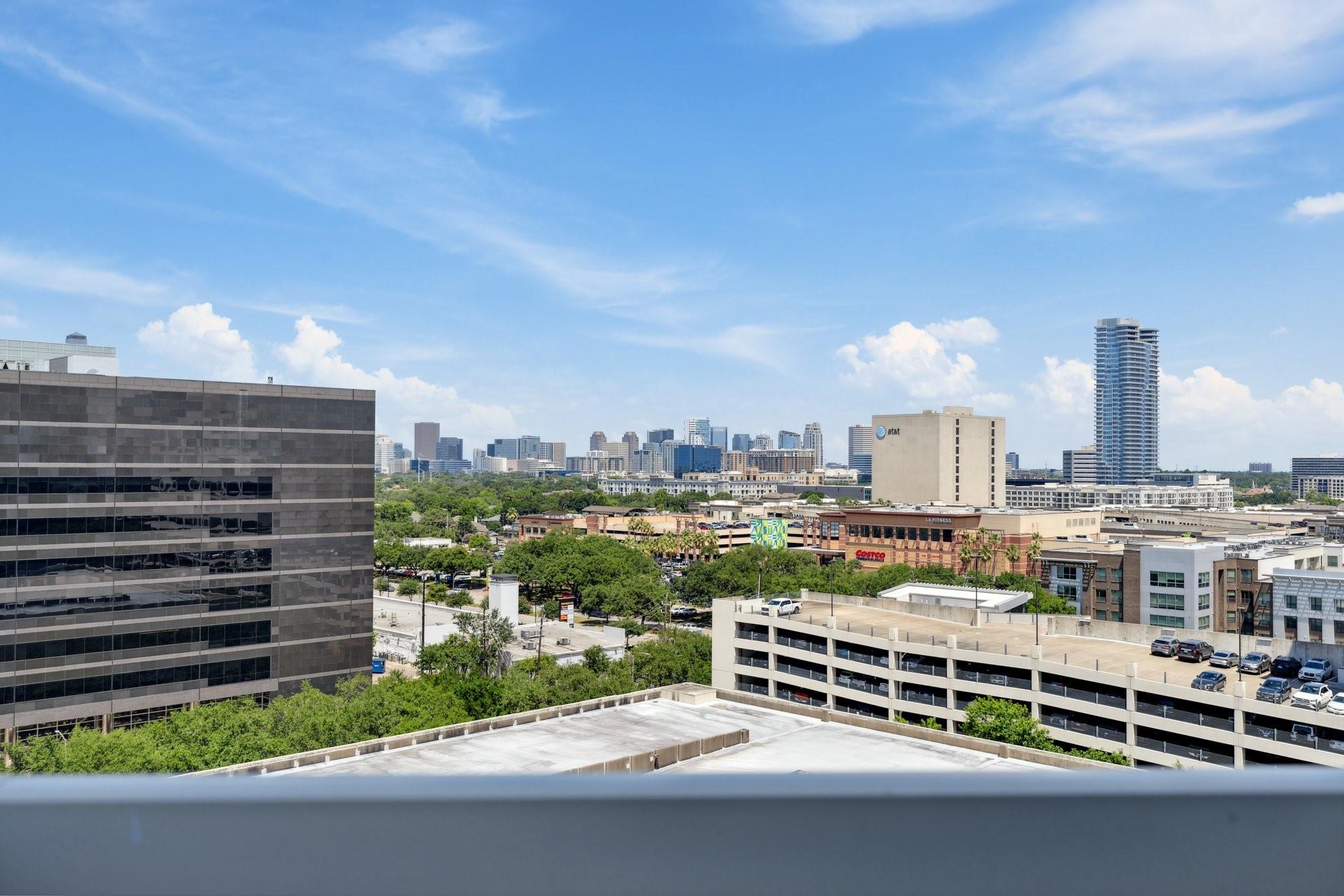 Sweeping city views and modern design at the Greenway. Spacious living areas flow into an open kitchen with granite counters, Italian tile flooring, stainless steel appliances and sleek lacquered cabinetry. Featuring 2 bedrooms and 2 baths, the large primary bedroom is ensuite with great custom fitted walk-in closet. Extended balcony runs the length of the living and dining room with fantastic 12th floor views. The Greenway is a full service high rise building with all the amenities living in the treetops should offer including a doorman, valet, porter, 24-hour security guard and heated pool. Excellent location with close proximity to world class shopping, dining, the Texas Medical Center, Galleria and Downtown. Quick access to 59 and just minutes to the loop!