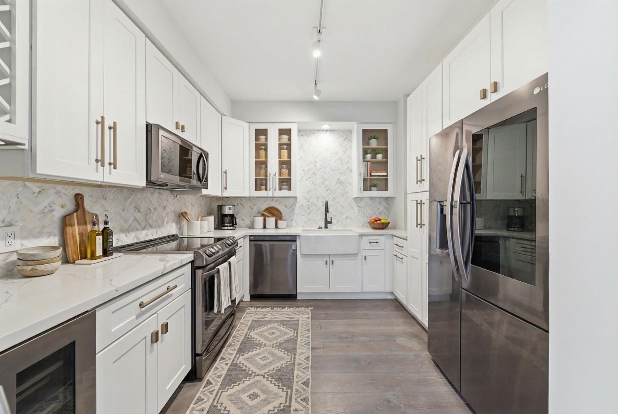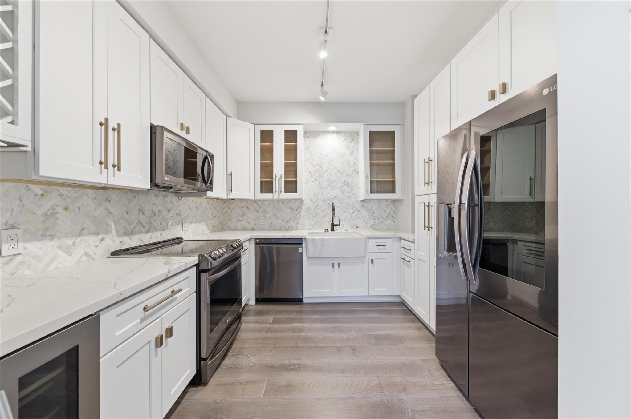 Step into effortless living in this beautifully 1-bedroom condo, perfectly positioned on the quiet 3rd floor with serene treetop and pool views from every room. The oversized primary bedroom provides incredible flexibility, ideal for a home office setup, along with a spacious walk-in closet and private ensuite bath. The kitchen is a true standout, featuring premium LG appliances, a wine refrigerator, a touchless Brizo faucet, under-cabinet lighting, and a well-designed pantry with pull-out drawers, perfect for both everyday living and entertaining. Enjoy easy indoor-outdoor flow with balcony access just off the dining area. Residents enjoy top-tier amenities including a heated pool, valet parking, and 24-hour concierge service. Ideally located with quick access to Hwy 59 and the 610 Loop, and just minutes from the Medical Center, Galleria, Museum District, and Downtown, plus a variety of popular dining spots within walking distance. This one checks all the boxes!