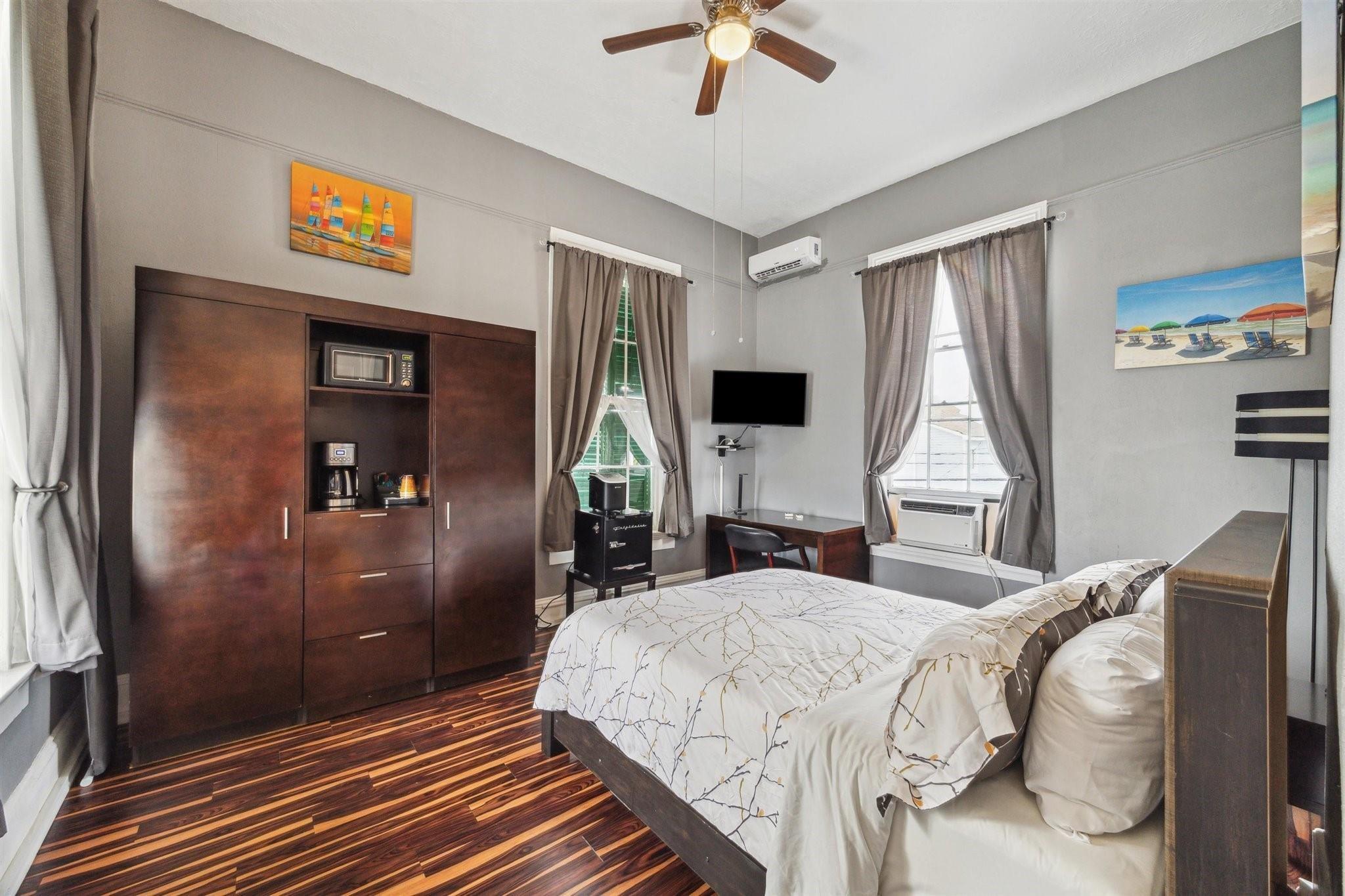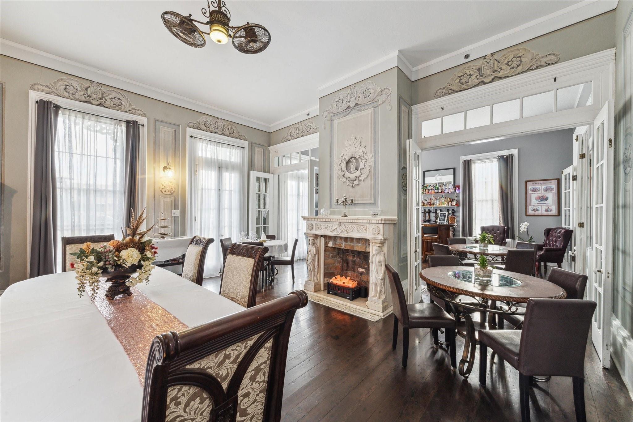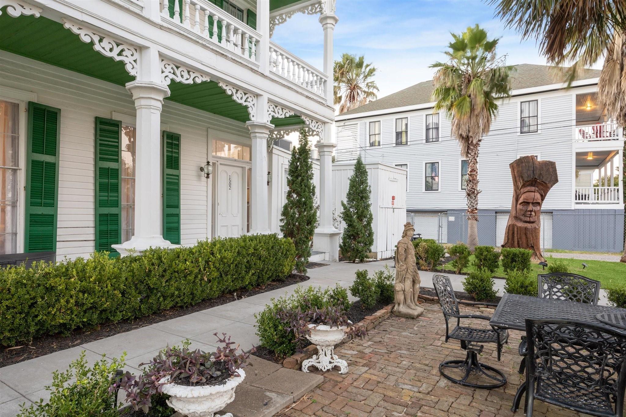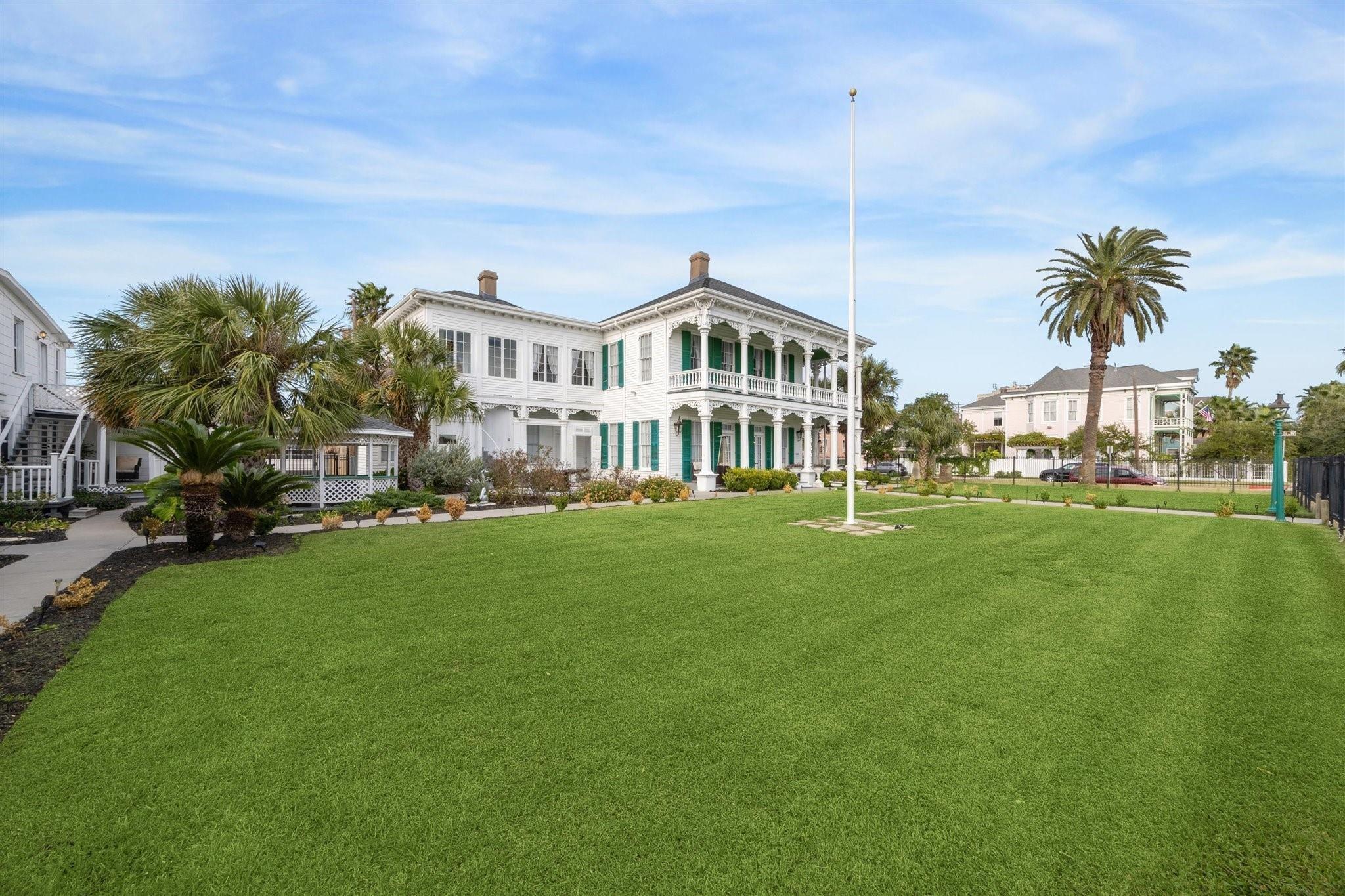 Perched on a prominent lot in Galveston’s historic district just blocks from the shoreline and downtown, George Manor offers a rare fusion of architectural history and modern hospitality on nearly half an acre at the corner of Market and 15th Streets. Extensively renovated in 2021 as an award-winning bed and breakfast, the property features a serene retreat just moments from Galveston’s best restaurants, art galleries, and coastal attractions. In total, the property includes 10 bedrooms, 9 full bathrooms, and 3 half baths - making it a standout investment, hospitality venue, or multi-use residence. This corner-lot compound is within easy reach of restaurants, galleries, and coastal attractions, while offering a serene retreat tucked behind its gates.