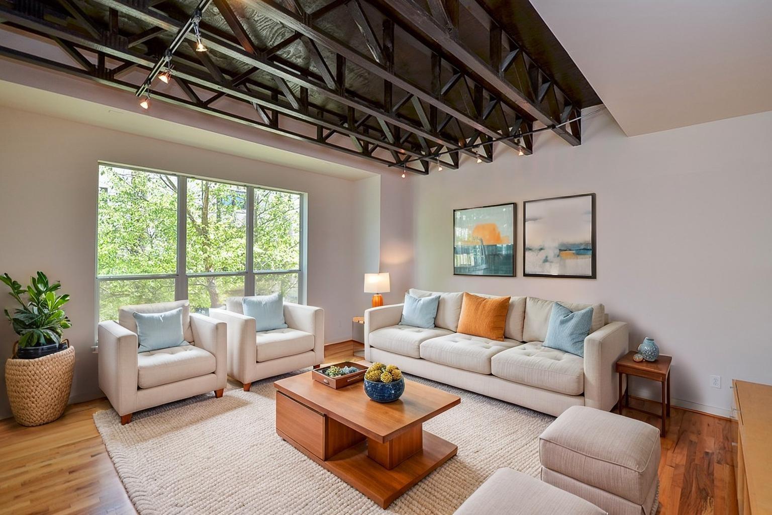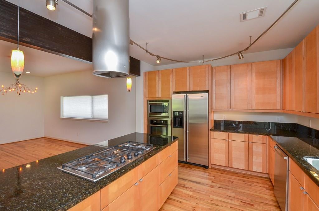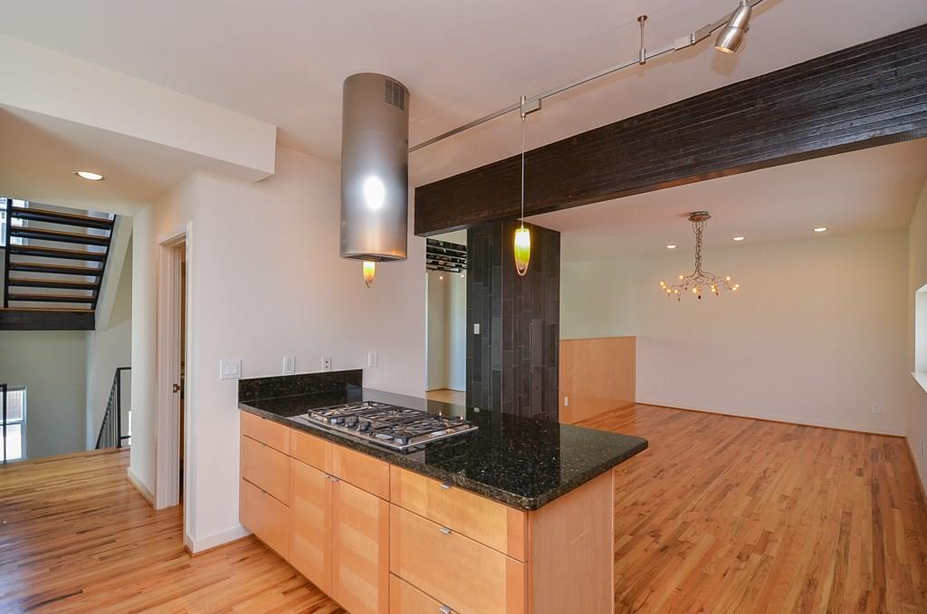 Contemporary end unit townhome just blocks to newly redesigned Memorial Park, Washington Ave & convenient to I-10 & 610 Loop! Warm modern finishes, concrete & wood floors (NO CARPET), planked slate gas log fireplace, exposed stained trusses & beams, high ceilings, open living spaces, wood floors, kitchen w/granite counters, SS appliances, gas cooktop & vent hood, primary suite w/custom cabinetry in dressing area, walk-in closet, slate & mosaic baths throughout, tub & open shower, custom metal & wood stairs, landing w/wood floors on 4th level, Roof deck.