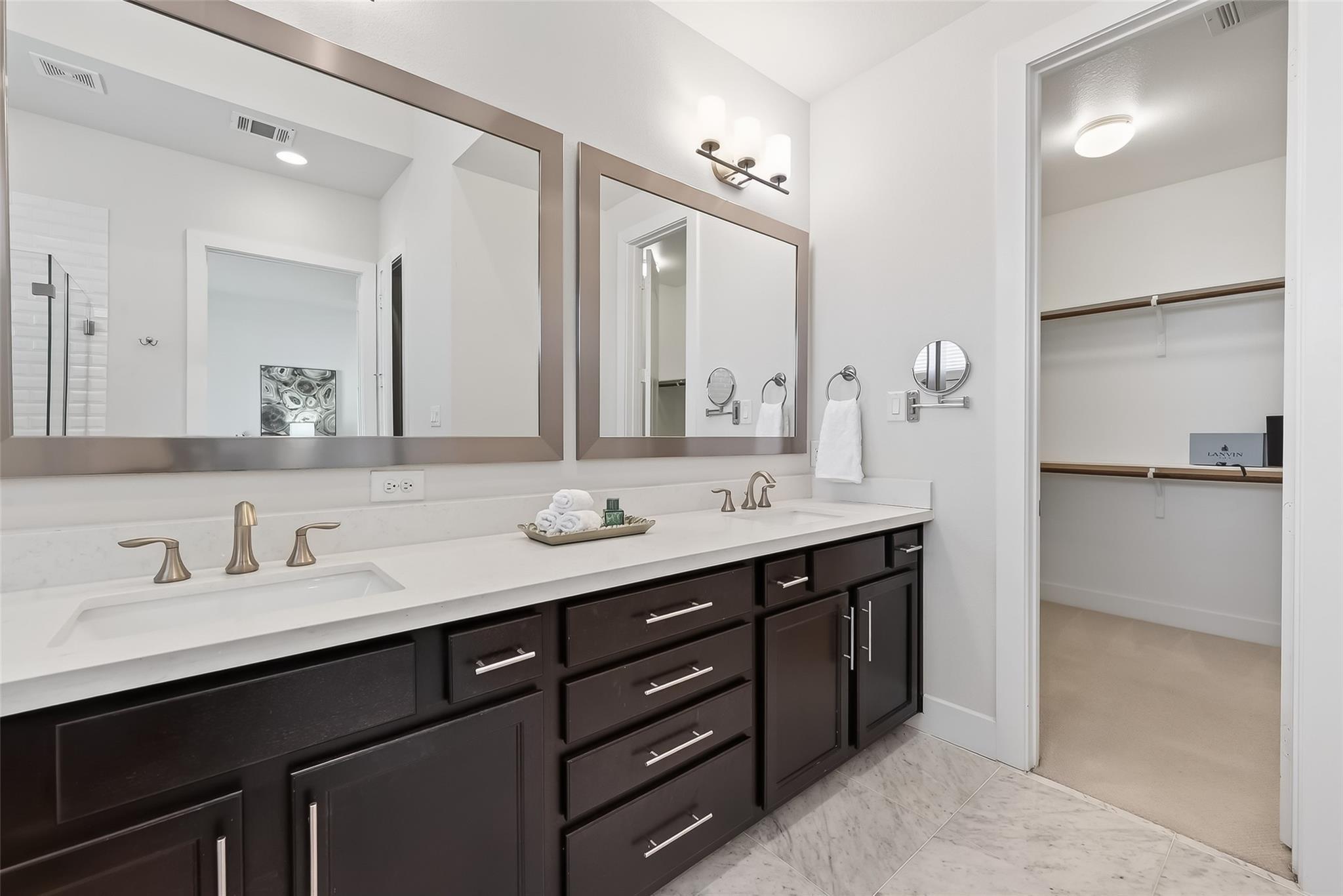 /monthBeautiful recent construction home on a quiet street in Shady Acres with ample parking. This well-maintained 3 bed, 3.5 bath home features en-suite baths for every bedroom, including a first-floor suite ideal for guests or an office. The second floor offers soaring 18+ ft ceilings, abundant natural light, and open-concept living. The dining area flows into a stylish kitchen with quartz countertops, stainless steel appliances, and gas range. Enjoy a covered balcony for grilling or relaxing. The spacious primary suite includes vaulted ceilings, double sinks, soaking tub, separate shower, and a large walk-in closet. Hardwood floors, smart home system, gated entry, and extra guest parking. Excellent walkable location in the Heights, minutes from restaurants, bars, and HEB.