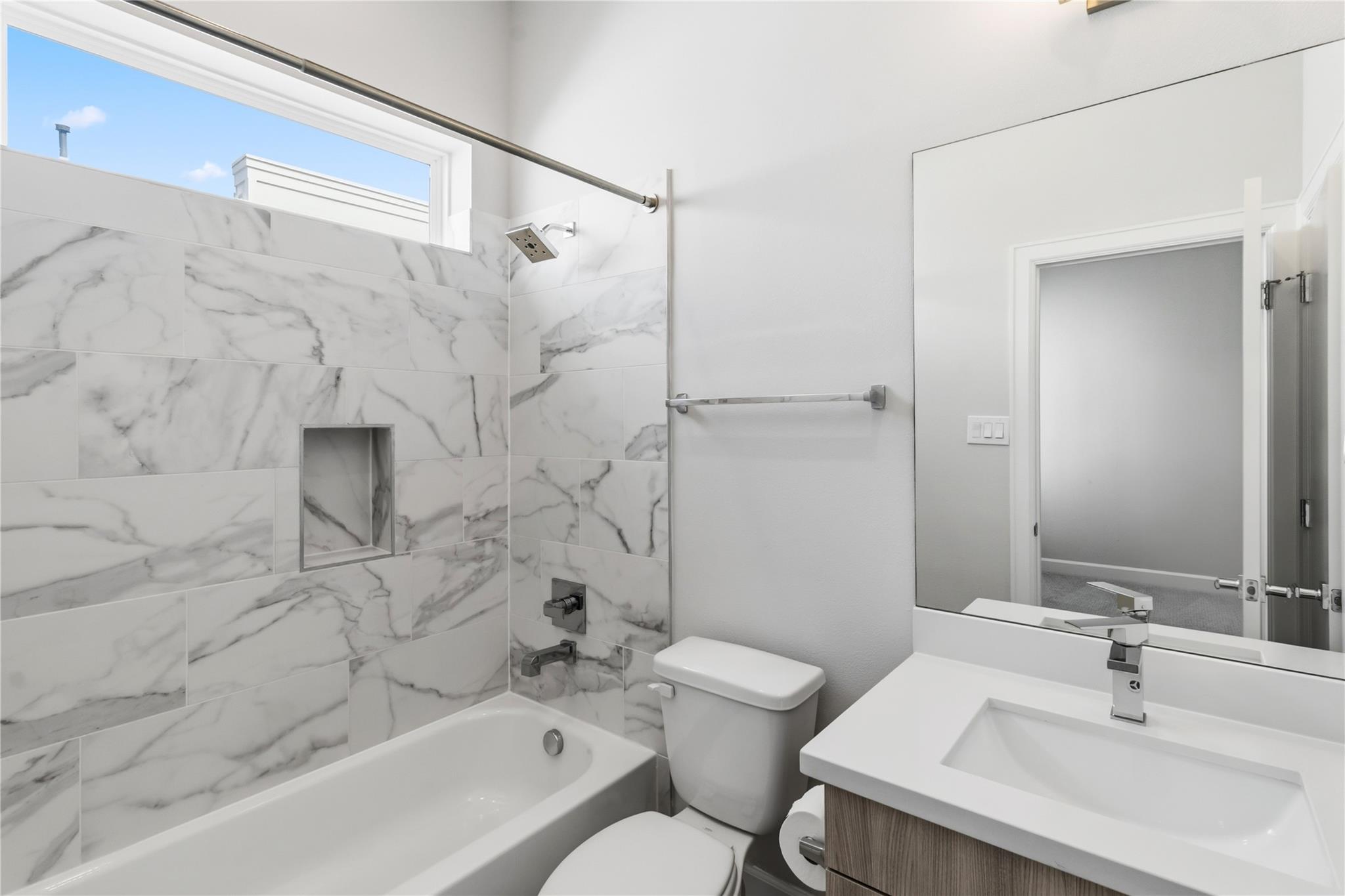 /monthWelcome home to this elegant 3-bedroom, 3.5-bathroom townhome conveniently located in the heart of Midtown Houston which offers the perfect blend of modern design and convenience. Just steps from Elizabeth Baldwin Park and the Light Rail Red Line, this home offers effortless access to the Medical Center, Downtown, and major highways like 288 and 59. Inside, you’ll find modern designed finishes, tall ceilings, and spacious bedrooms, each with walk-in closets. The primary suite features a spa-like ensuite with a freestanding tub and walk-in shower. Enjoy the convenience of a first-floor guest bedroom/office space with ensuite bathroom, a chef-inspired kitchen with a gas range and beverage fridge, and outdoor living with an exterior balcony and fenced-in front yard. This gated community also provides a two-car garage and guest parking. Experience luxury and convenience in the heart of Midtown—this home has it all!