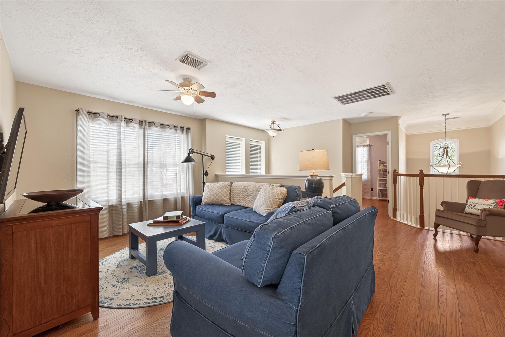 InteriorFireplace:1/Gaslog FireplaceFloors:Carpet,Engineered Wood,TileCountertop:GraniteBedroom Desc:En-Suite Bath,Primary Bed - 1st Floor,Walk-In ClosetKitchen Desc:Breakfast Bar,Island w/o Cooktop,Kitchen open to Family Room,PantryRoom Description:Den,Entry,Formal Dining,Formal Living,Home Office/Study,Living Area - 1st Floor,Living Area - 2nd Floor,Utility Room in HouseHeating:Central GasCooling:Central ElectricConnections:Washer ConnectionsDishwasher:YesDisposal:YesMicrowave:YesRange:Gas CooktopOven:Electric OvenEnergy Feature:Ceiling Fans,Generator,HVAC>13 SEER,Insulated/Low-E windowsInterior:Formal Entry/Foyer,High Ceiling