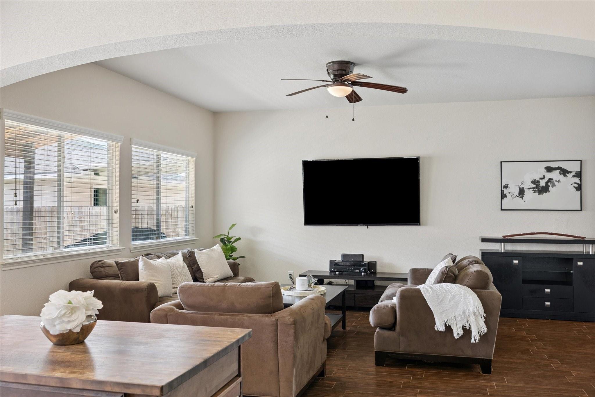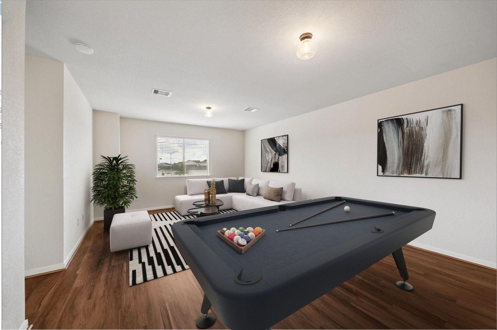 Beautifully updated 2-story home featuring 4 bedrooms and 2.5 baths. Enjoy fresh interior paint, new laminate wood flooring throughout, and a roof less than a year old. The spacious open-concept living and dining areas offer great natural light and flow seamlessly into the kitchen, complete with pantry, island storage, and gas range. The primary bedroom is conveniently located on the first floor with an en-suite bath, while all secondary bedrooms and a large game room are upstairs. Relax outdoors on the covered back porch overlooking the spacious backyard. Ideally situated near major routes to the Medical Center and Downtown, with easy access to Highway 288. Close to Pearland’s retail centers, dining and shopping options.