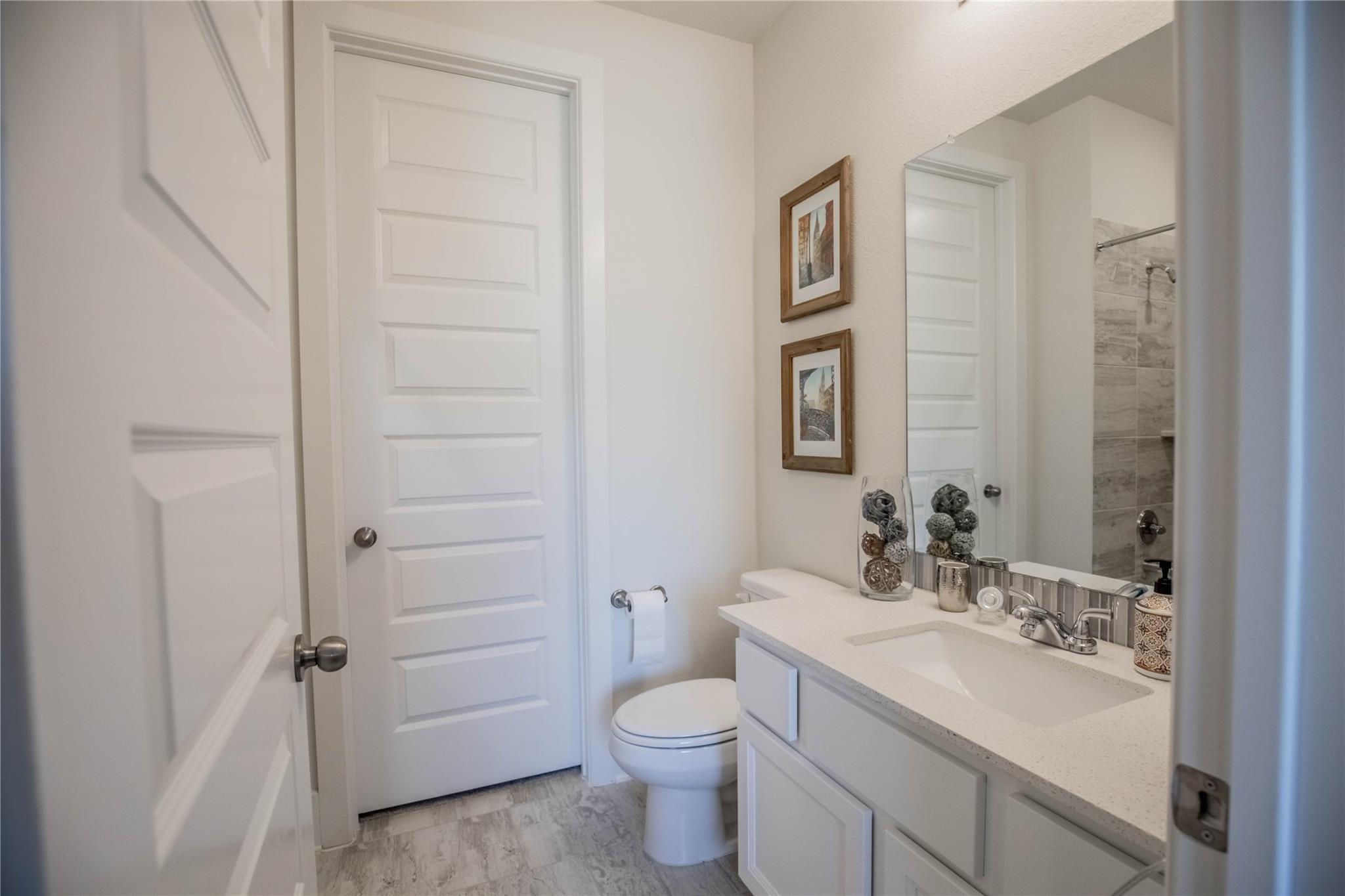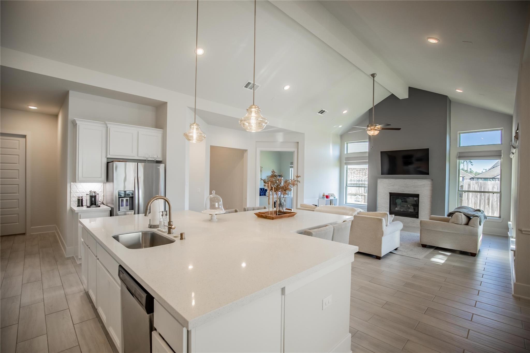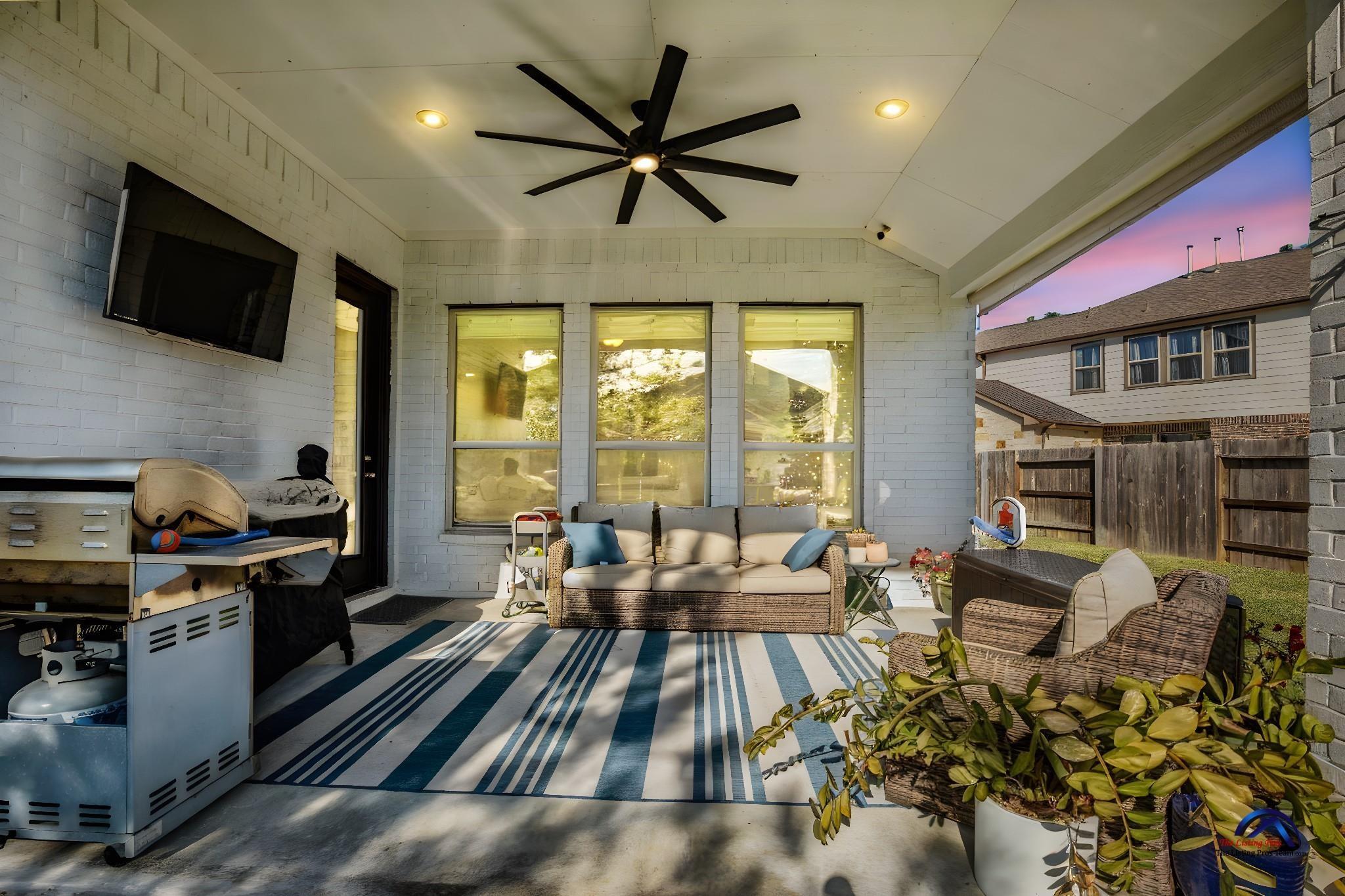 Stunning 4-bedroom, 3.5-bath home with study, built in 2021 and gently lived in! This spacious home features a 3-car garage, 8-ft entry and interior doors, high tray ceilings, wide baseboards, and upgraded Shaw tile throughout. The open-concept kitchen is a chef’s dream with quartz countertops, stainless steel appliances, Kentmoore cabinetry, and an oversized island perfect for entertaining. The luxurious primary suite includes a soaking tub, a huge walk-in shower, and dual vanities. Enjoy custom cordless fabric shades throughout and abundant natural light. Step outside to a massive backyard ready for a pool, plus a large covered patio for outdoor living. Located minutes from shopping, dining, and medical centers, with quick access to I-45 and I-59. Just 15 minutes to The Woodlands—this one is a must-see!