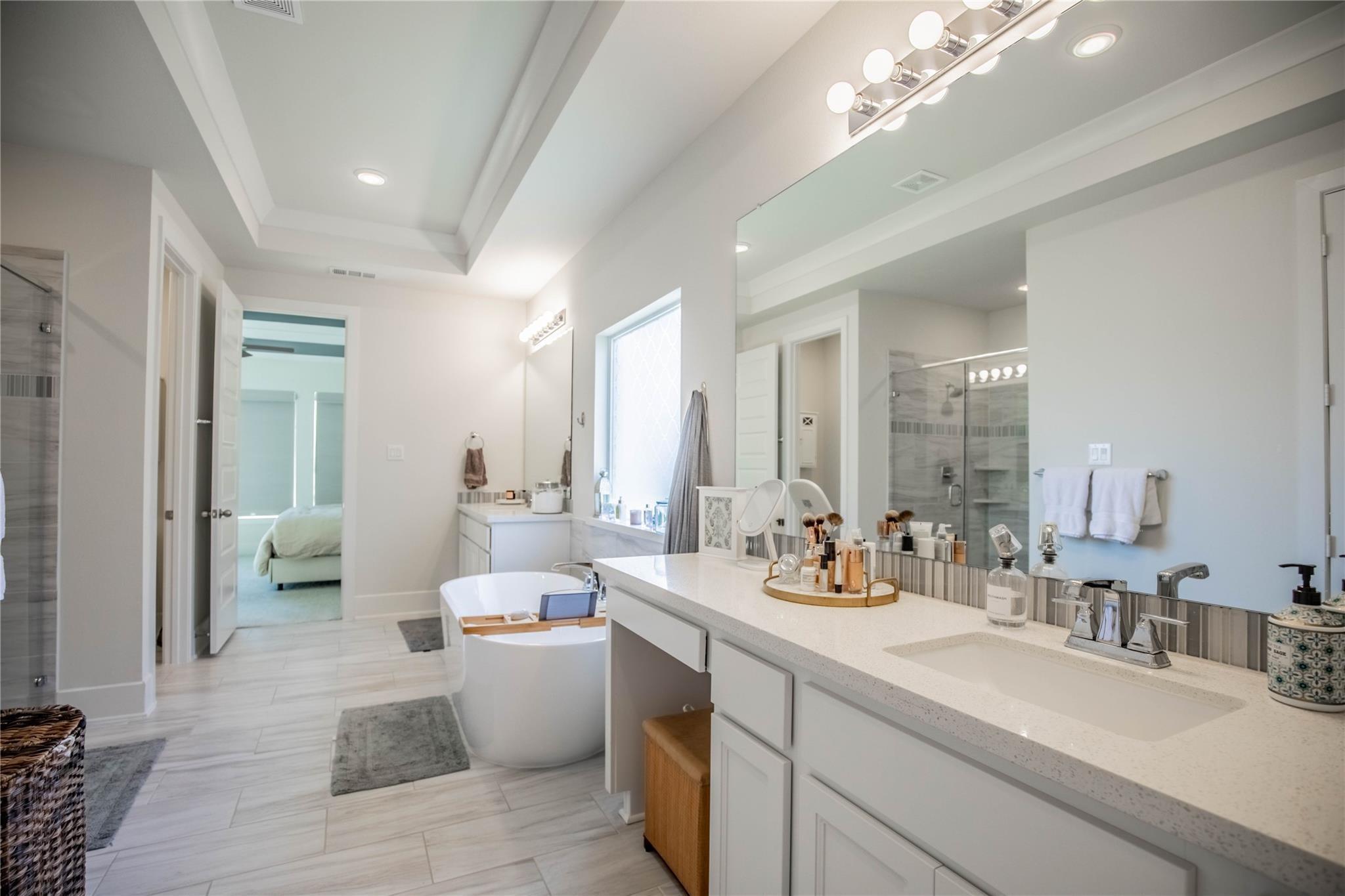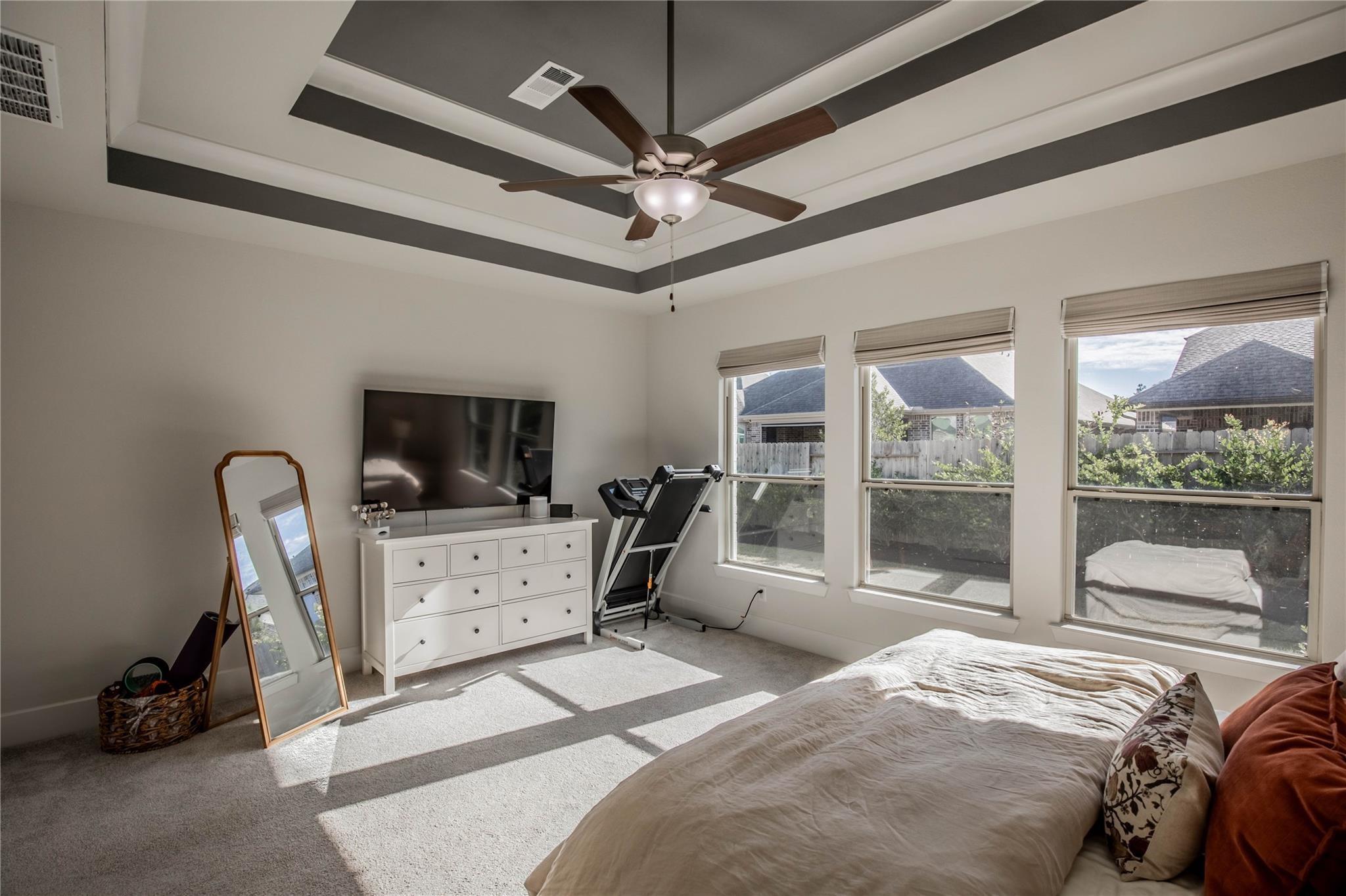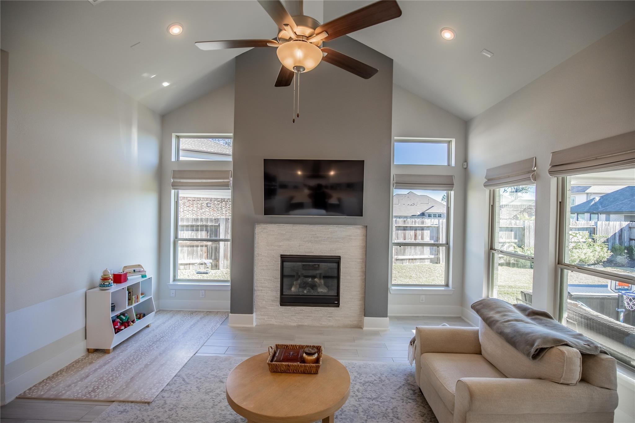 Stunning 4-bedroom, 3.5-bath home with study, built in 2021 and gently lived in! This spacious home features a 3-car garage, 8-ft entry and interior doors, high tray ceilings, wide baseboards, and upgraded Shaw tile throughout. The open-concept kitchen is a chef’s dream with quartz countertops, stainless steel appliances, Kentmoore cabinetry, and an oversized island perfect for entertaining. The luxurious primary suite includes a soaking tub, a huge walk-in shower, and dual vanities. Enjoy custom cordless fabric shades throughout and abundant natural light. Step outside to a massive backyard ready for a pool, plus a large covered patio for outdoor living. Located minutes from shopping, dining, and medical centers, with quick access to I-45 and I-59. Just 15 minutes to The Woodlands—this one is a must-see!