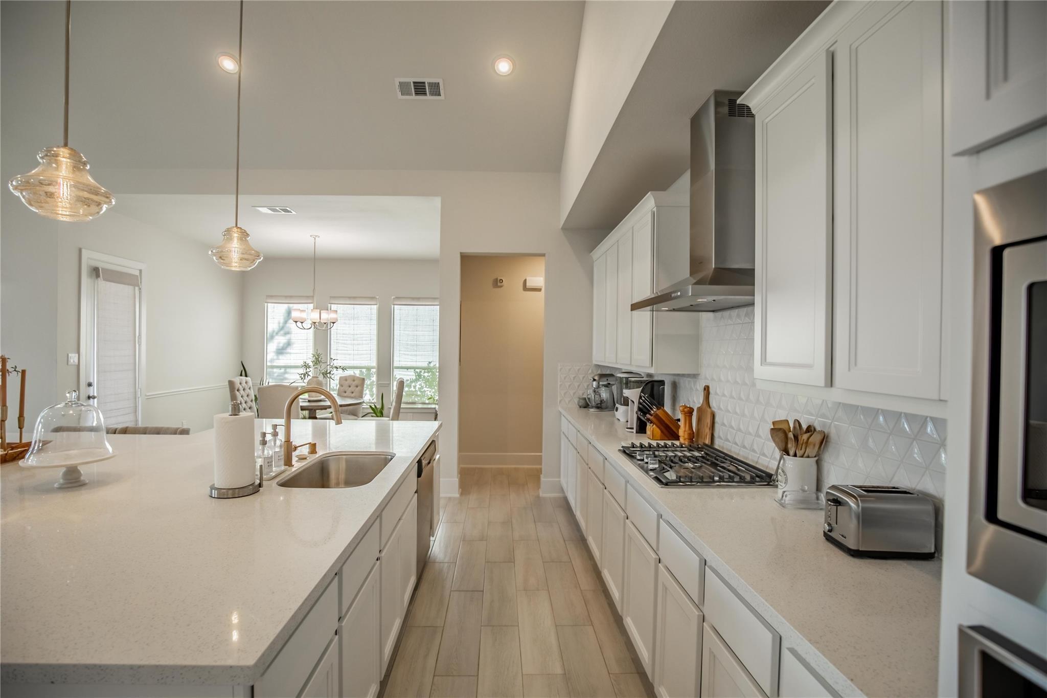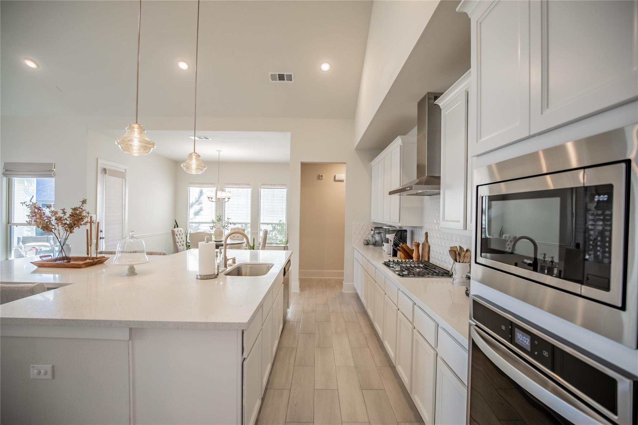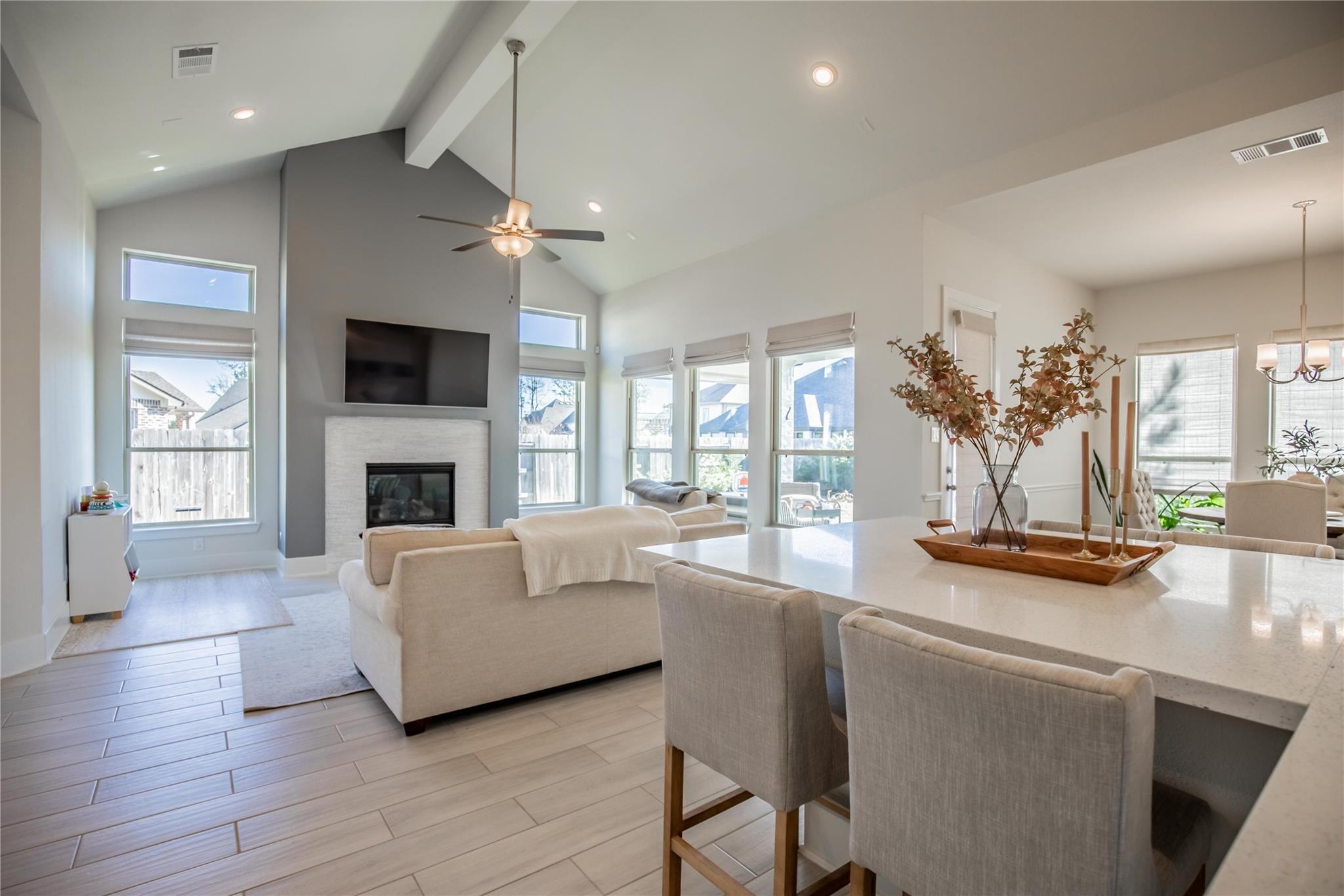 InteriorFireplace:1/Gaslog FireplaceFloors:Carpet,TileCountertop:QuartzBathroom Description:Full Secondary Bathroom Down,Primary Bath: Double Sinks,Primary Bath: Separate Shower,Primary Bath: Soaking Tub,Secondary Bath(s): Tub/Shower ComboBedroom Desc:All Bedrooms Down,Primary Bed - 1st FloorKitchen Desc:Breakfast Bar,Butler Pantry,Island w/o Cooktop,Kitchen open to Family Room,Pantry,Walk-in PantryRoom Description:Butlers Pantry,Den,Family Room,Guest Suite,Home Office/Study,Kitchen/Dining Combo,Utility Room in HouseHeating:Central GasCooling:Central ElectricConnections:Electric Dryer Connections,Gas Dryer Connections,Washer ConnectionsDishwasher:YesDisposal:YesMicrowave:YesRange:Gas CooktopOven:Electric OvenEnergy Feature:Attic Vents,Ceiling Fans,Digital Program Thermostat,High-Efficiency HVAC,HVAC>13 SEER,Insulated/Low-E windows,Insulation - Batt,Insulation - Blown Fiberglass,Radiant Attic BarrierInterior:Alarm System - Owned,Fire/Smoke Alarm,High Ceiling,Window Coverings