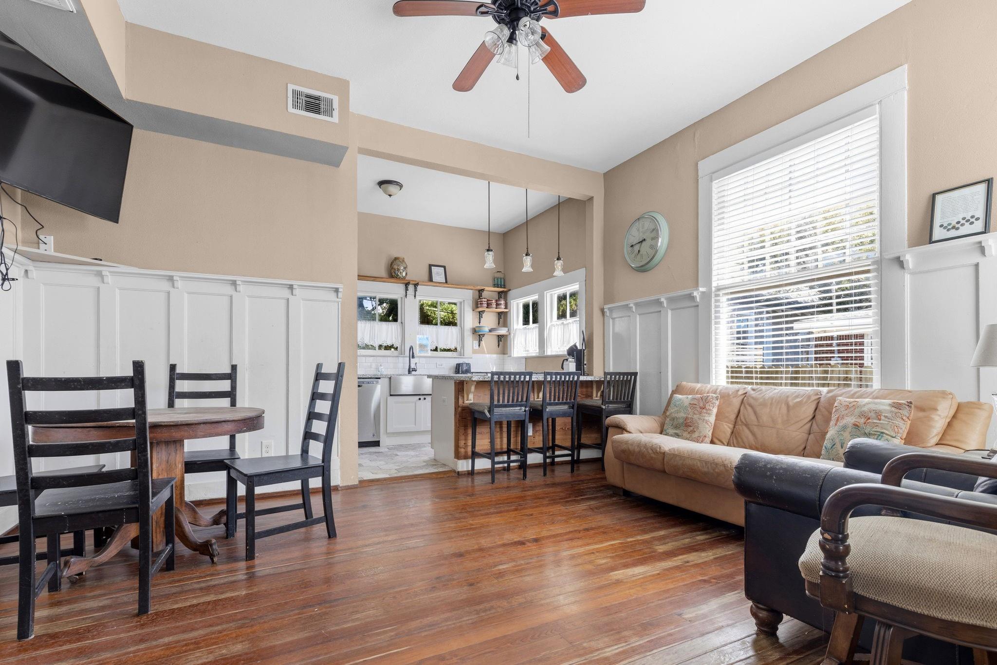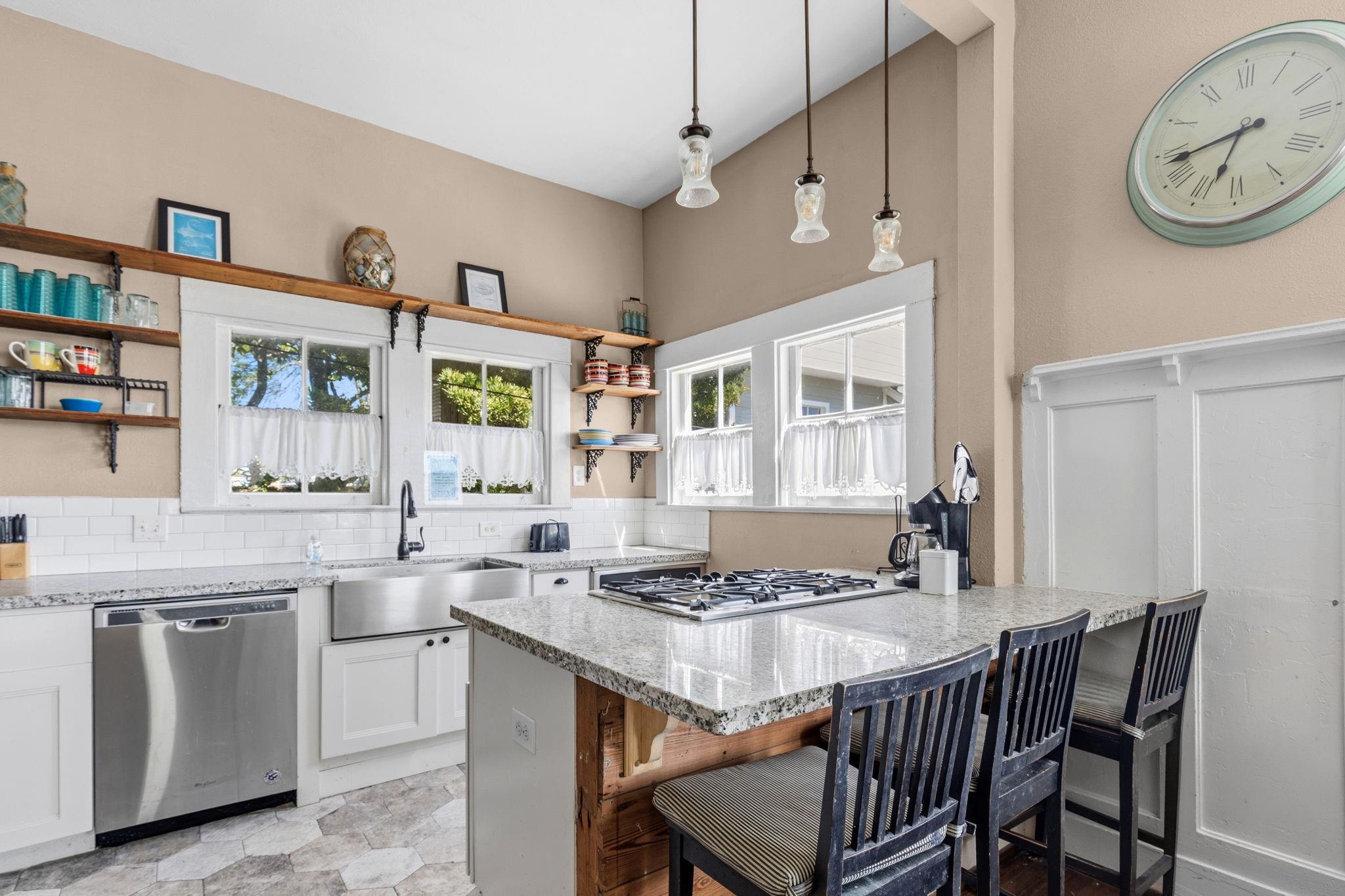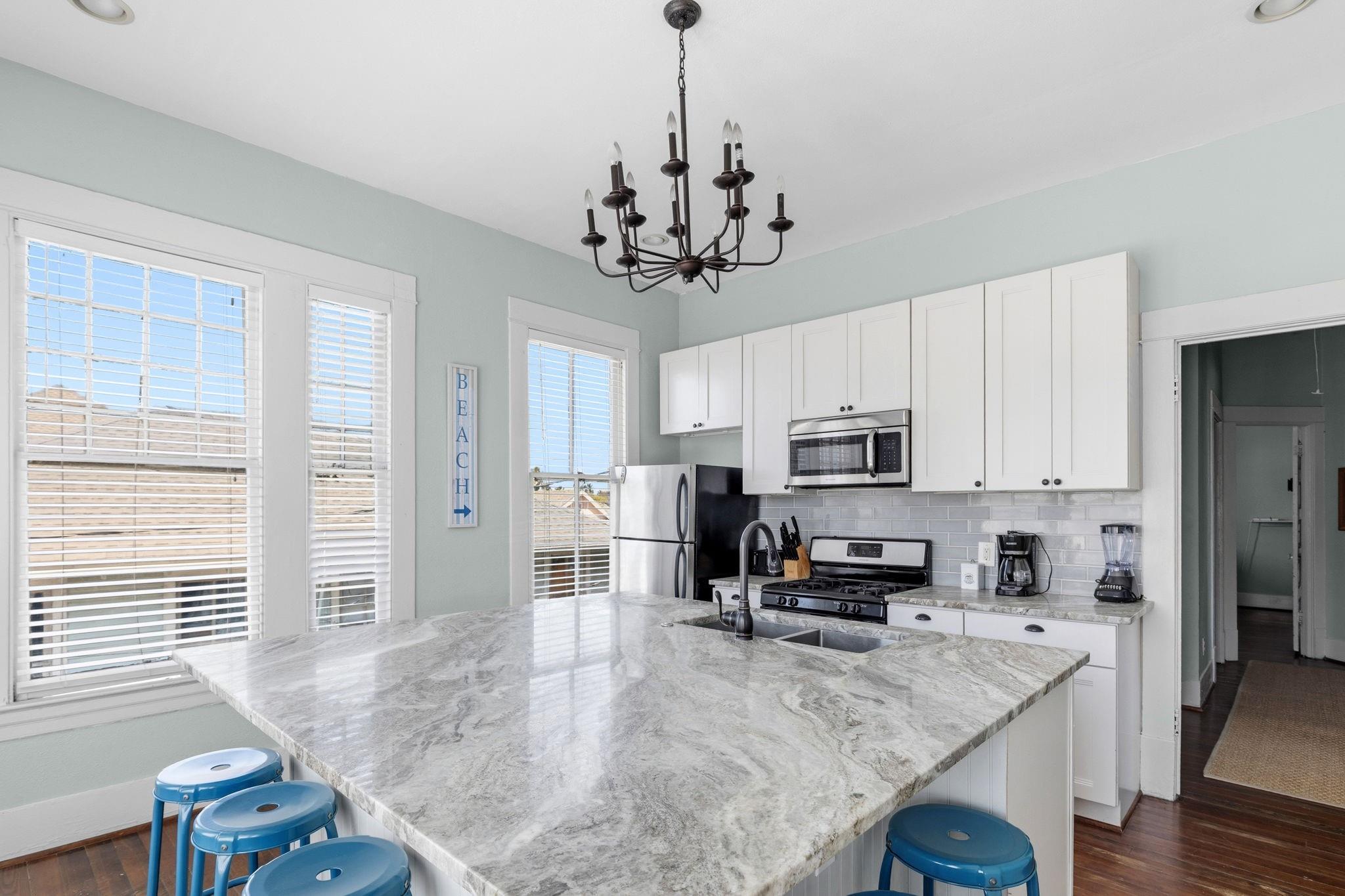 Just one block from the beach, this flexible coastal property offers water views, income potential, and endless possibilities. Previously used as a successful Airbnb, the home is set up as two separate units, making it ideal for a vacation rental, investment, or personal getaway. The upstairs features a spacious 3-bedroom, 2-bath layout that comfortably sleeps up to 8, while the downstairs offers a 2-bedroom, 2-bath unit accommodating up to 5. Live in one unit and rent the other, or maximize income by leasing both. Enjoy easy access to nearby amenities, beach days just steps away, and the opportunity to make this property your own. Sold as-is, with potential for cosmetic updates.