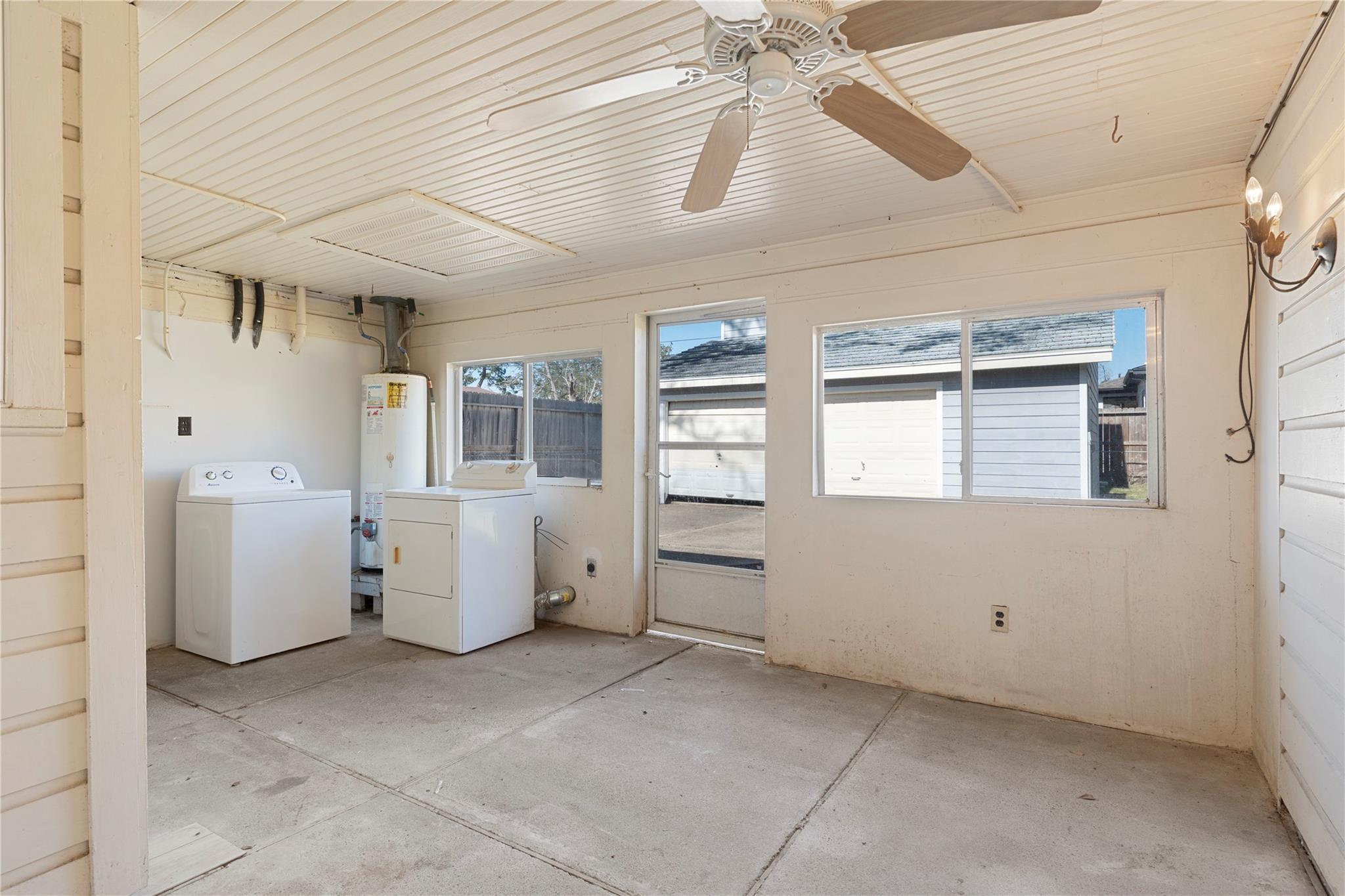 ExteriorRoof:MetalFoundation:SlabPrivate Pool:NoExterior Type:AluminumLot Description:Subdivision LotGarage Carport:Auto Garage Door OpenerCarport Description:Attached CarportWater Sewer:Public Sewer,Public WaterFront Door Face:SouthExterior:Covered Patio/Deck,Detached Gar Apt /Quarters,Exterior Gas Connection,Partially Fenced,Workshop