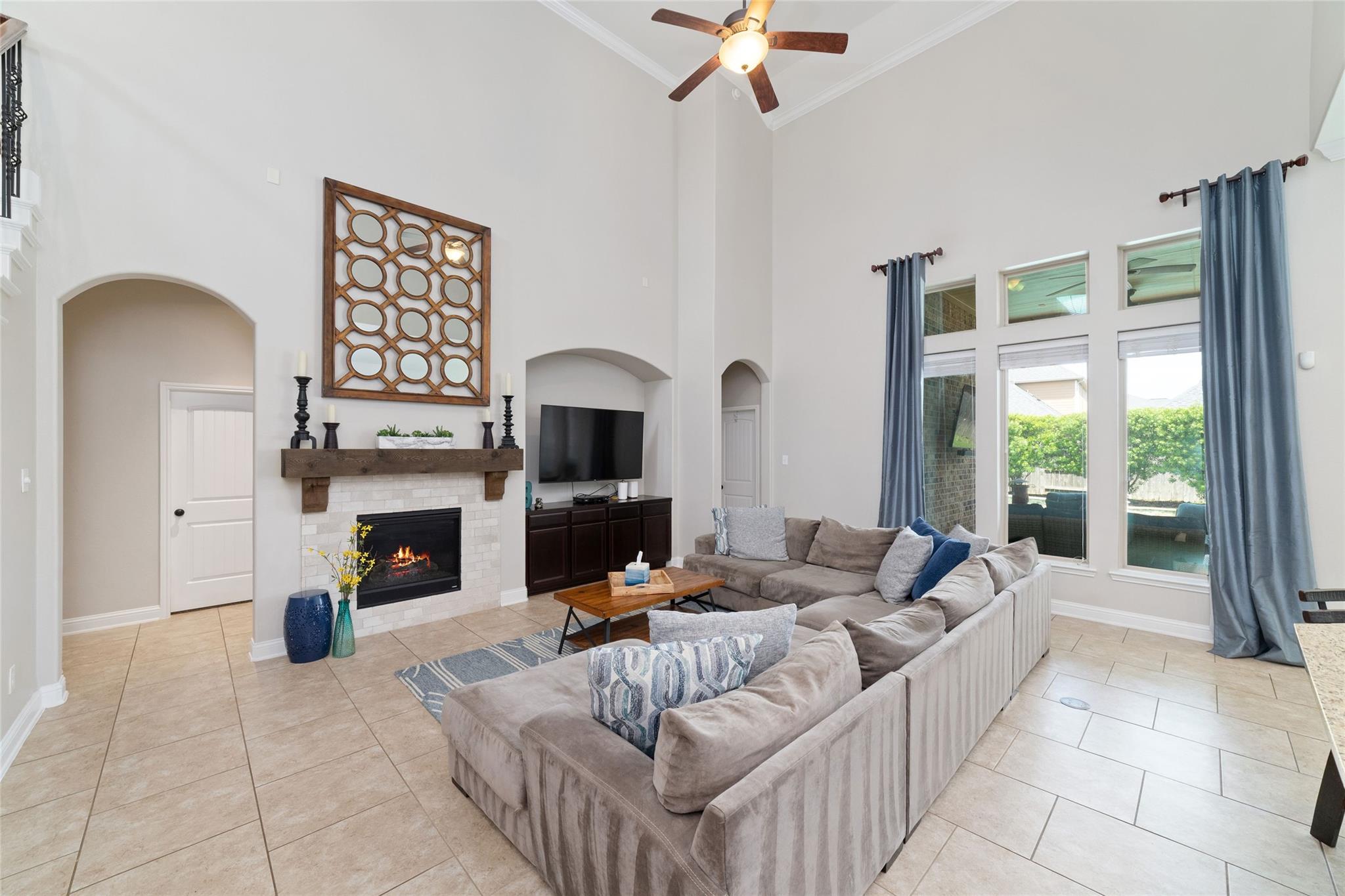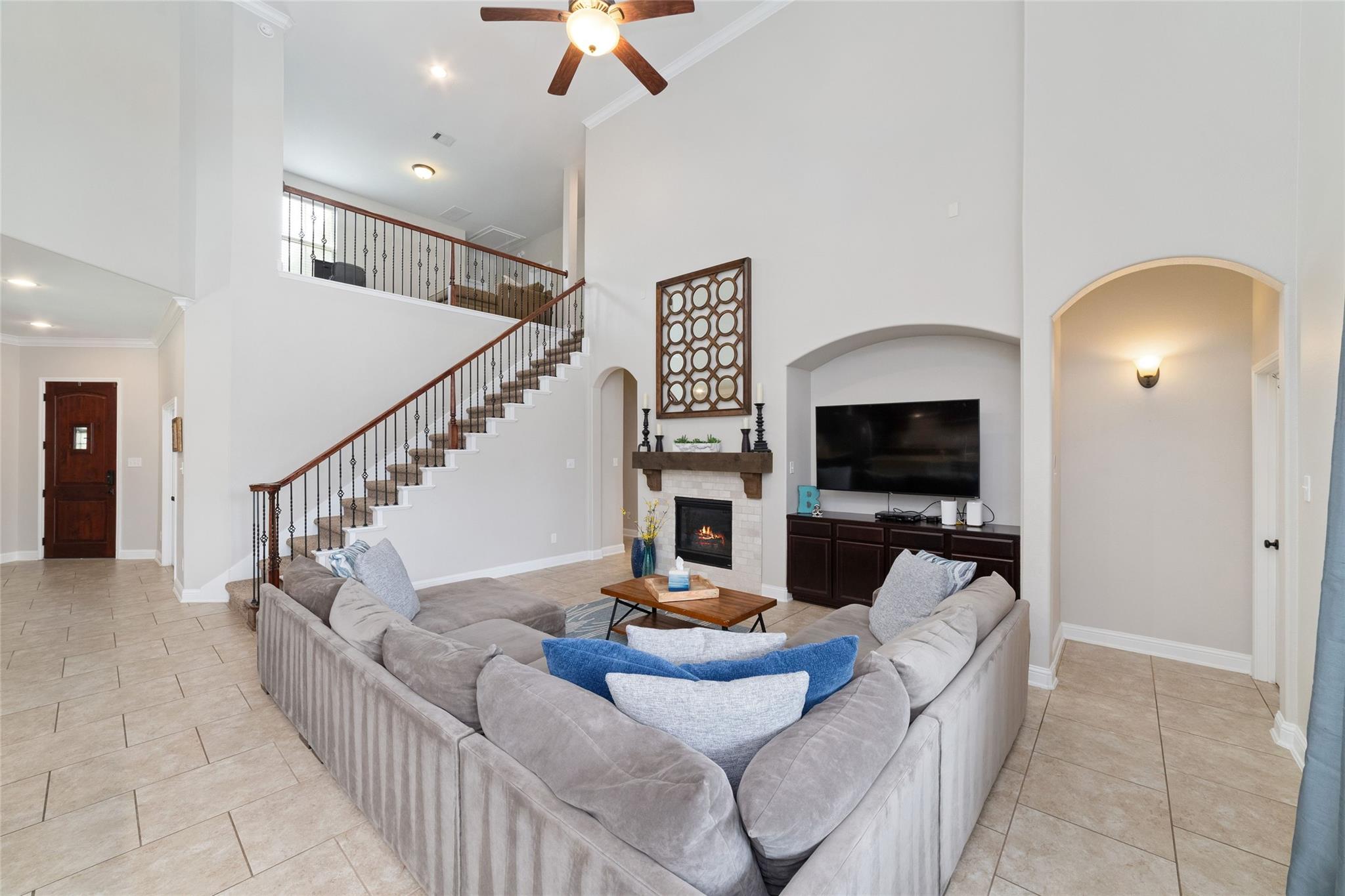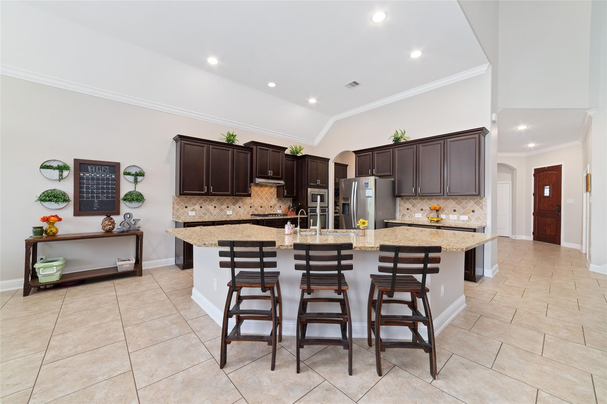 InteriorFireplace:1/Gaslog FireplaceFloors:Carpet,TileCountertop:graniteBathroom Description:Full Secondary Bathroom Down,Half Bath,Primary Bath: Double Sinks,Primary Bath: Separate Shower,Primary Bath: Soaking Tub,Secondary Bath(s): Double SinksBedroom Desc:2 Bedrooms Down,Primary Bed - 1st Floor,Walk-In ClosetKitchen Desc:Breakfast Bar,Butler Pantry,Kitchen open to Family Room,Pots/Pans Drawers,Walk-in PantryRoom Description:Butlers Pantry,Family Room,Formal Dining,Gameroom Up,Home Office/Study,Living Area - 1st Floor,Utility Room in HouseHeating:Central GasCooling:Central ElectricConnections:Electric Dryer Connections,Washer ConnectionsDishwasher:YesDisposal:YesMicrowave:YesRange:Gas CooktopOven:Electric OvenEnergy Feature:Attic Vents,Ceiling Fans,Digital Program Thermostat,Insulation - Spray-Foam,North/South ExposureInterior:Alarm System - Owned,Crown Molding,Fire/Smoke Alarm,High Ceiling,Water Softener - Owned,Window Coverings,Wired for Sound