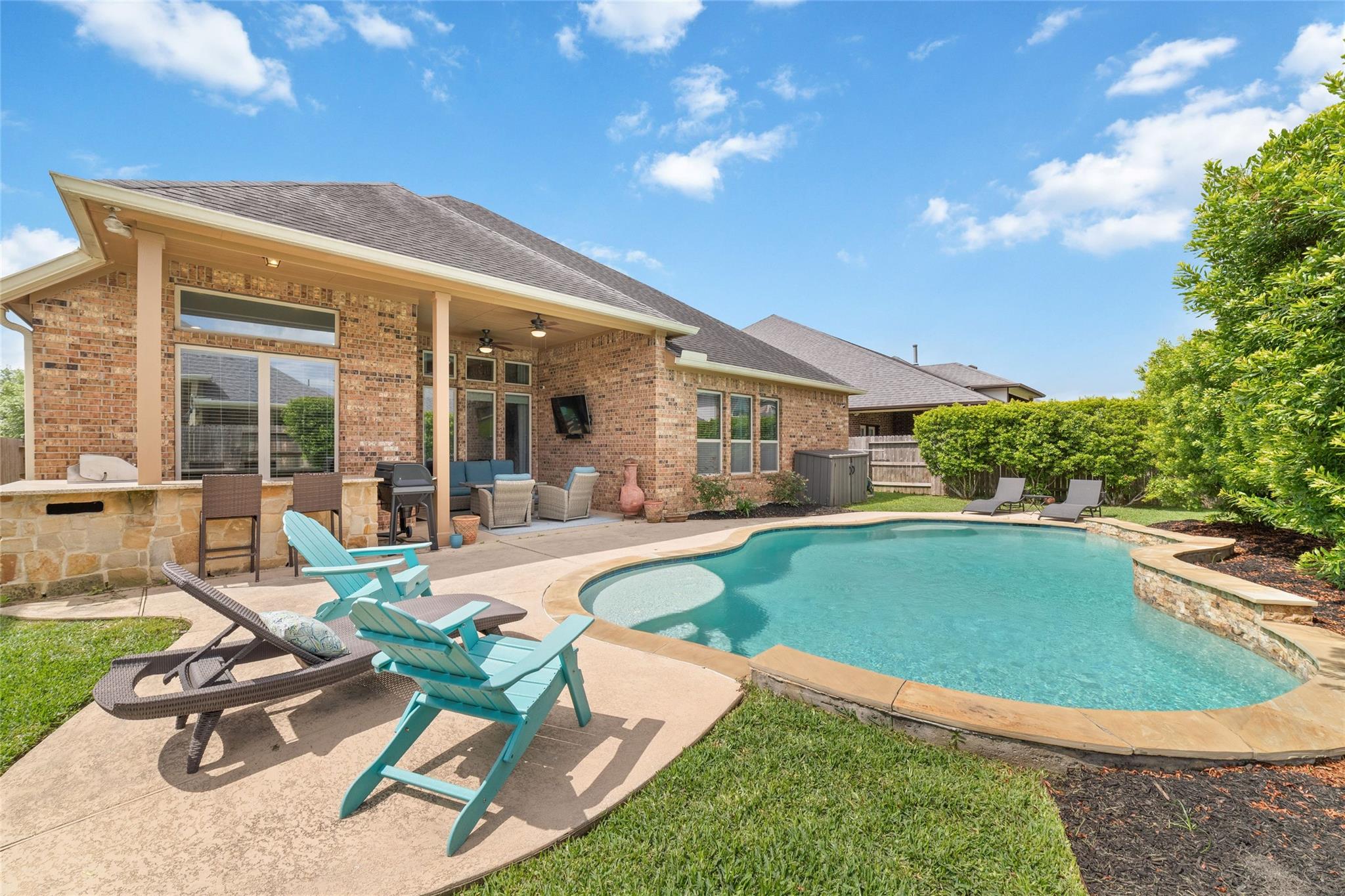 Welcome to resort-style living at 15214 Foxwood Arbor Ln.! This remarkable home offers the ultimate indoor-outdoor experience. Step into your private backyard oasis featuring a sparkling pool for endless summer fun and a fully equipped outdoor kitchen. Inside, discover a thoughtfully designed floor plan with 4 bedrooms and 3.5 bathrooms, media room and game room providing ample space for comfortable living. Recent updates include A/C system and water heater, offering peace of mind and energy efficiency. Enjoy the added luxury of a whole-home water softener. Situated on a lot on a cul-de-sac street in the desirable Hayden Lakes community, this home provides a wonderful setting for creating lasting memories. The neighborhood offers a welcoming atmosphere and convenient access to local amenities and Tomball schools. Don't miss the opportunity to make this exceptional property your new home. Schedule your private showing today to experience the best of Hayden Lakes living!