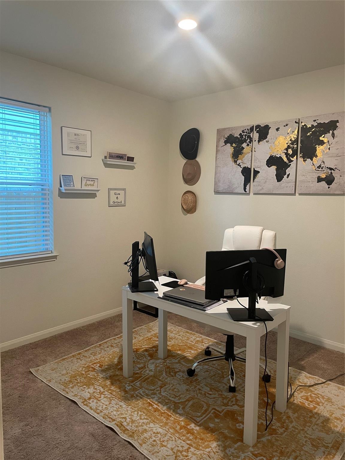 InteriorFloors:Carpet,Vinyl PlankCountertop:Calacatta QuartzBedroom Desc:All Bedrooms DownRoom Description:Living Area - 1st Floor,Utility Room in HouseHeating:Central ElectricCooling:Central ElectricConnections:Electric Dryer Connections,Washer ConnectionsDishwasher:YesCompactor:NoMicrowave:YesRange:Electric CooktopOven:Electric OvenIce Maker:NoEnergy Feature:Attic Vents,Ceiling Fans,Digital Program Thermostat,Energy Star Appliances,Insulation - Batt,Insulation - Blown Fiberglass,Radiant Attic BarrierInterior:Dryer Included,Fire/Smoke Alarm,High Ceiling,Refrigerator Included,Washer Included