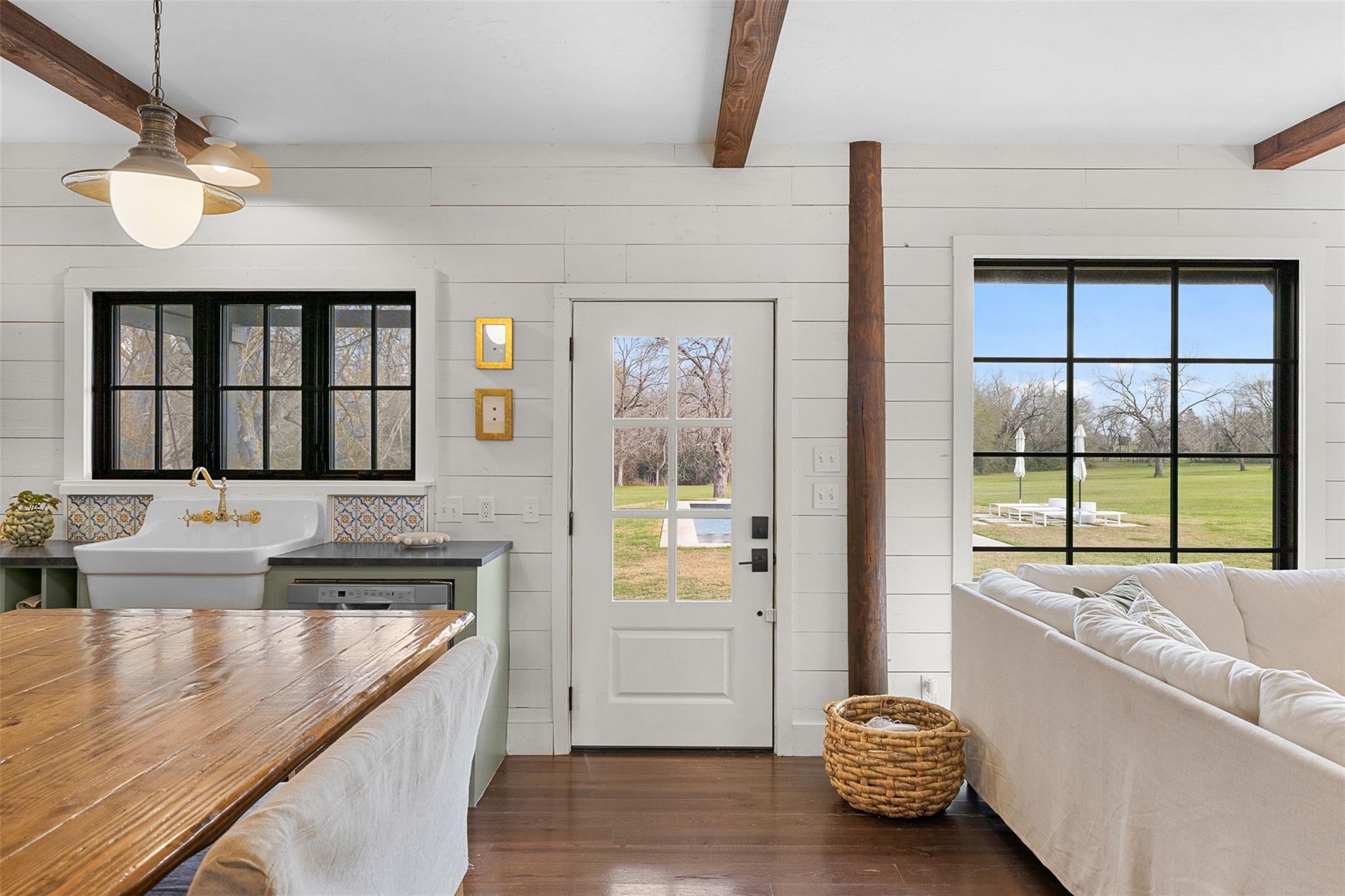 Escape to peaceful country living on this serene 31.5 acre property, where peace and tranquility greet you the moment you pass through the gate and just 7 miles from Bellville’s charming town square. The main home features 3 BR/2 BA and has been pristinely remodeled and updated with a new roof, HVAC, windows and doors throughout, new siding and designer finishes. Step outside and take in breathtaking Texas views and enjoy the stunning new pool with hot tub, surrounded by serene landscaping and a fire pit area—perfect for entertaining year-round. Kids will love exploring and playing in the creek, while guests can enjoy their own private retreat in the 1/1 guest house. An agricultural exemption is currently in place, offering the benefit of low property taxes. From breathtaking sunrises to unforgettable sunsets, every moment here is something special. This is truly a dream property you won't want to miss!