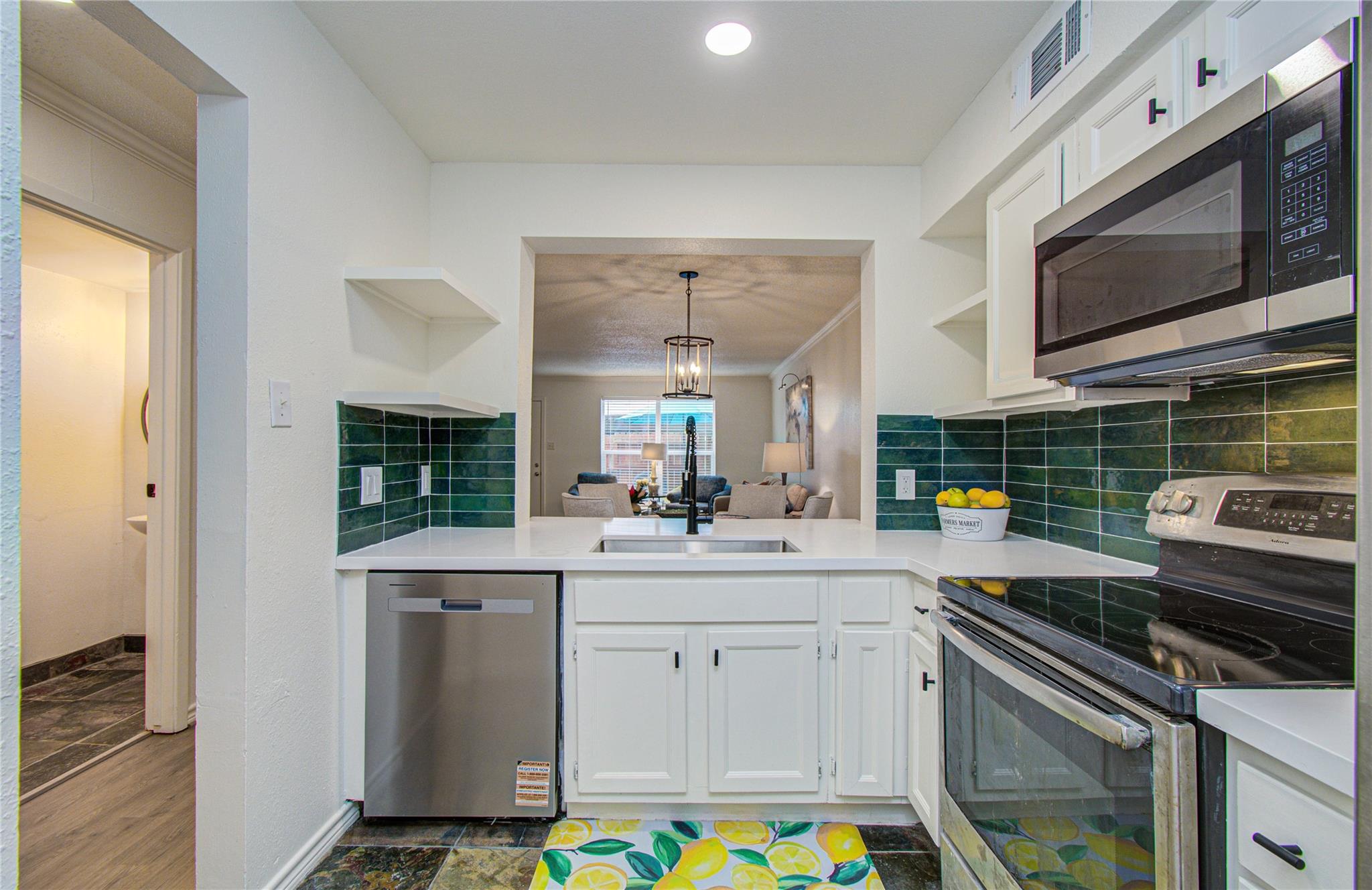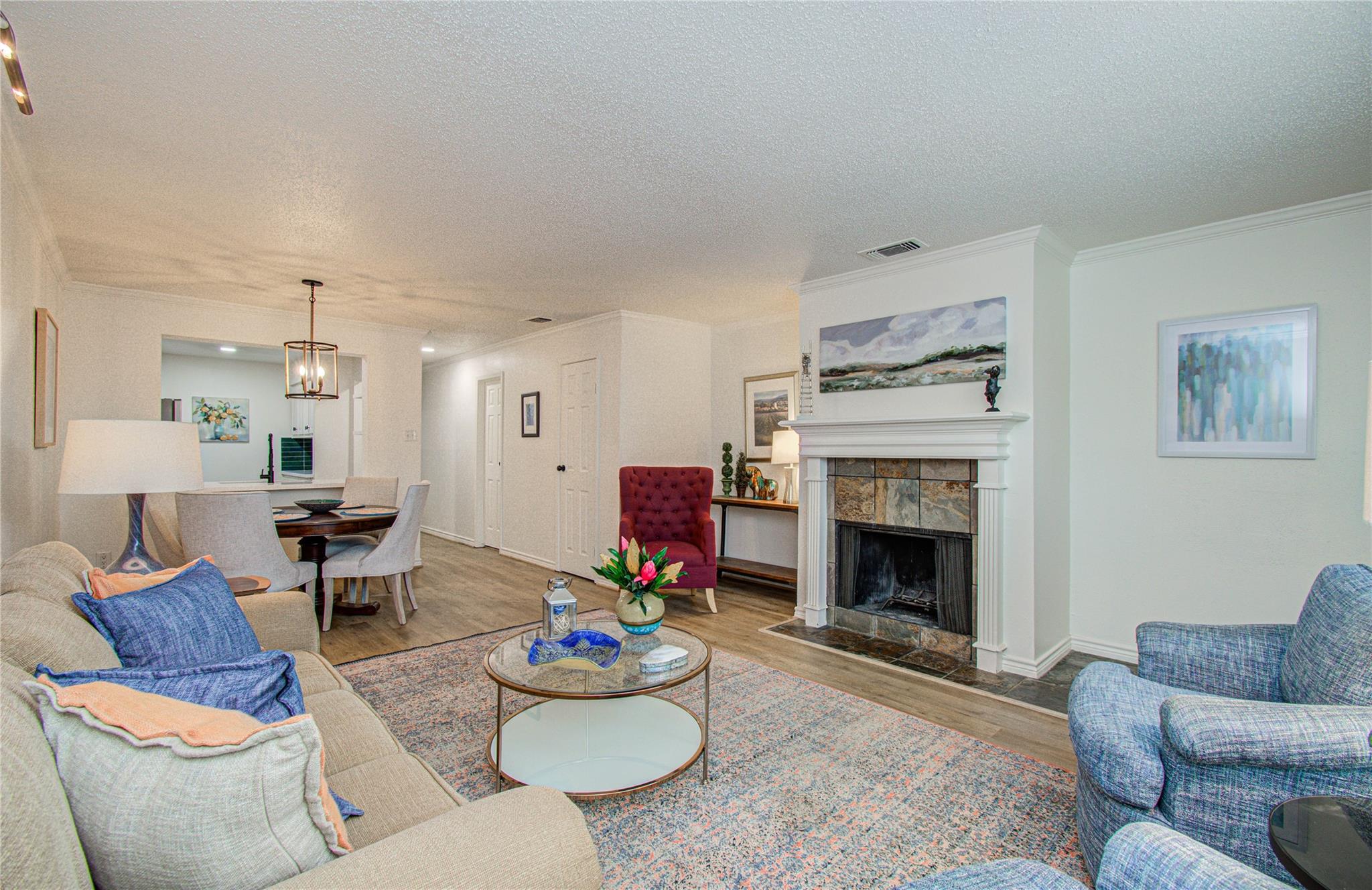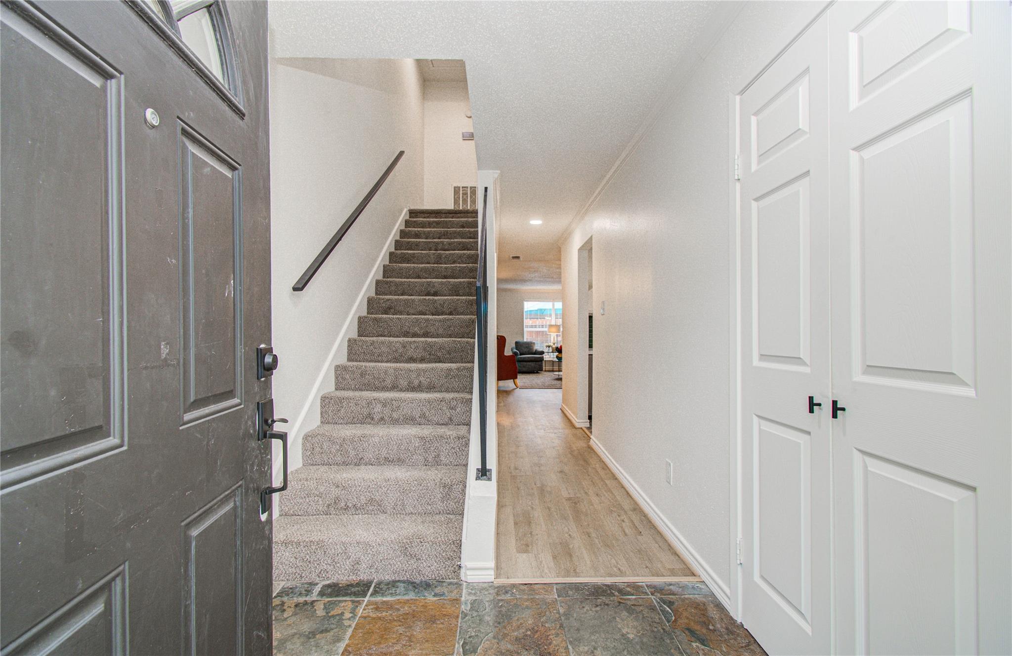 Stunning two-story townhome with 2 bedrooms and 2.5 baths in a quiet community. The main level features an open-concept layout with a large living area, cozy wood-burning fireplace, and private back patio—perfect for relaxing or entertaining. The kitchen boasts quartz countertops, new backsplash, stainless steel appliances, ample cabinetry, and a breakfast area overlooking the living space. Upstairs, both bedrooms offer comfort, including a spacious primary suite with private bath. Additional features include in-unit washer/dryer connections, a utility room behind the kitchen, covered two-car carport, and fresh paint throughout. Community amenities include a swimming pool and tennis courts. Conveniently located near Highway 6, shopping, dining, and major commuting routes.
