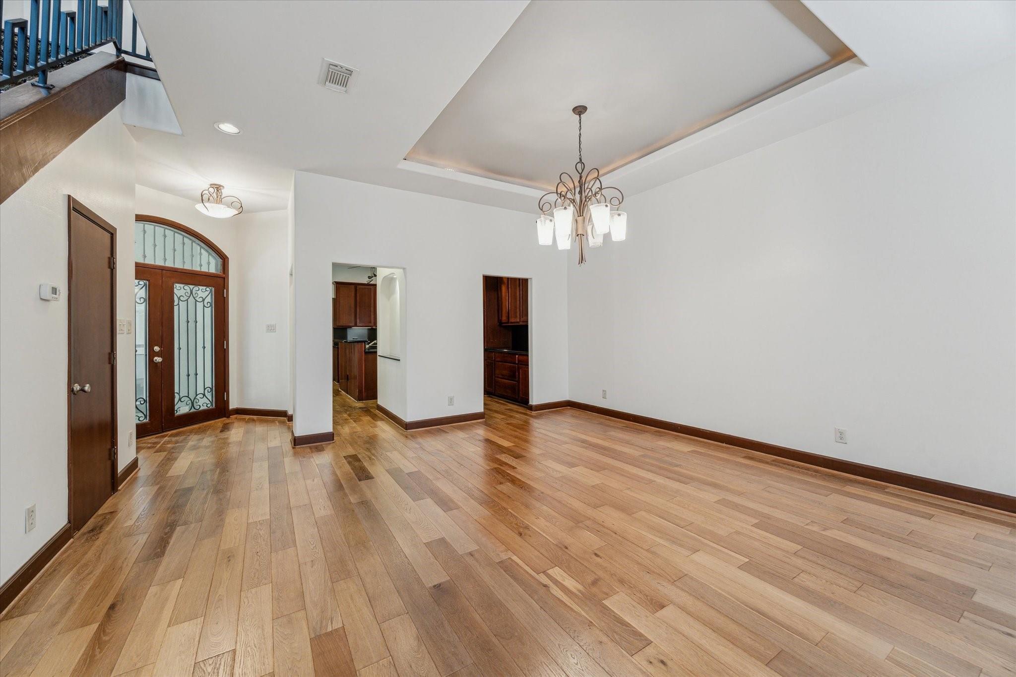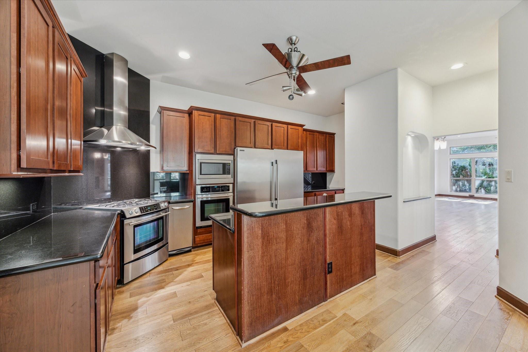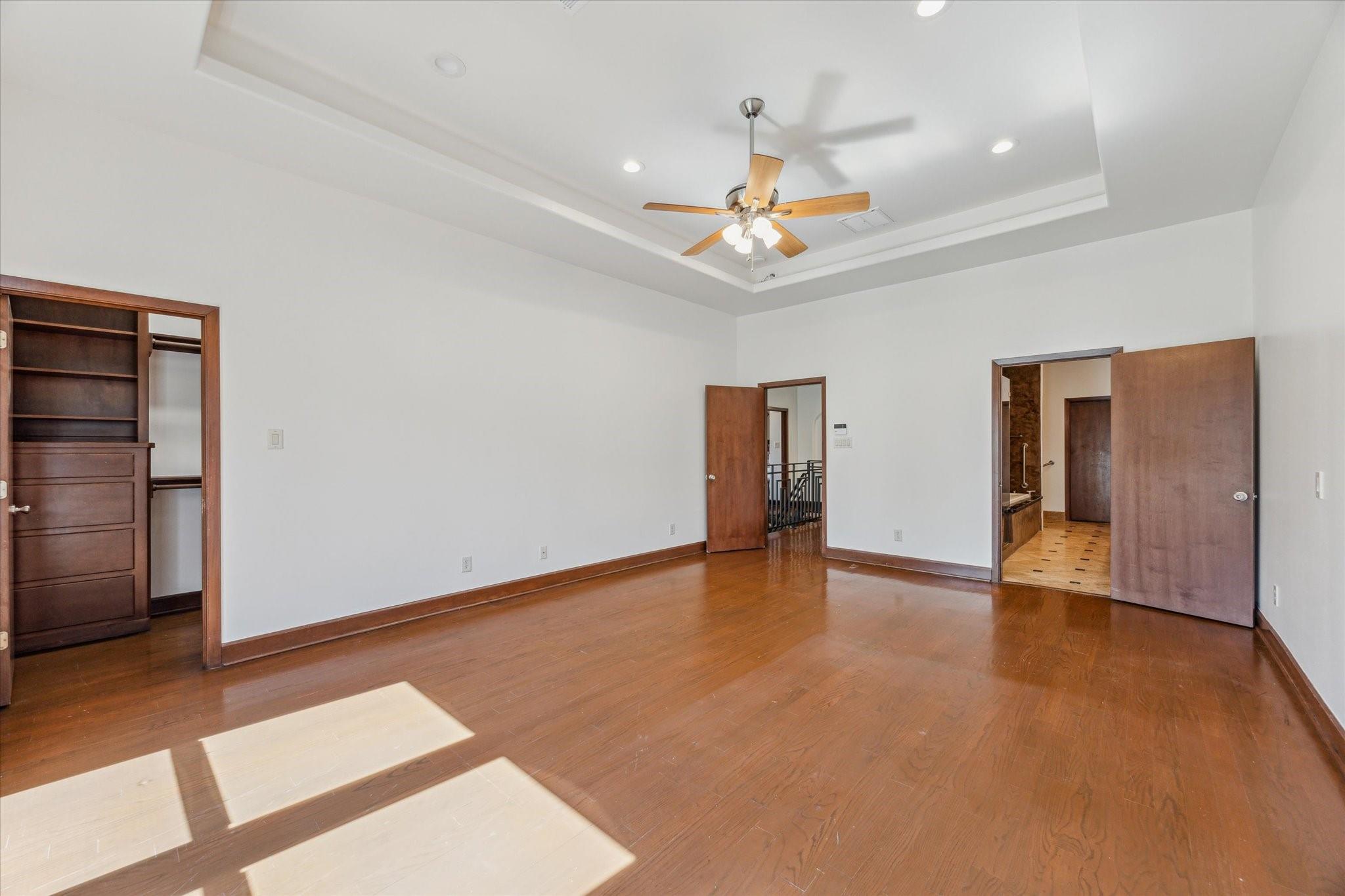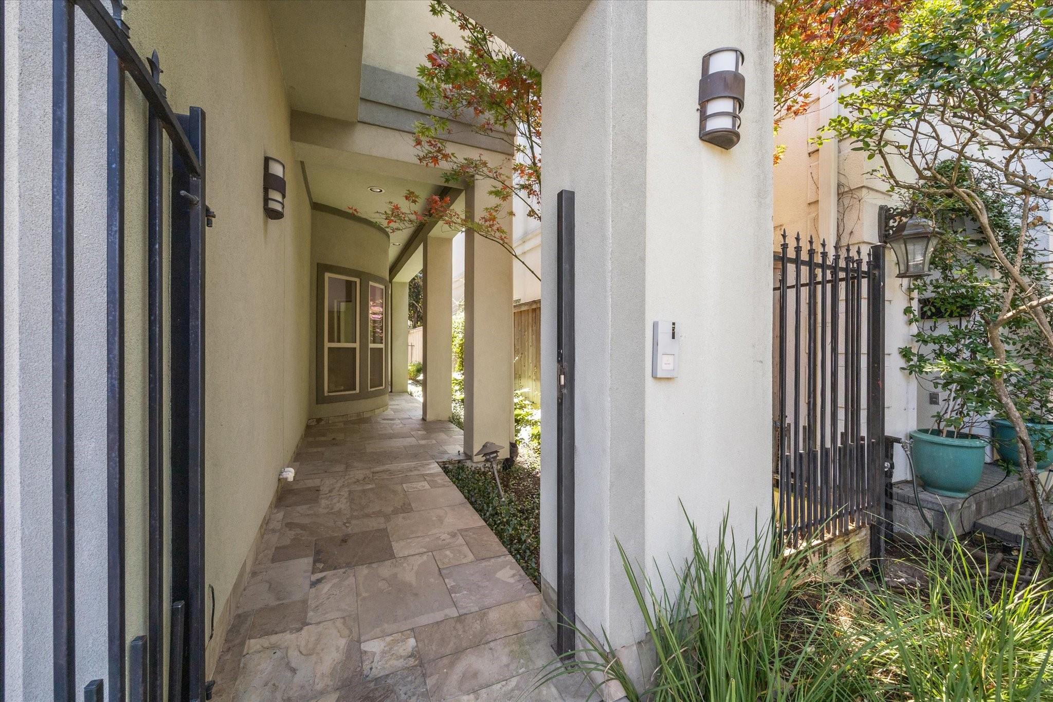 Exquisite custom built townhome with a charming pathway leading to elegant glass & metal doors. Spacious Living & Dining rooms feature stunning wood floors and overlook the back patio & side walkway. The Kitchen has stainless appliances, butler's pantry, and a breakfast nook with a wall of curved windows that look onto the front walkway. The large Primary Suite includes coffered ceiling, 2 huge walk-in closets, a jetted tub & separate shower. The two Secondary Bedrooms enjoy large closets spaces & share a Hollywood bath. One of the bedrooms has high ceilings & beautiful hardwood-library-built-in shelving. The Unique 3rd floor offers endless possibilities. Separate private entrance on the 1st floor leads to a spiral staircase to the 2nd floor landing and up to the 3rd level. Perfect for a 4th bedroom, guest room, home office, etc. The spiral stairs can be replaced for an elevator. Tankless water heater. New roof. Each floor has its own AC/Heat system.