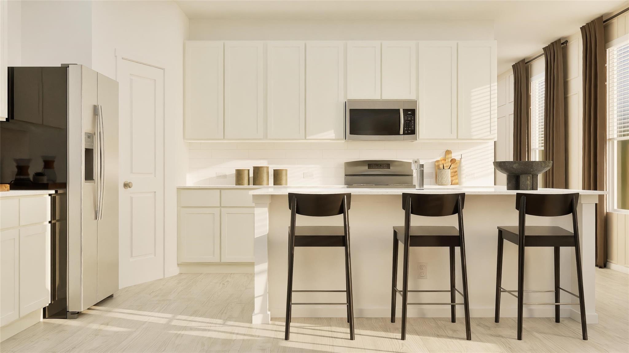 The Aruba Floor Plan - This new home offers a modern and low-maintenance design. An open-concept floorplan with convenient access to a covered patio provides seamless entertaining and multitasking. All three bedrooms are tucked away to the side of the home for improved comfort and convenience, including the luxurious owner’s suite with a spa-inspired bathroom and walk-in closet. The completion date, prices and features may vary and are subject to change. Please verify with Lennar directly. Photos are for illustrative purposes only.