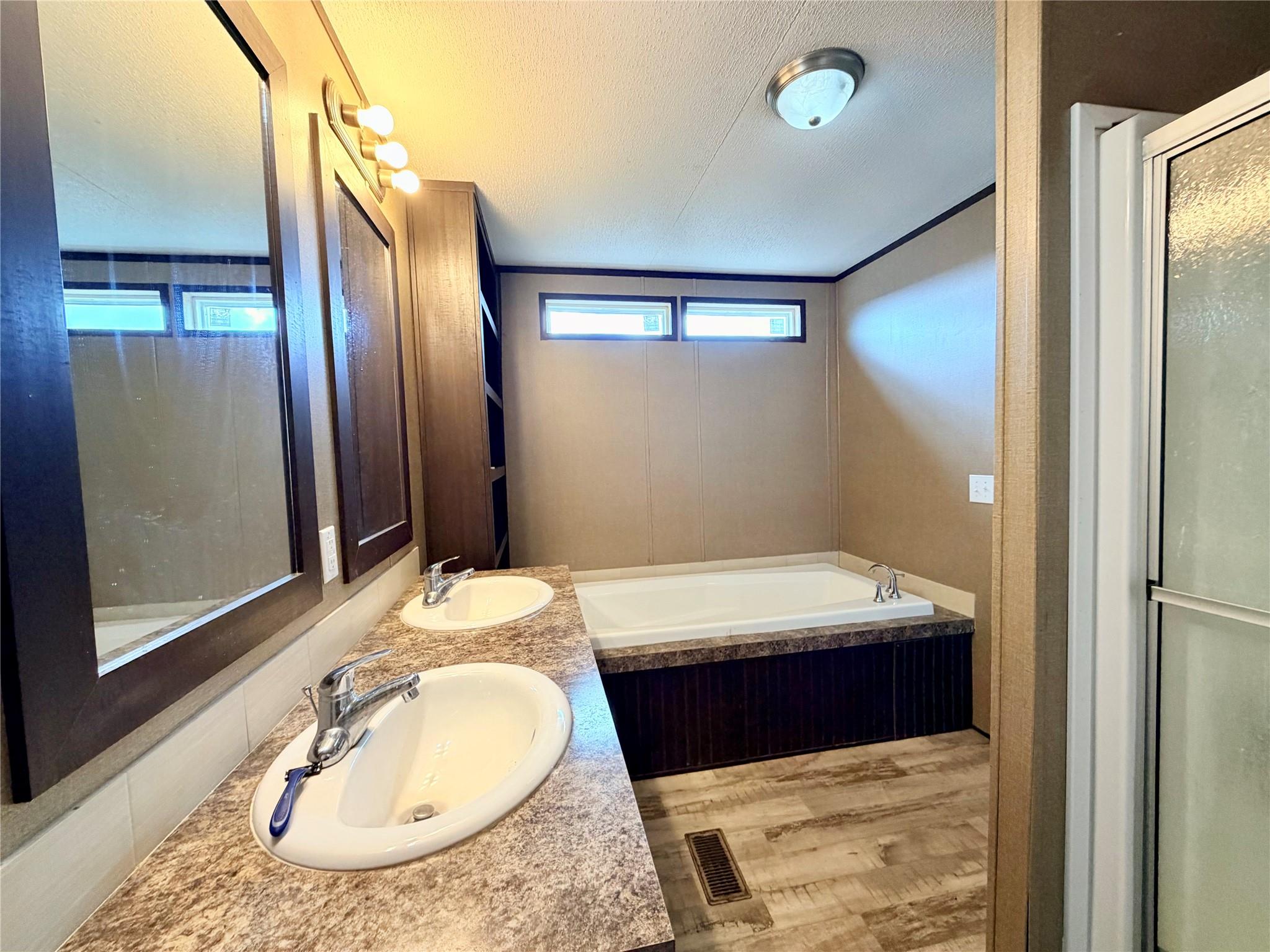 InteriorFloors:Carpet,VinylBathroom Description:Primary Bath: Double Sinks,Primary Bath: Separate Shower,Primary Bath: Soaking Tub,Secondary Bath(s): Tub/Shower ComboBedroom Desc:All Bedrooms Down,Split PlanKitchen Desc:Island w/o Cooktop,Kitchen open to Family RoomRoom Description:1 Living Area,Kitchen/Dining Combo,Utility Room in HouseHeating:Central ElectricCooling:Central ElectricConnections:Electric Dryer ConnectionsDishwasher:YesMicrowave:YesRange:Electric Range,Freestanding RangeOven:Electric Oven,Freestanding OvenEnergy Feature:Ceiling FansInterior:Refrigerator Included,Vaulted Ceiling