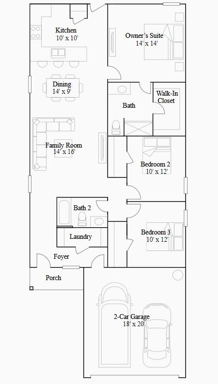 First FloorFamily Room:14x16Dining:14x9Kitchen:10x10Primary Bedroom:14x14Bedroom:10x12Bedroom 2:10x12