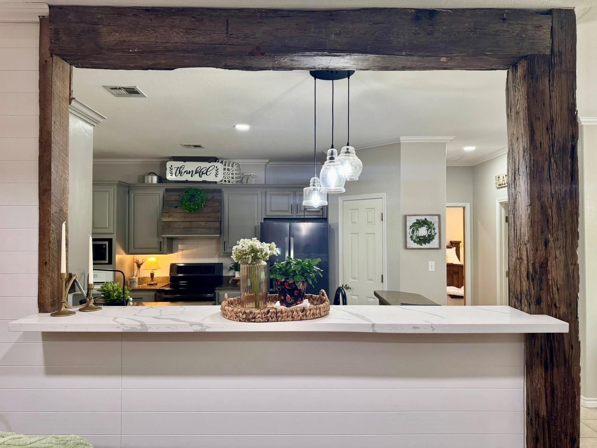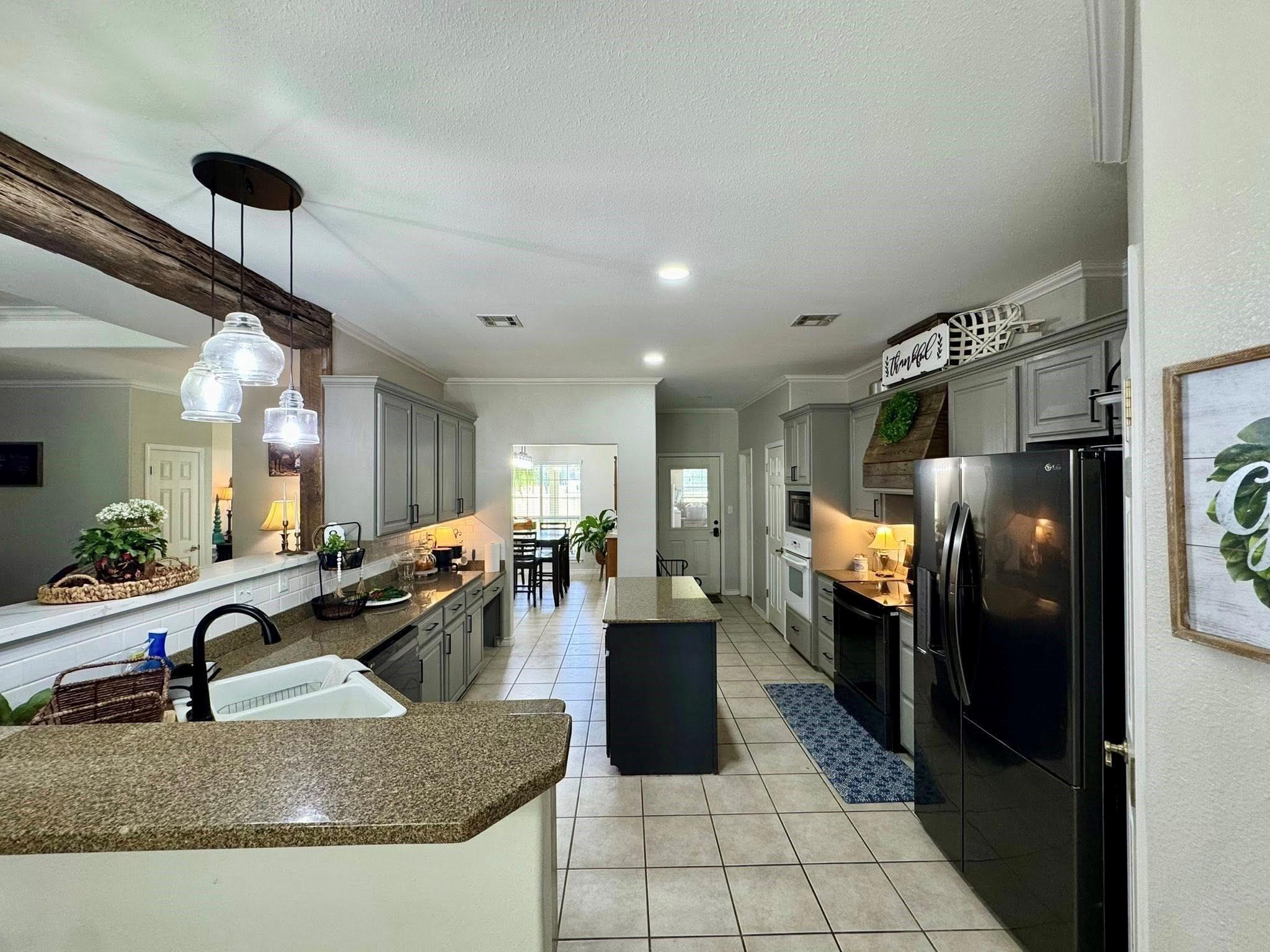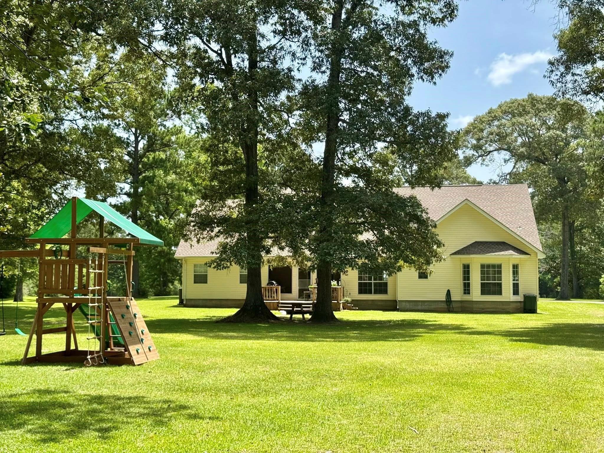 Charming 4-bedroom, 2.5-bath brick home located on 6.5 unrestricted acres in Spurger with Farm-to-Market Road frontage. This well-appointed home blends a farmhouse-inspired style with modern conveniences. The open kitchen offers a large island, granite countertops, farmhouse sink, double ovens (convection and standard), under-cabinet lighting, and a spacious walk-in pantry. The living area features a wood-burning fireplace, recessed ceiling detail, and shiplap accent wall, creating a warm and inviting atmosphere. The primary bedroom is generously sized and includes a bay window and private bath with jetted tub, separate shower, dual sinks, vanity space, and a large walk-in closet. Outside, enjoy peaceful surroundings, abundant wildlife, and scenic views of the countryside. Property amenities include an RV cover and an equipment/boat carport. A beautiful country setting with room to roam and no restrictions. Must see! Measurements approximate.