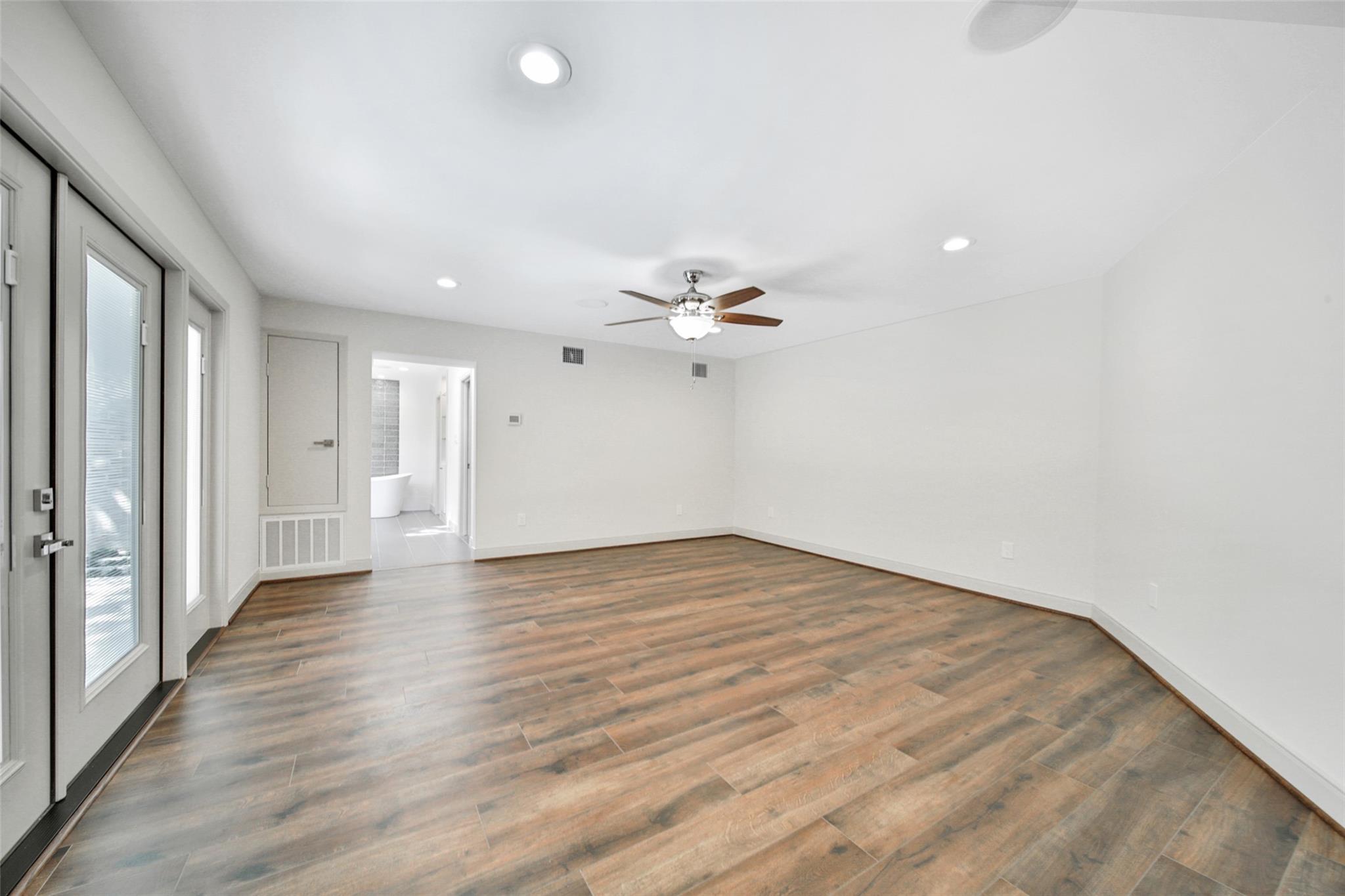 Discover a true modern marvel of a townhome in the gated Broken Bayou enclave of Houston's Energy Corridor. Masterfully redefined with luxury finishes, this gem boasts soaring ceilings and gloss tiled floors. The open floor plan reveals a showstopper Chef's kitchen with endless countertops, exquisite backsplash, and pro-grade stainless steel appliances. Easily entertain from the dining to the living room with built-in speakers, anchored by a two-story Austen limestone fireplace. Retreat to the coveted first-floor primary suite, thoughtfully designed with a luxurious soaking tub, massive stand-up shower, and back-lit vanity. Upstairs, two secondary bedrooms offer serene wooded views. A truly rare updated and move-in ready home, the community features an impressive entertaining courtyard, access to community tennis courts and a pool. Zoned to top-rated Katy ISD schools, you are minutes from Terry Hershey Park, dining, and major freeways. Your very own perfect luxury oasis awaits!
