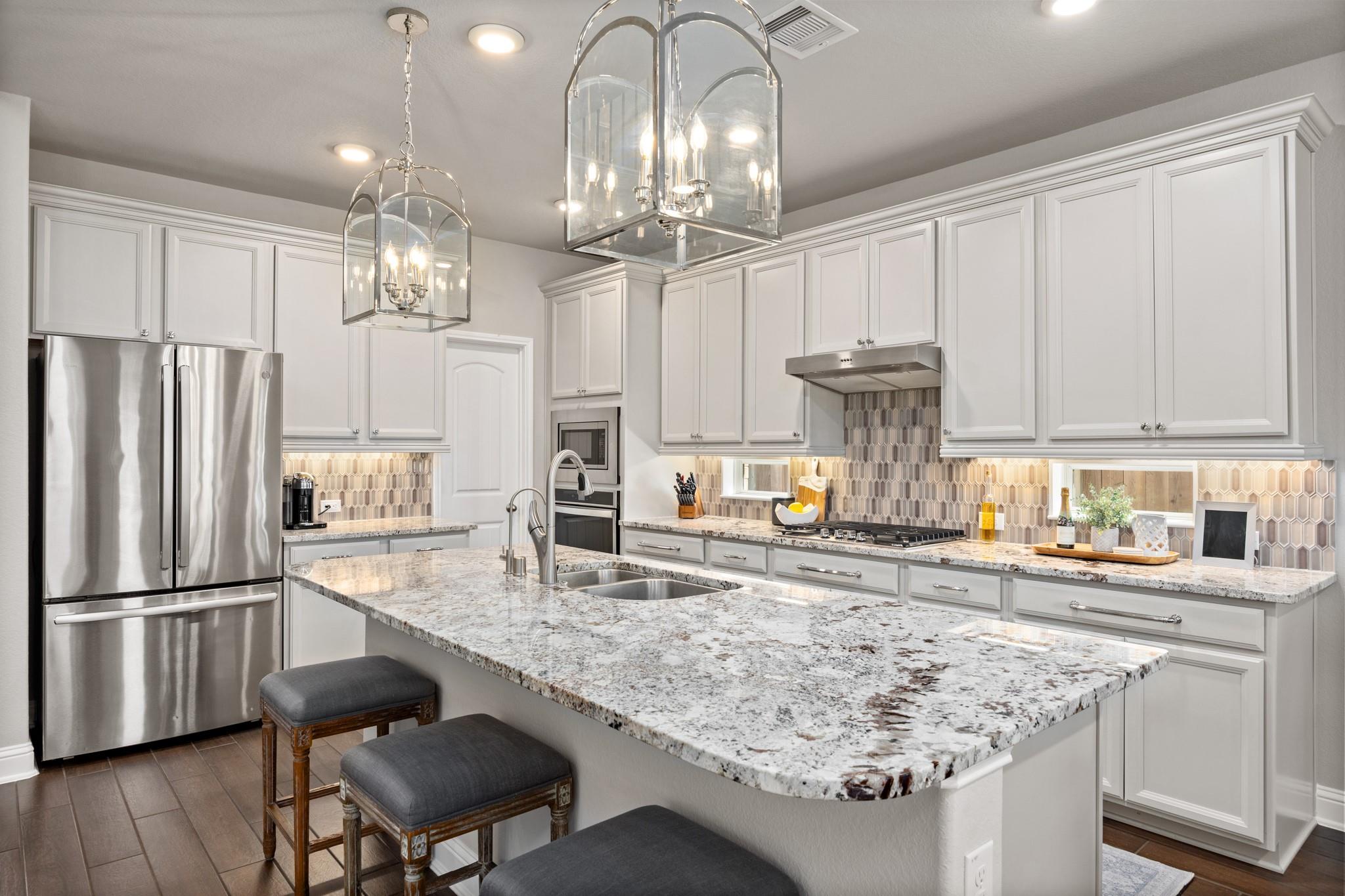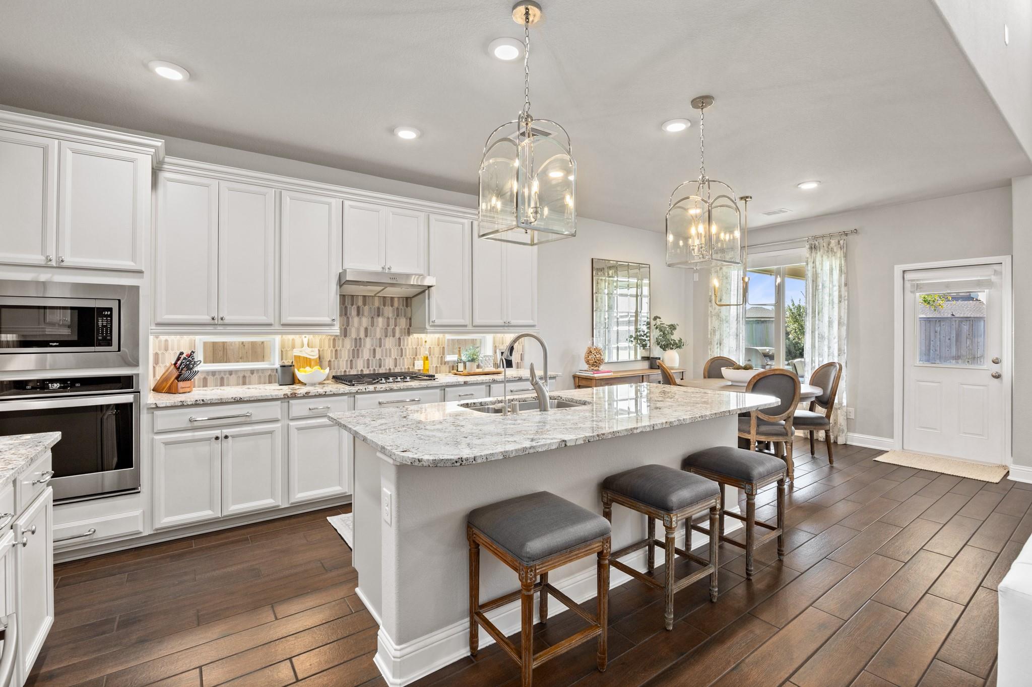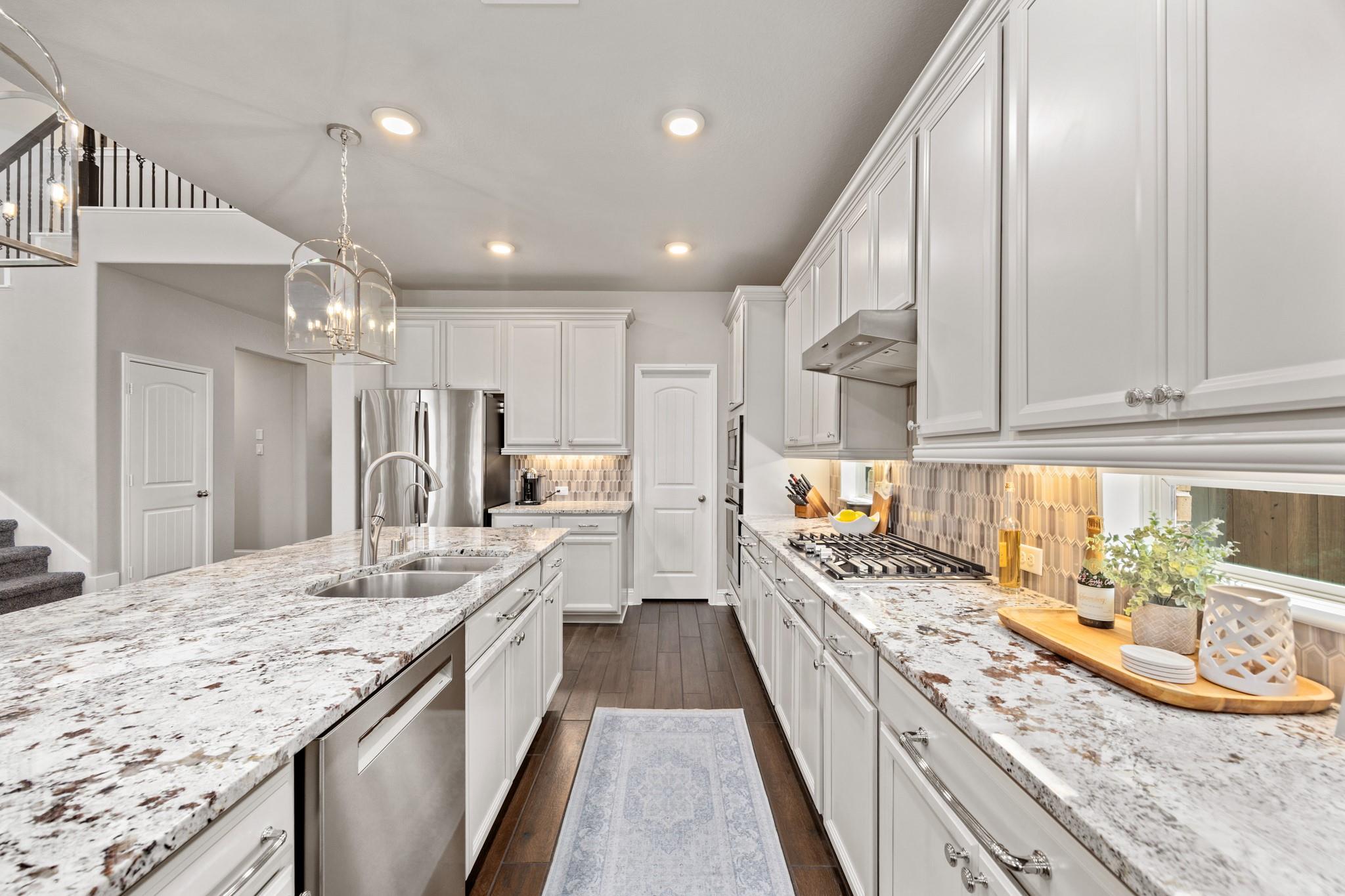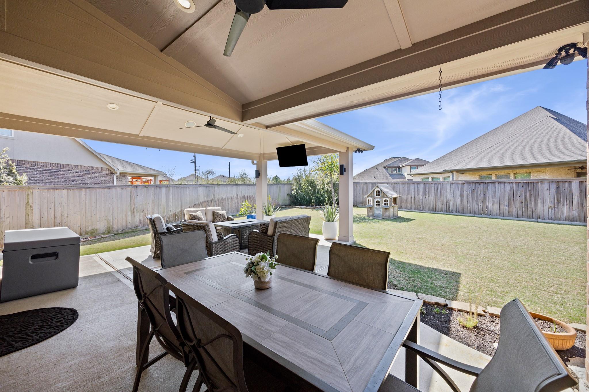 Stunning Bridgeland home with beautiful stone elevation and thoughtful upgrades throughout! Situated in a cul-de-sac, this home has countless upgrades throughout. Elegant tile flooring and wrought iron spindles welcome you inside, along with a private study featuring custom built-ins and french doors. The inviting living room offers a cozy fireplace, designer lighting, and opens to a gorgeous kitchen complete with granite countertops, mosaic backsplash, stainless steel Whirlpool appliances, pendant lighting, and abundant cabinetry. Custom built-ins in the mud area and laundry add exceptional function. Relax in the spa-like primary suite with tray ceiling, dual vanities, soaking tub, separate shower, and walk-in closet. Enjoy outdoor living on the extended, covered patio overlooking a pool-sized yard. Zoned to highly acclaimed Cy-Fair ISD and located in Bridgeland with walking trails, splash pad, and year-round heated lap pool. Energy-efficient spray foam insulation!